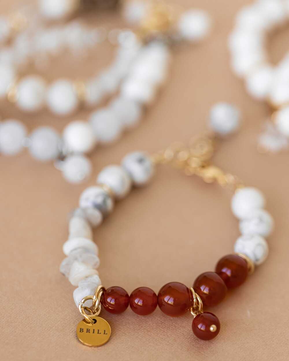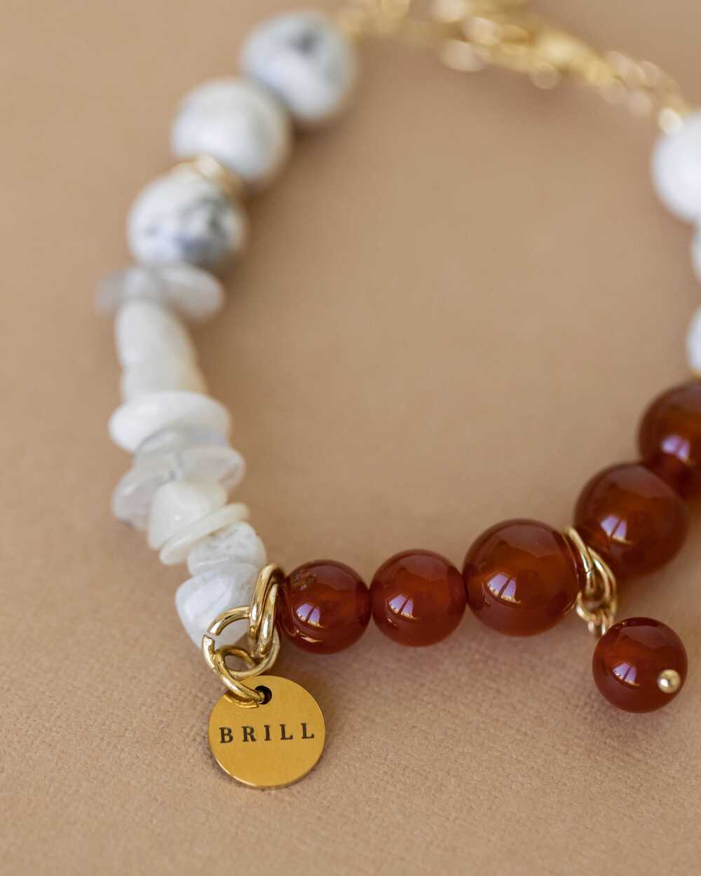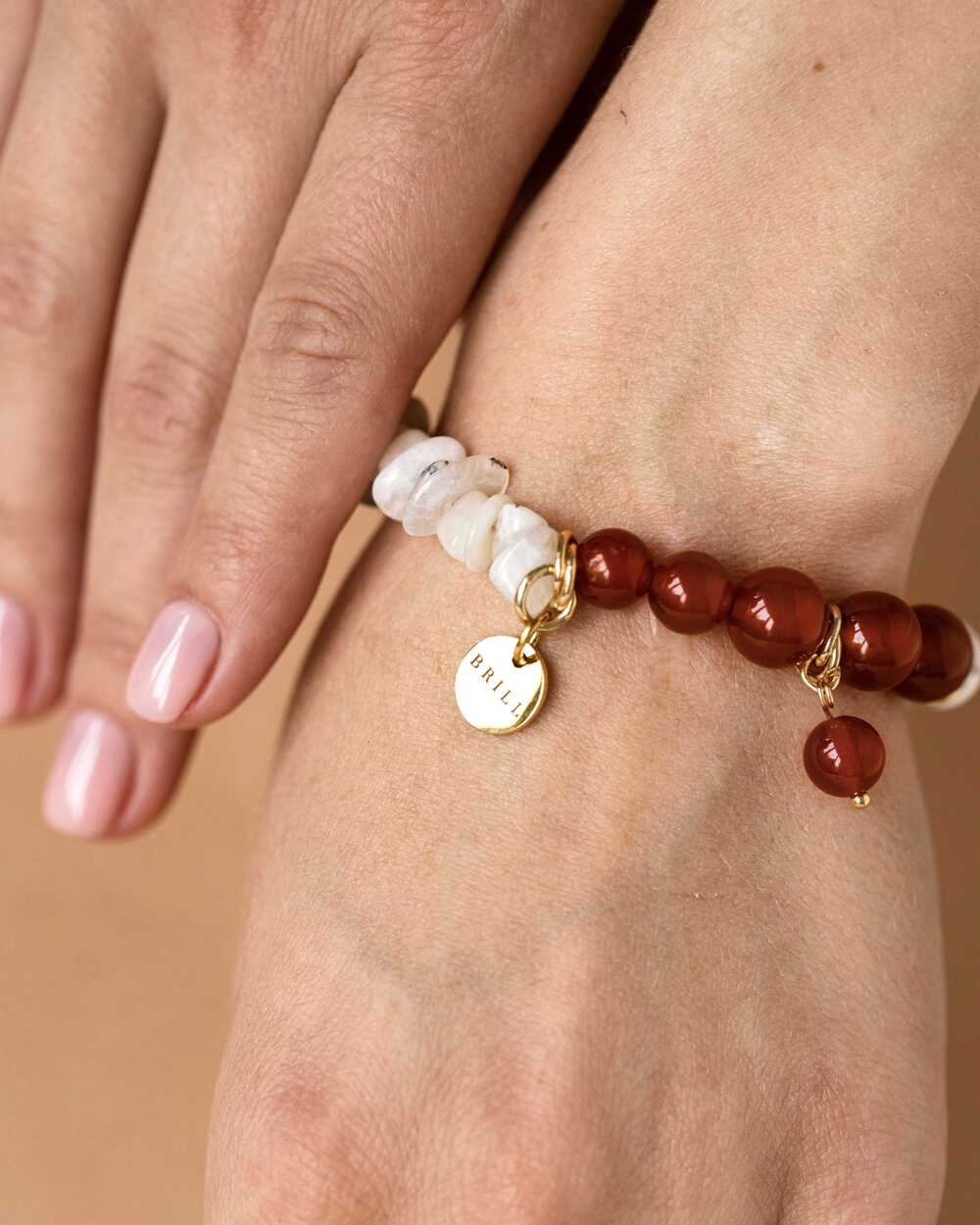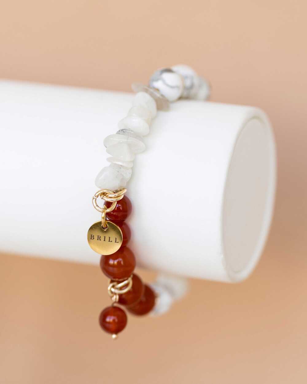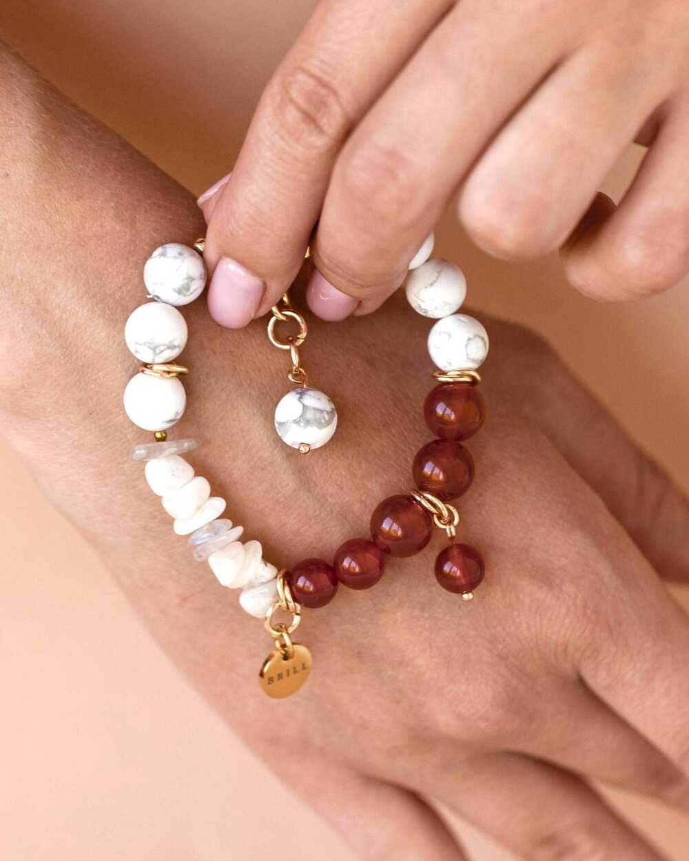 Браслет выполнен вручную из натуральных природных минералов- кахолонг, лунный камень и сердолик.