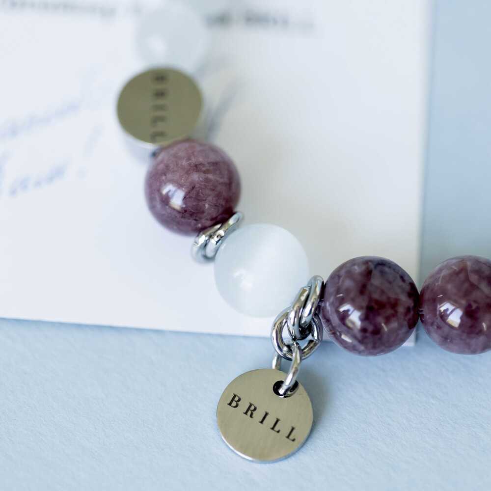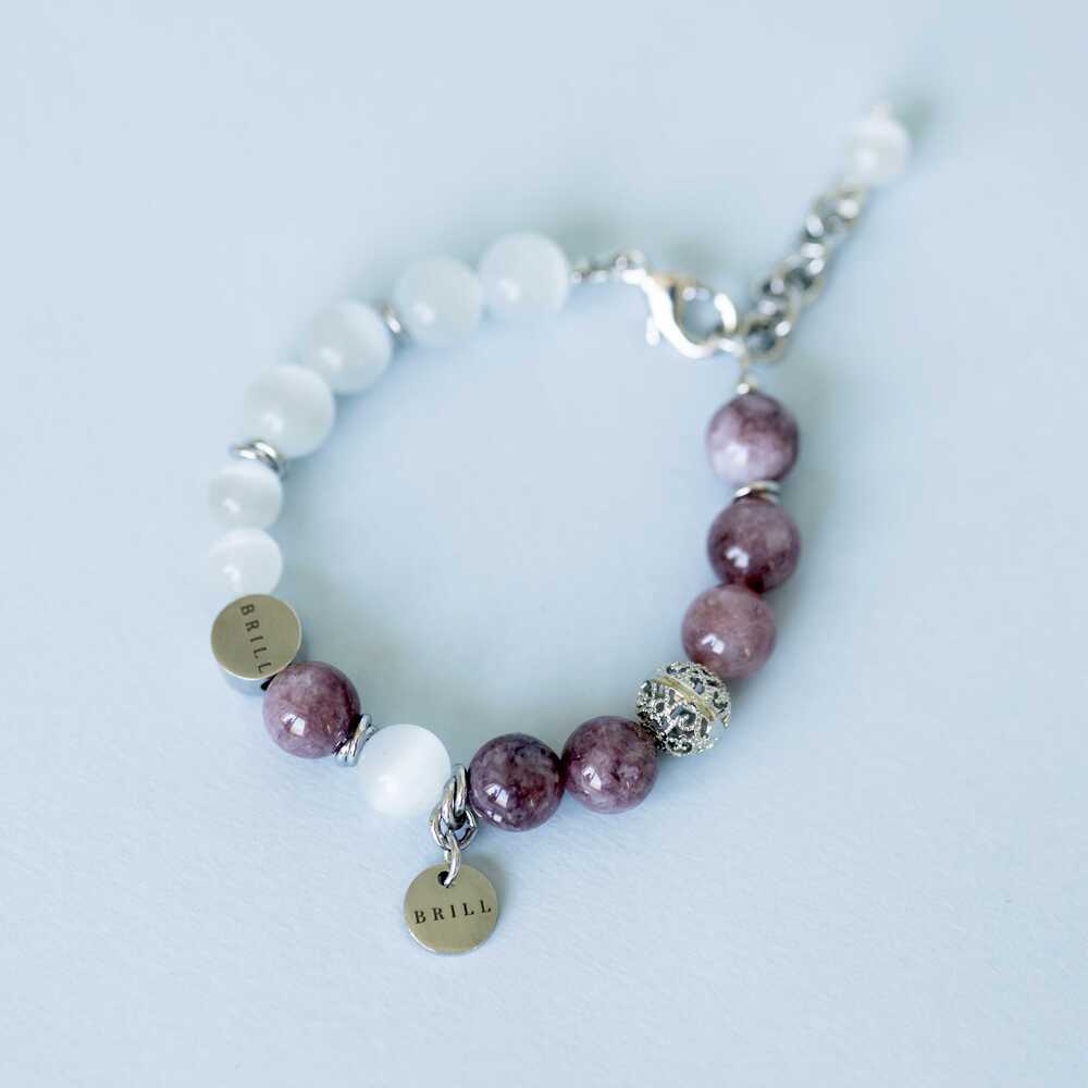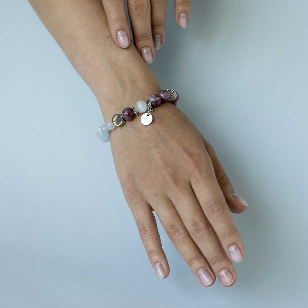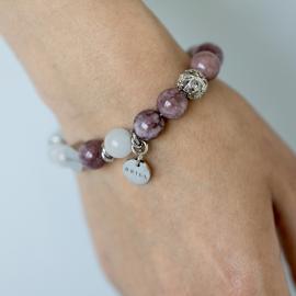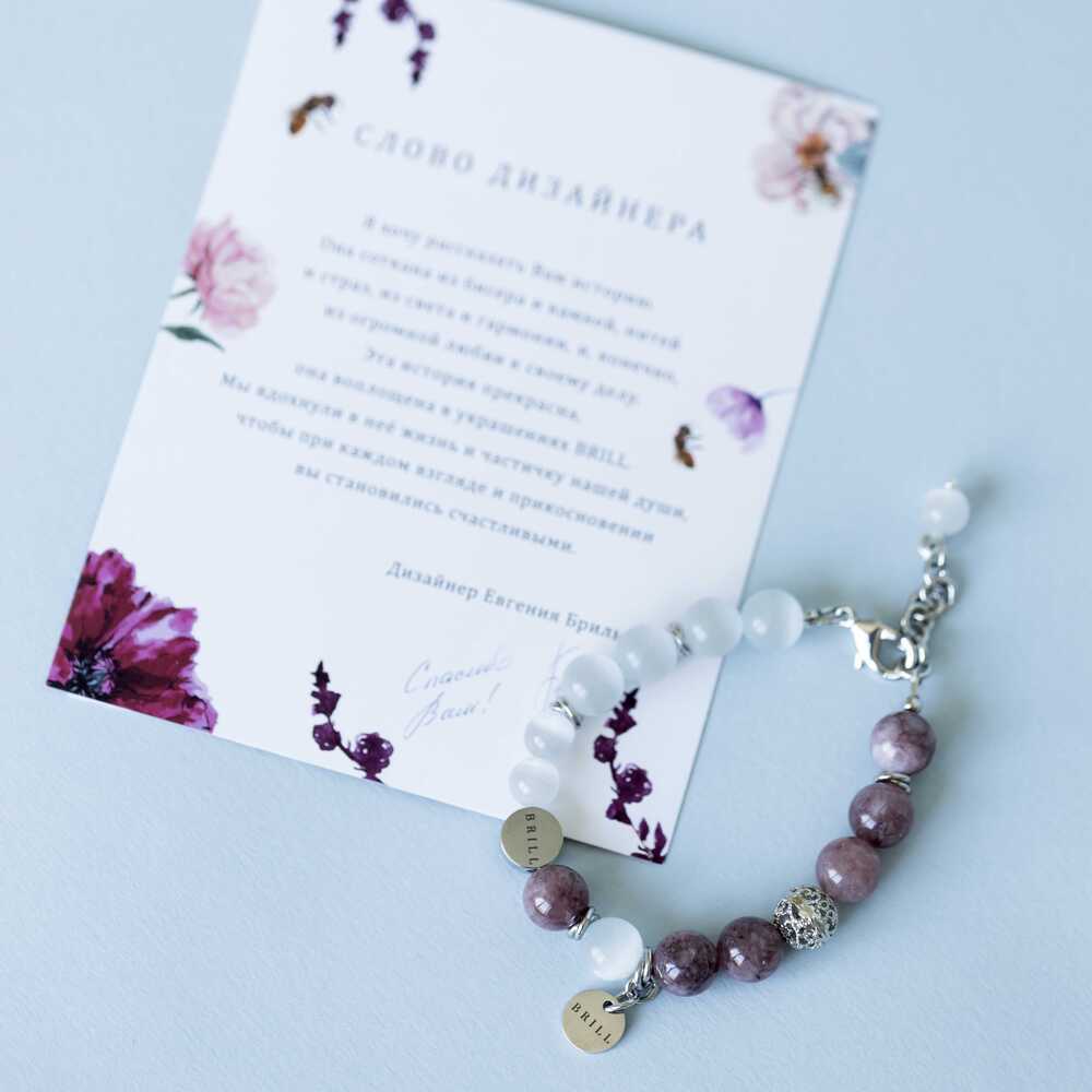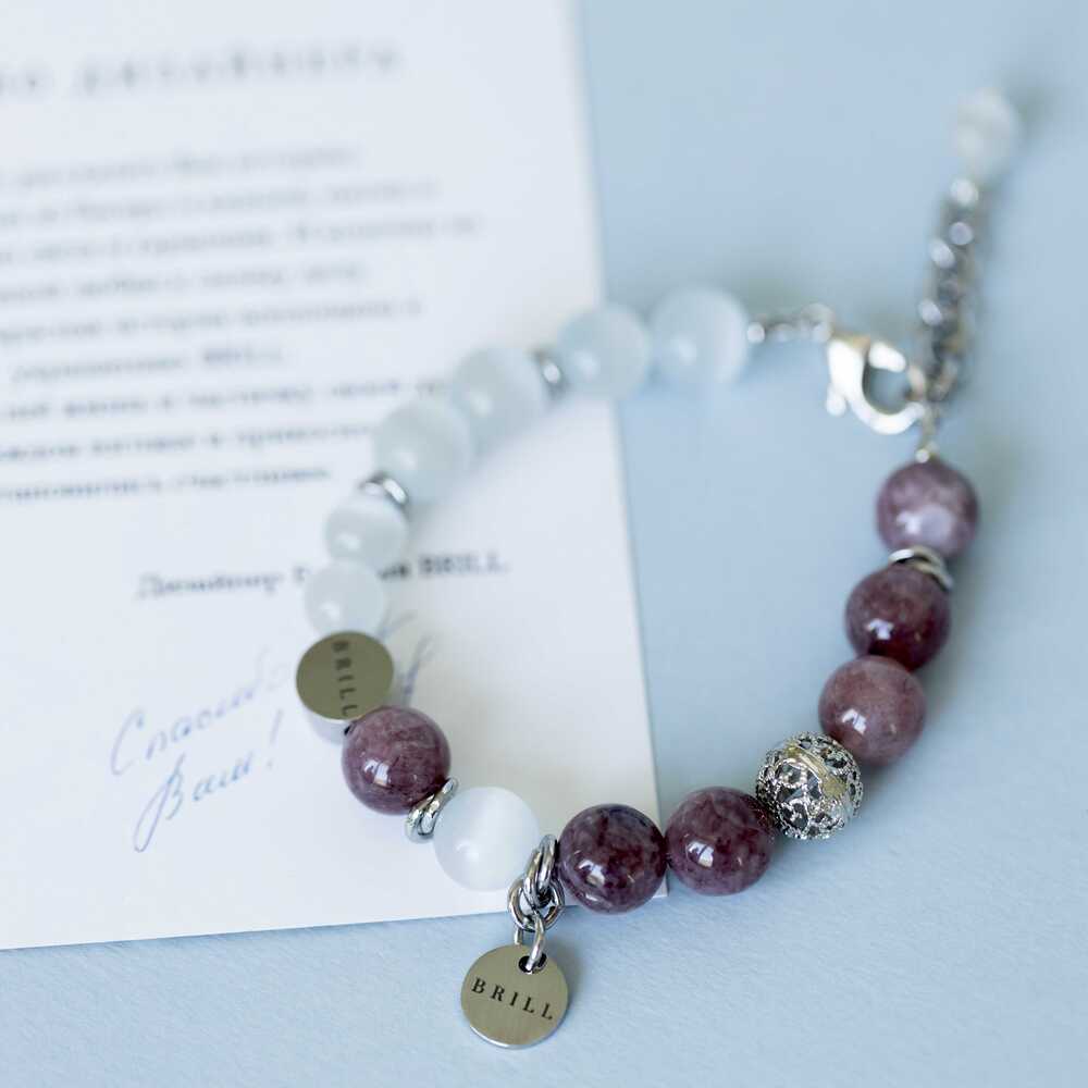 Браслет выполнен вручную из натуральных природных минералов- Лепидолит,Тигровый глаз.
