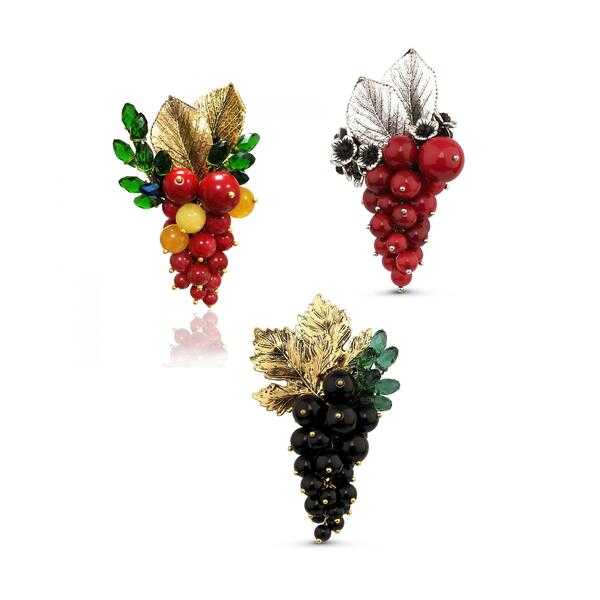 Брошь "ГРОЗДЬ СМОРОДИНЫ" - это отличный витаминный заряд для вашего гардероба. Она сочная, стильная, необычная и по-настоящему драгоценная, ведь для ягодок наш дизайнер выбрала бусины из натурального агата!