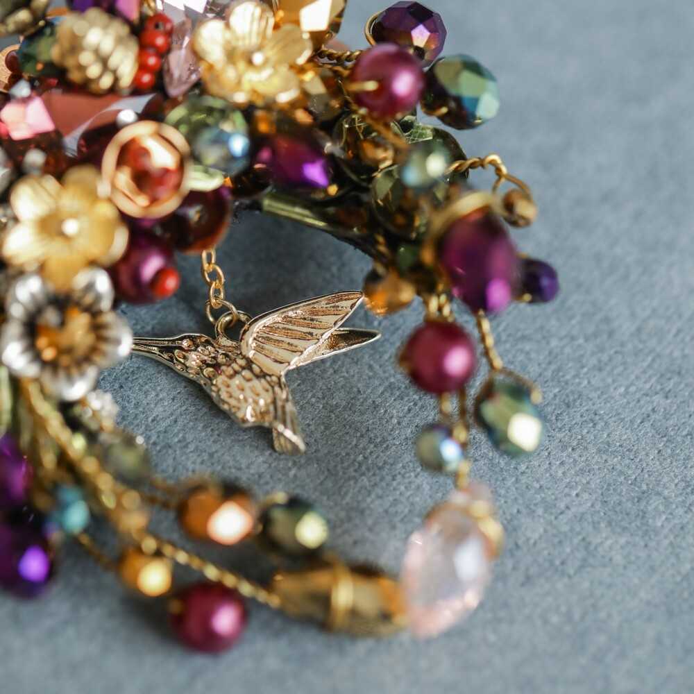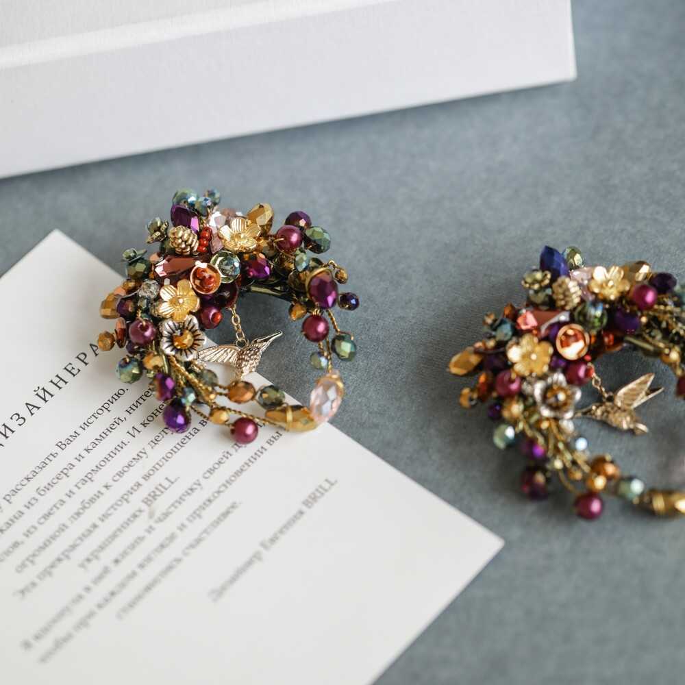 Оттенки драгоценных камней, тропические цветы и крохотная изящная золотая птичка - это волшебное сочетание напоминает о дальних сказочных странах и небывалых сокровищах. Брошь "КОЛИБРИ" - логичное продолжение одноименной линейки украшений BRILL. Носите ее соло для ежедневных образов или сочетая, например, с узким ободком в коктейльных луках.