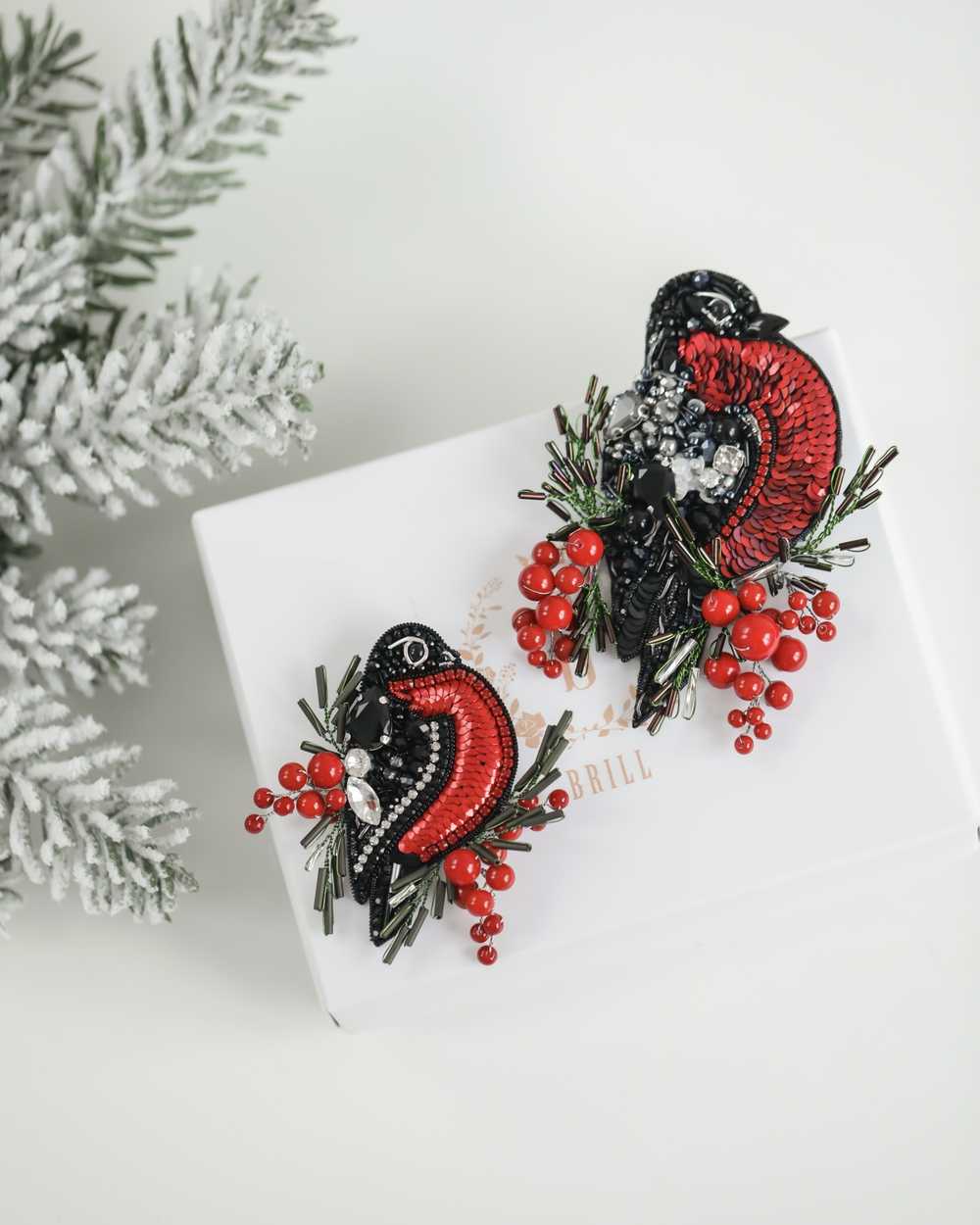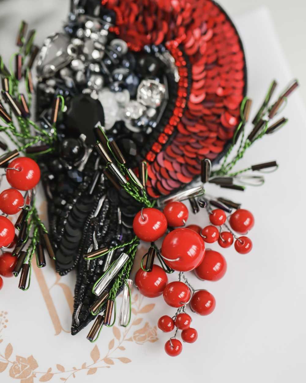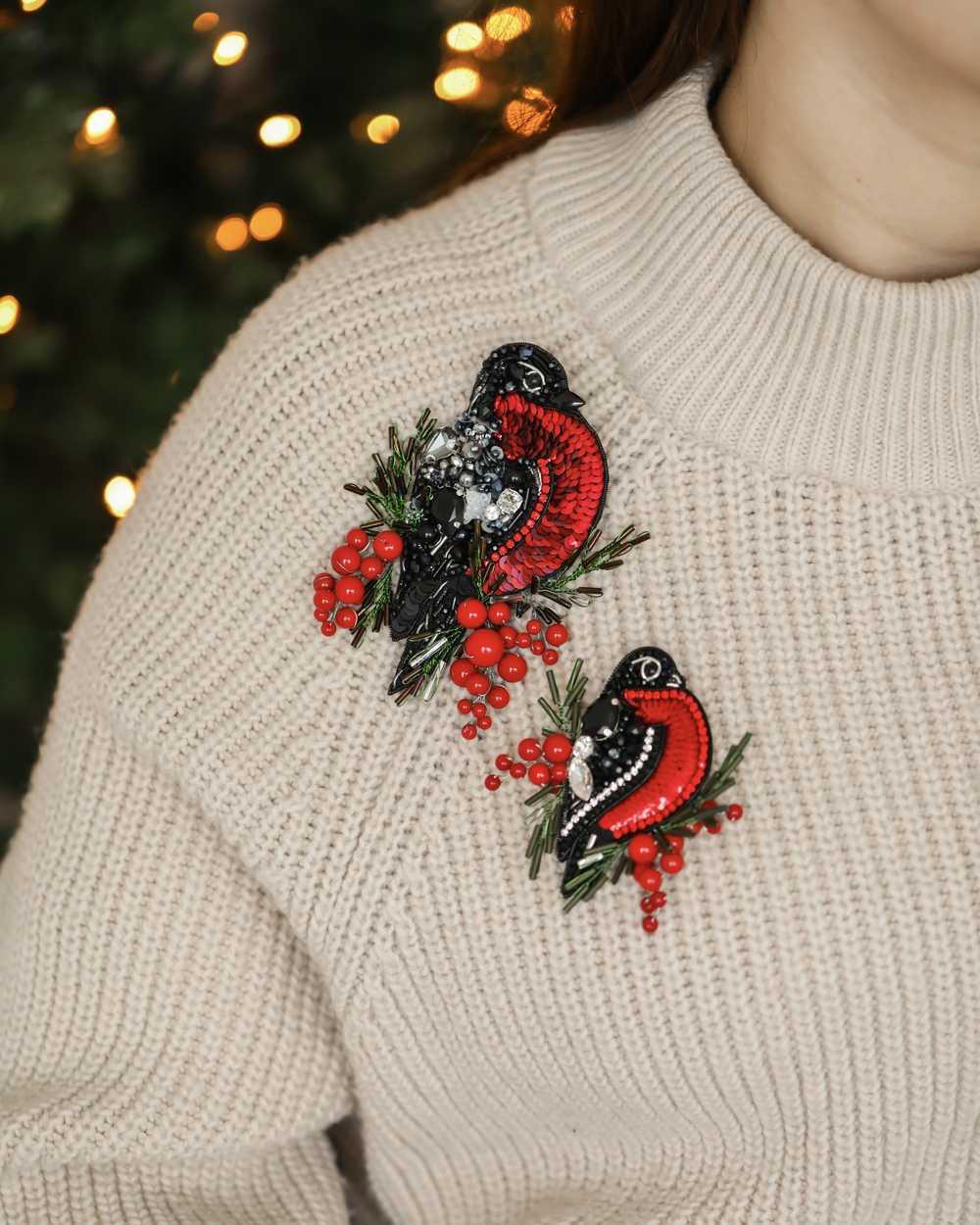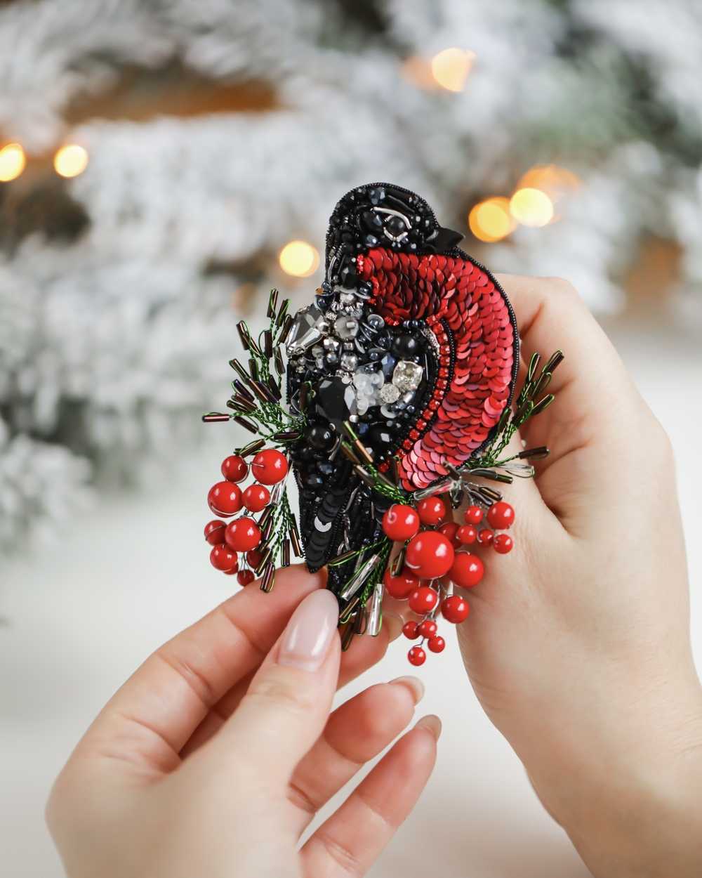 Брошь создана с использованием высококачественных материалов, включая сверкающие пайетки и кристаллы, которые придают изделию блеск и сияние. Брошь «Снегирь» можно носить с пальто, свитерами, платьями или даже использовать как украшение для сумки.