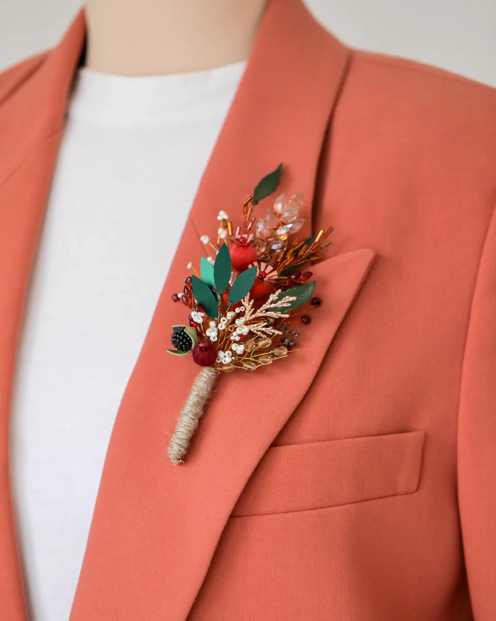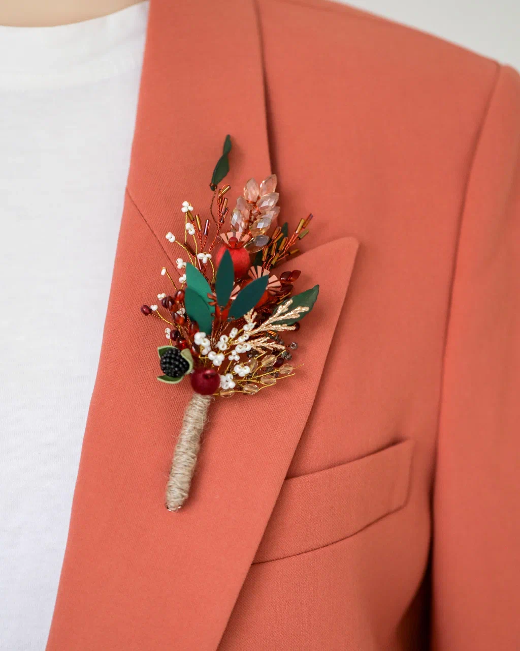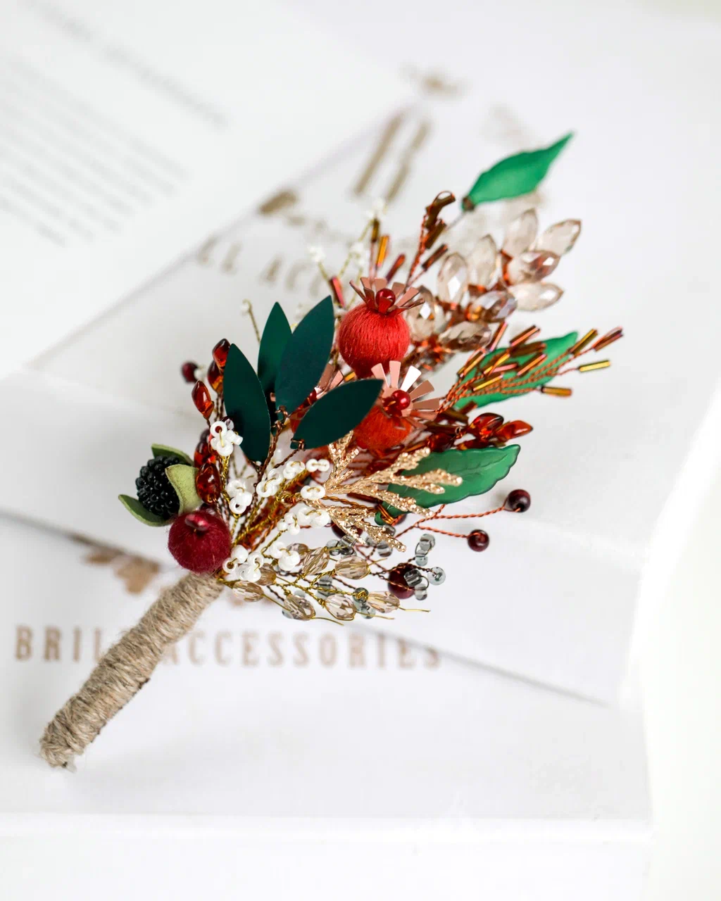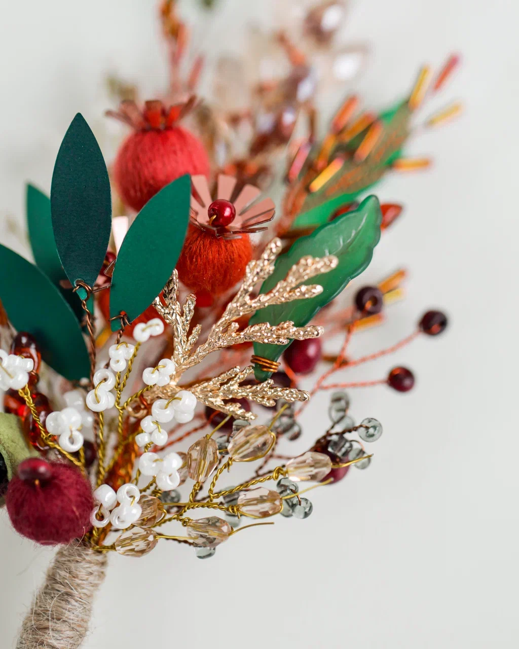 Брошь в виде восхитительного соцветия собрана из ассорти спелых ягод, веточек, листочков и хрупких осенних цветов, которые впитали в себя все тепло лета!