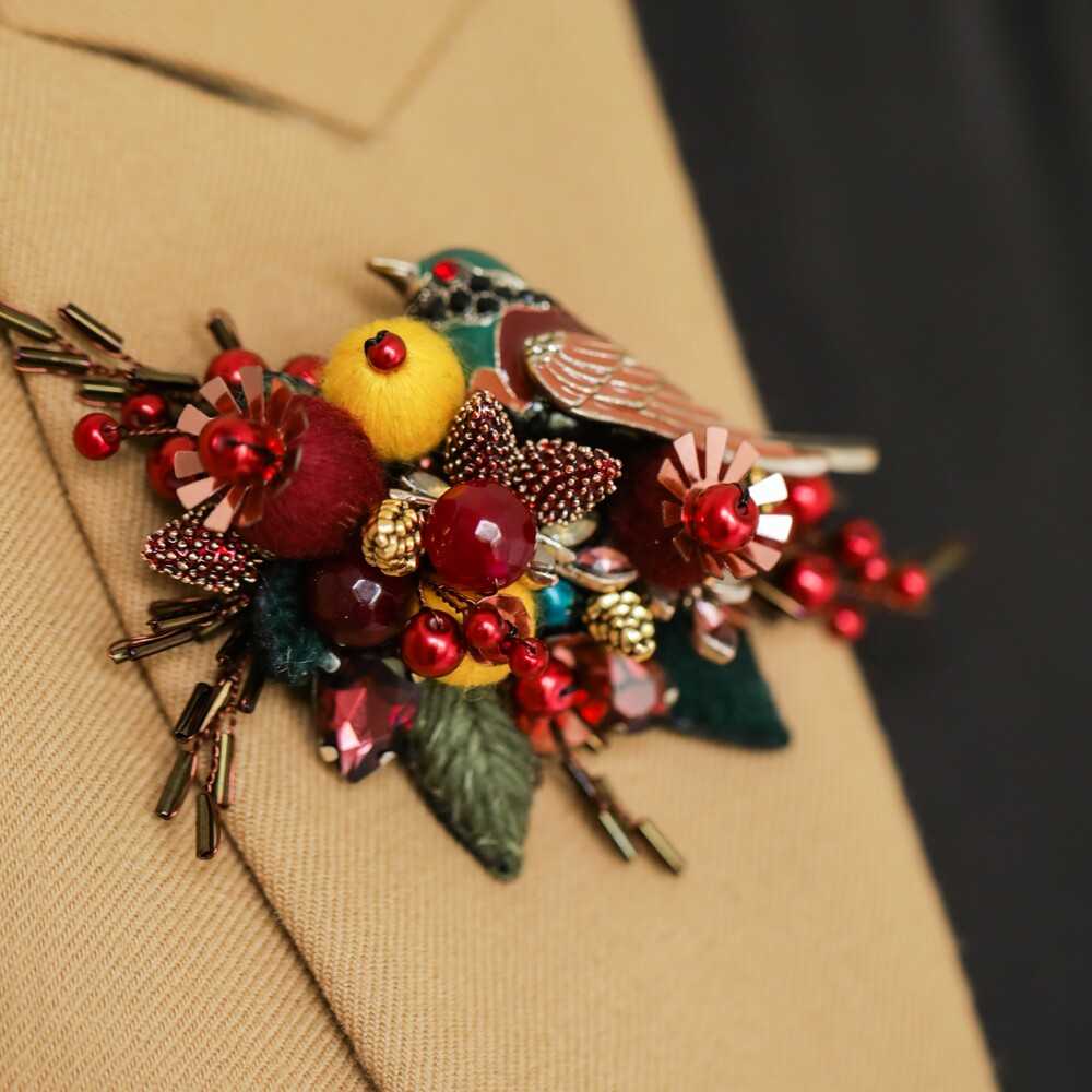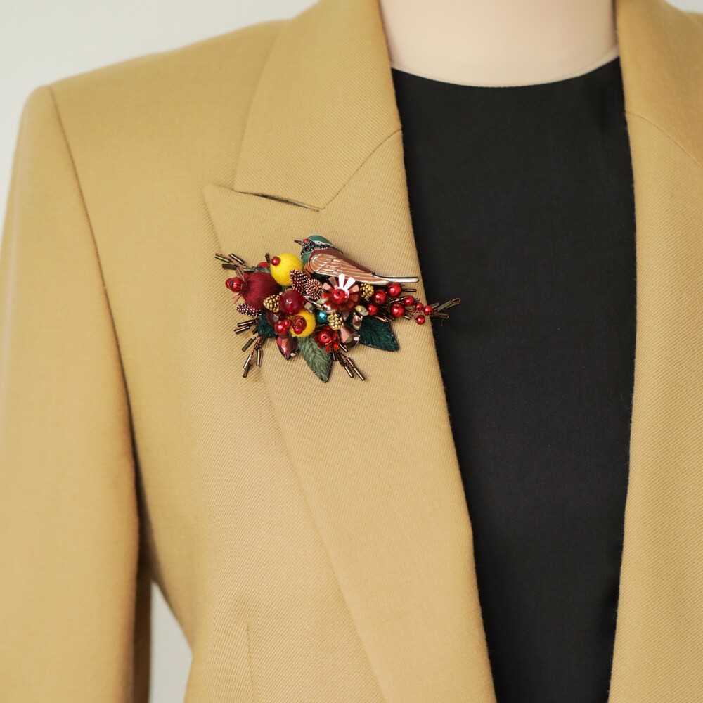 Яркий акцент в виде броши "СВИРИСТЕЛЬ" украсит любое пальто базового оттенка, смягчит образ в стиле casual, внесет сочную нотку в офисный лук.