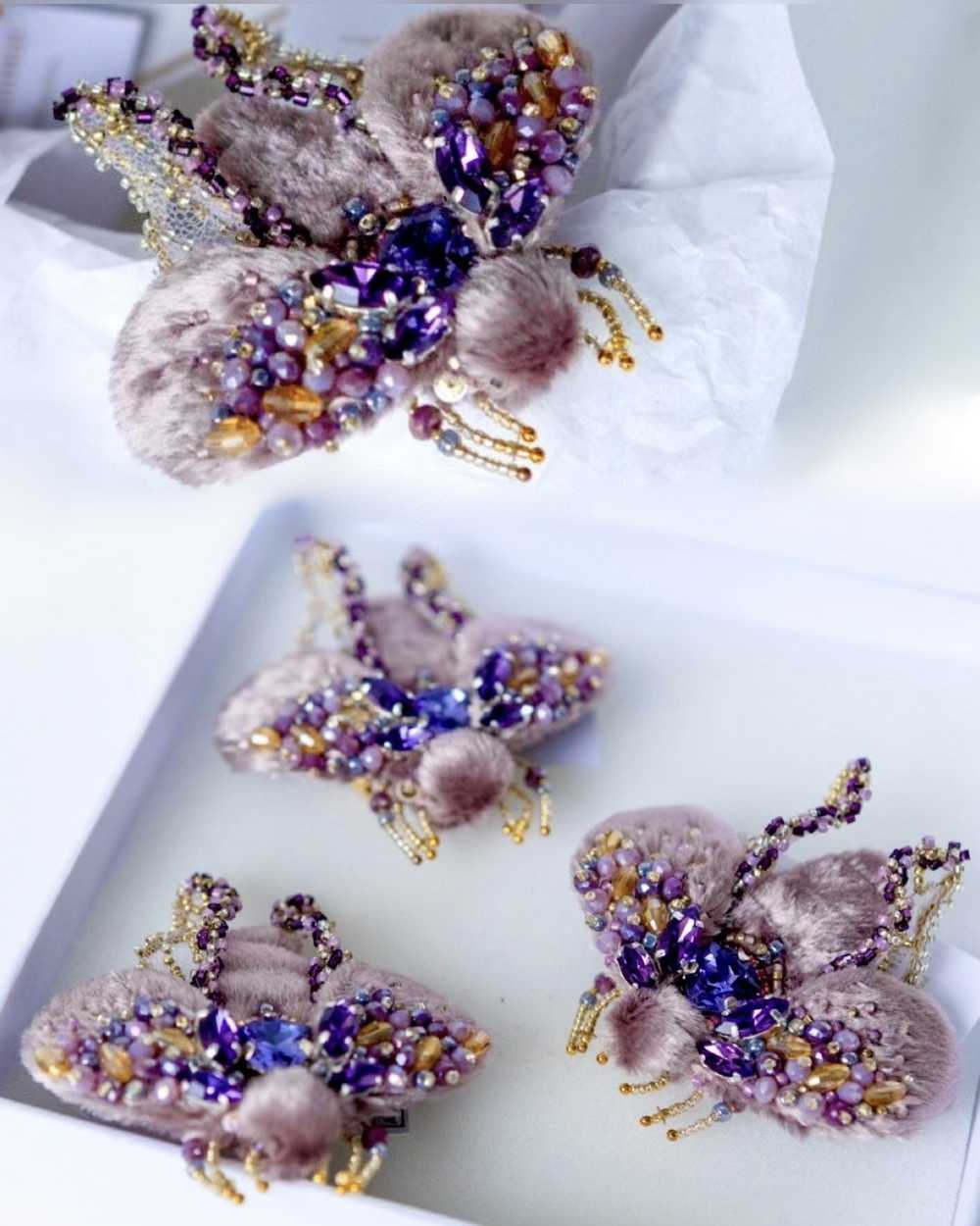 Брошь «Мотылек Виши» можно не только прикалывать на лацкан пиджака или в районе груди на платье, свитере, блузе. Но и прикрепить к невидимке в прическе, к воротнику, манжету, использовать в качестве микро-галстука для рубашки. Носить на ободке, шляпке, шапочке или берете.
