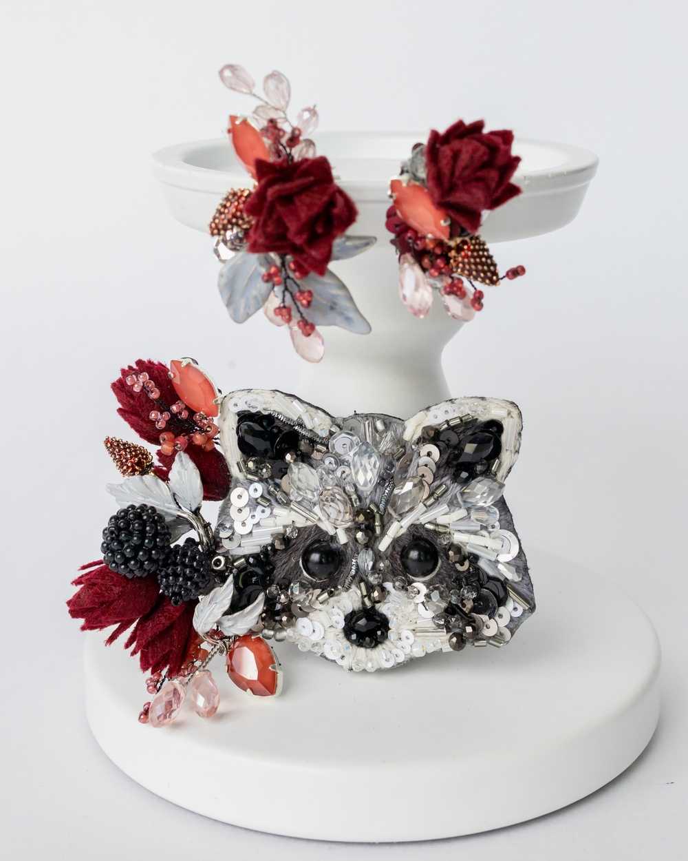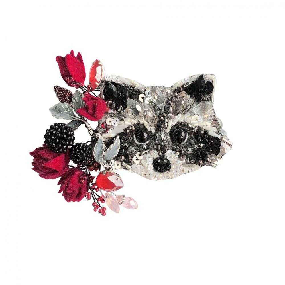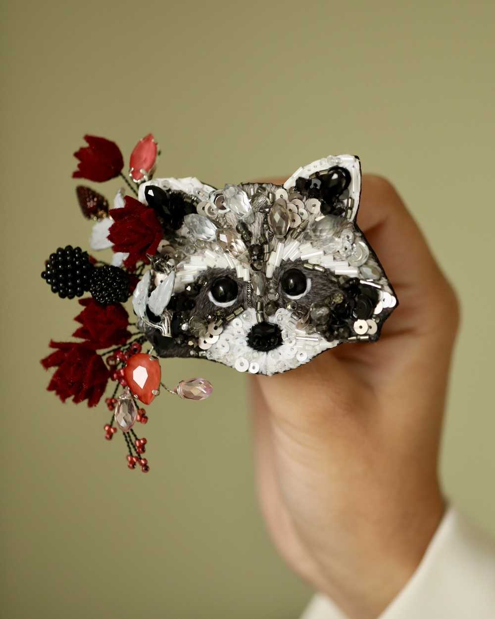 Брошь для любителей енотов. Композиция из веточек, цветов и ягодок!