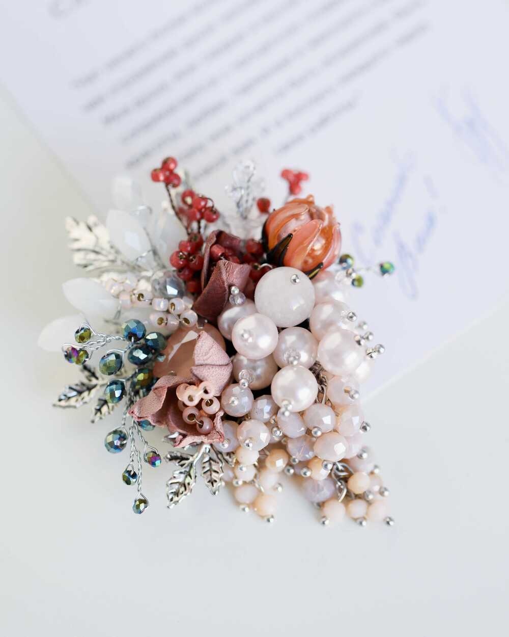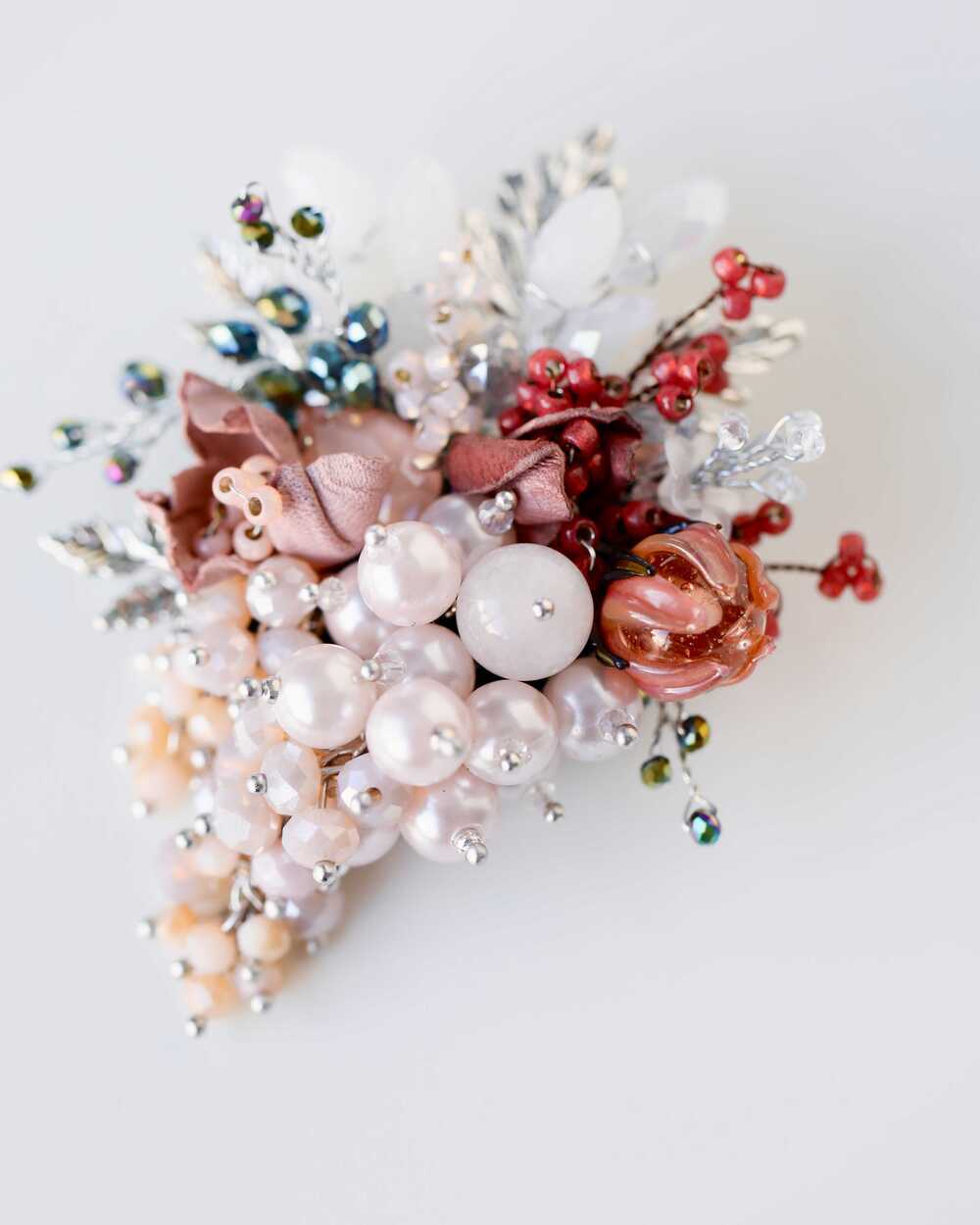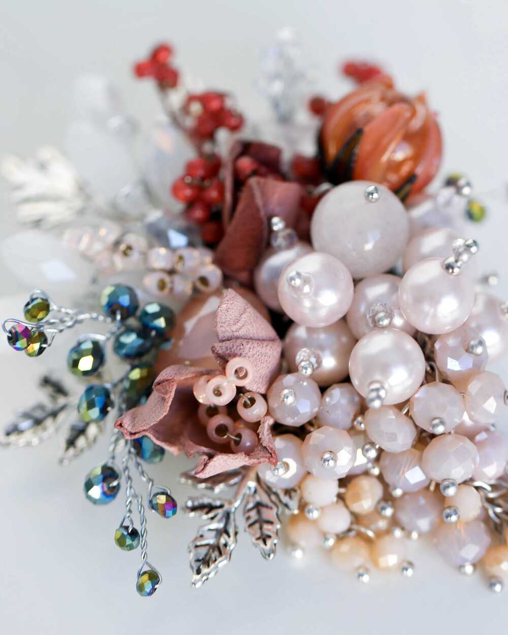 Сочная, динамичная брошь ГРОЗДЬ выручит вас ровно в тот миг, когда думать некогда. Нужно сразу быть богиней! Манящий акцент из натуральных бусин включит на максимум ваше обаяние и дополнит даже строгий монохромный классический образ.