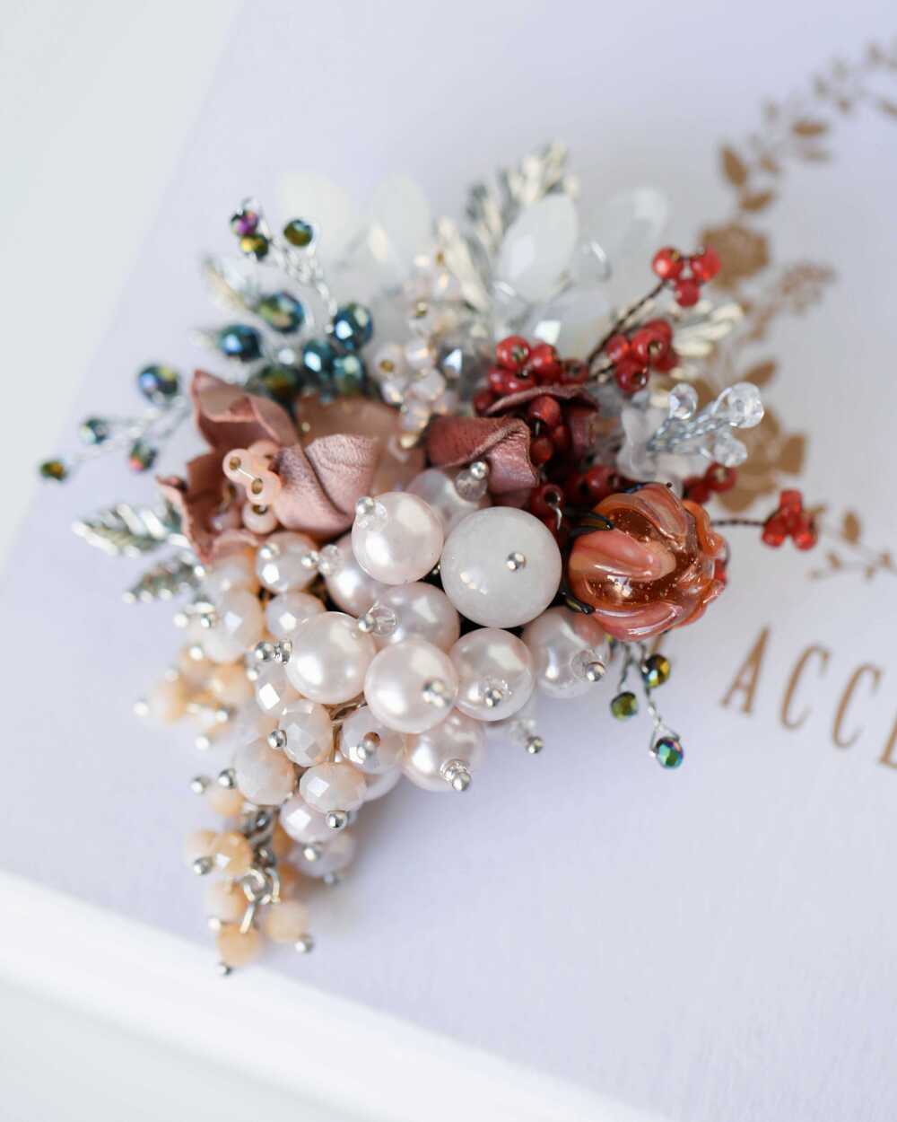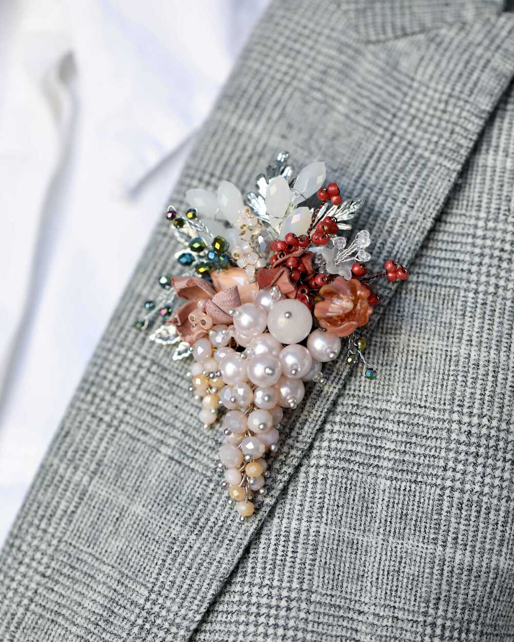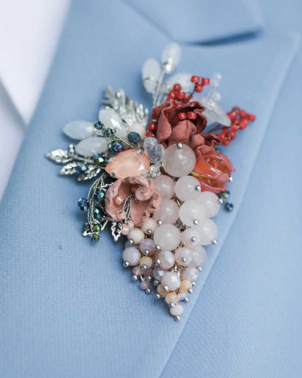 Сочная, динамичная брошь ГРОЗДЬ выручит вас ровно в тот миг, когда думать некогда. Нужно сразу быть богиней! Манящий акцент из натуральных бусин включит на максимум ваше обаяние и дополнит даже строгий монохромный классический образ.