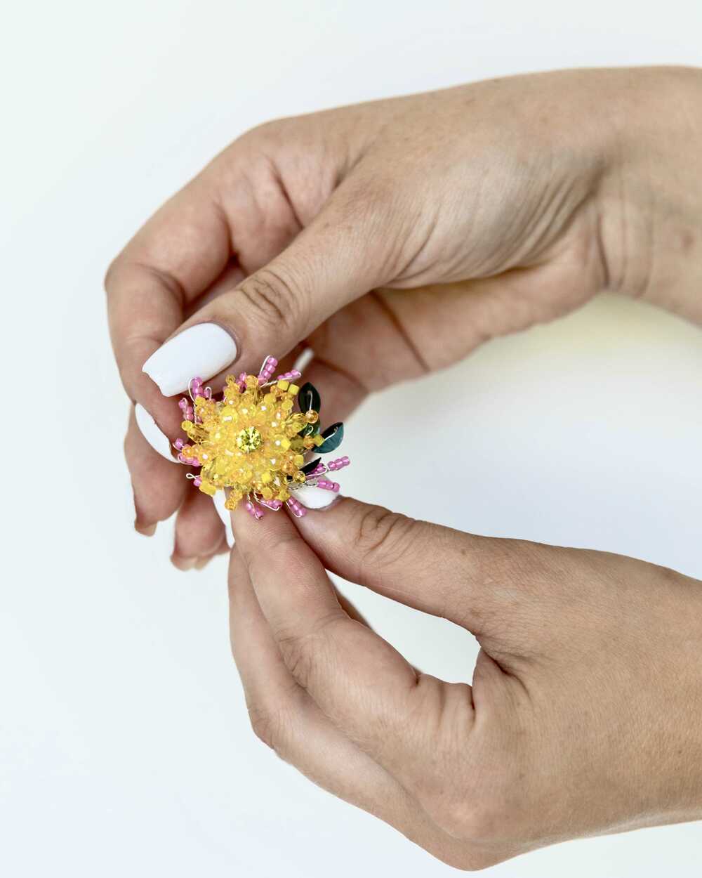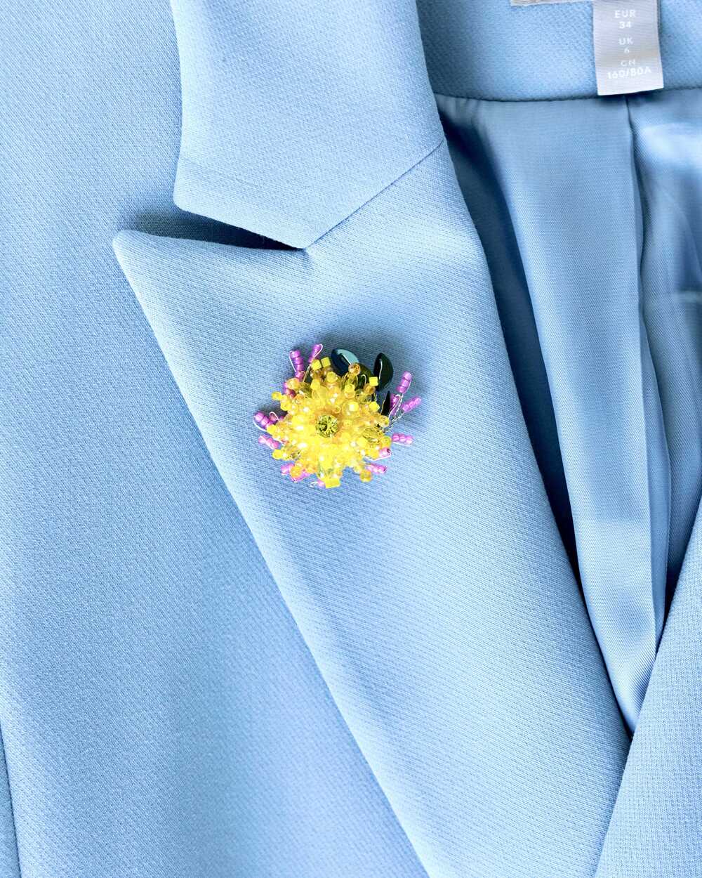 Брошь "ОДУВАНЧИК" в виде нежных одуванчиков, будто родом из душистого детства, станет вашим любимым украшением в летнем образе. Так и хочется потрогать, ведь цветы выглядят словно настоящие.