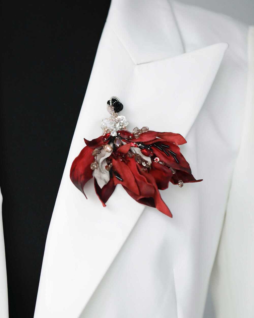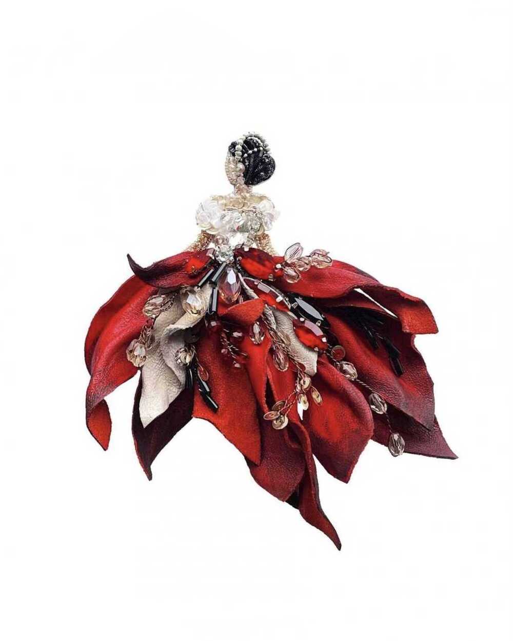Брошь "Леди цветов" из натуральной кожи сочетает в себе серебряно-алые цвета. Брошь получилась очень гармоничной и яркой. Идеальное решение для любимого платья или брючного костюма.