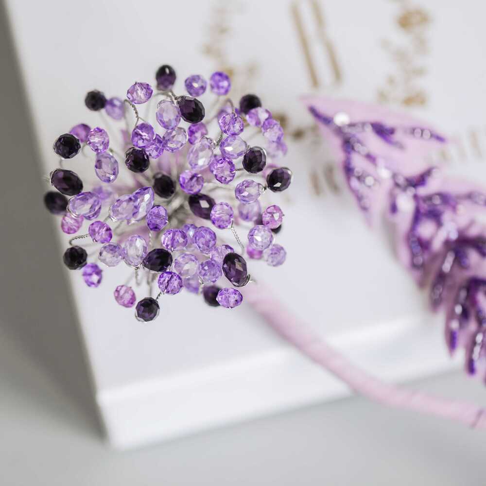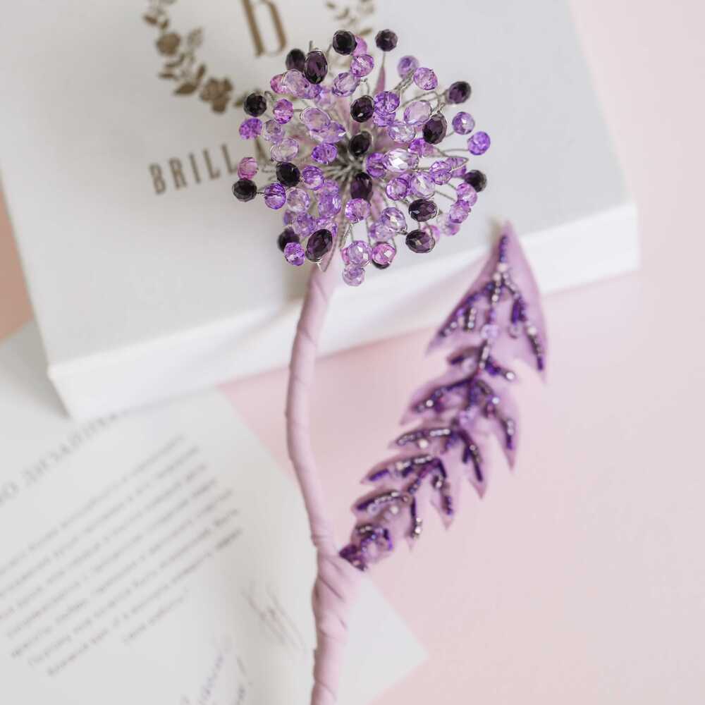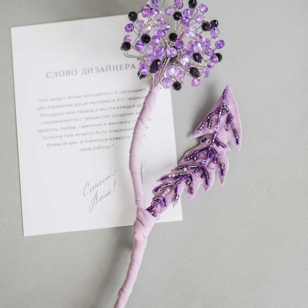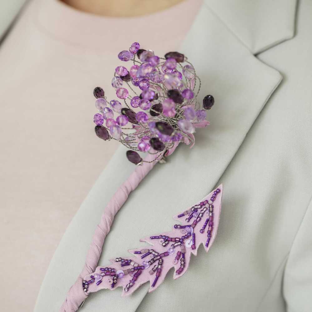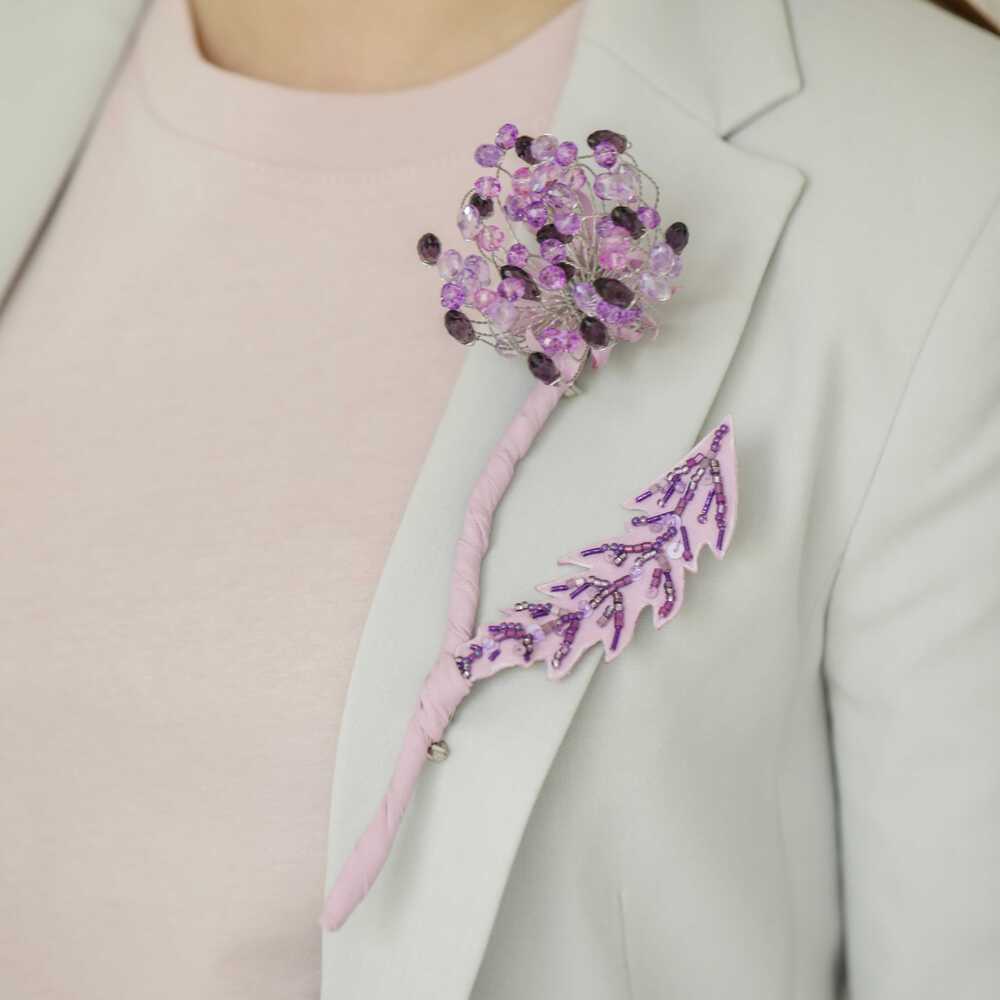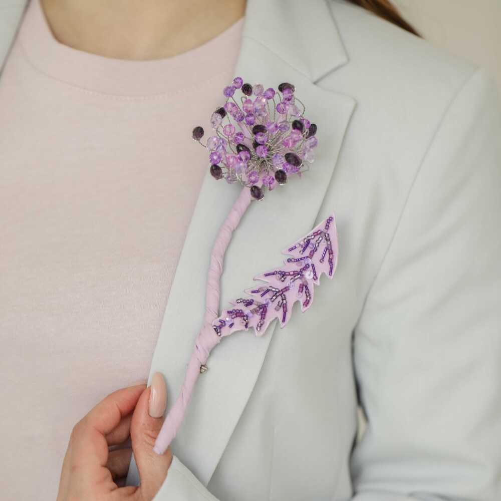 Брошь «Одуванчик лавандовый»