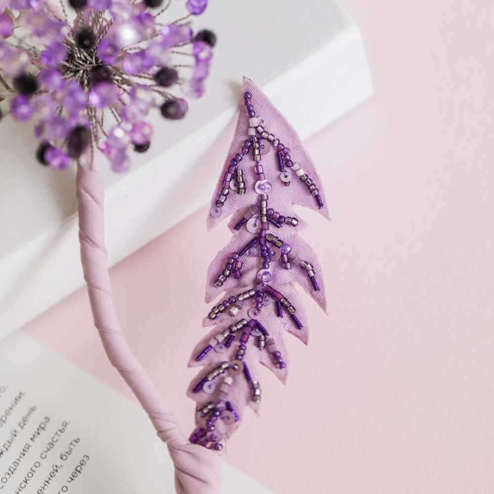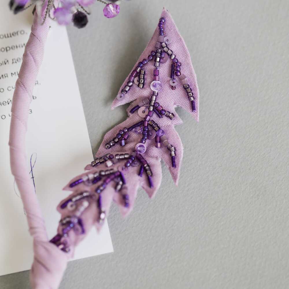 лист из фетра с вышивкой из чешского бисера калиброванного японской рубкой