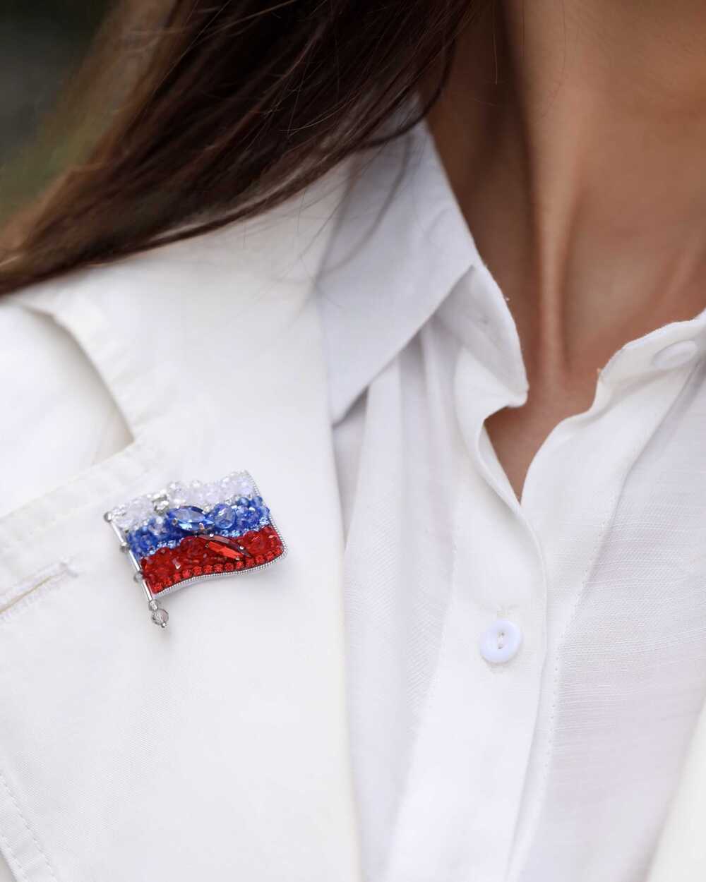 Сияющий триколор нашей броши ФЛАГ - небанальный подарок женщине, чья жизнь связана со служением Родине. Сдержанный и яркий акцент для официальных мероприятий и строгих образов обязательно произведет нужное впечатление! Застежка броши выполнена с безопасным фиксатором. А закругленный кончик иголки не рвет тонкую блузочную ткань и не оставляет зацепок на трикотаже.