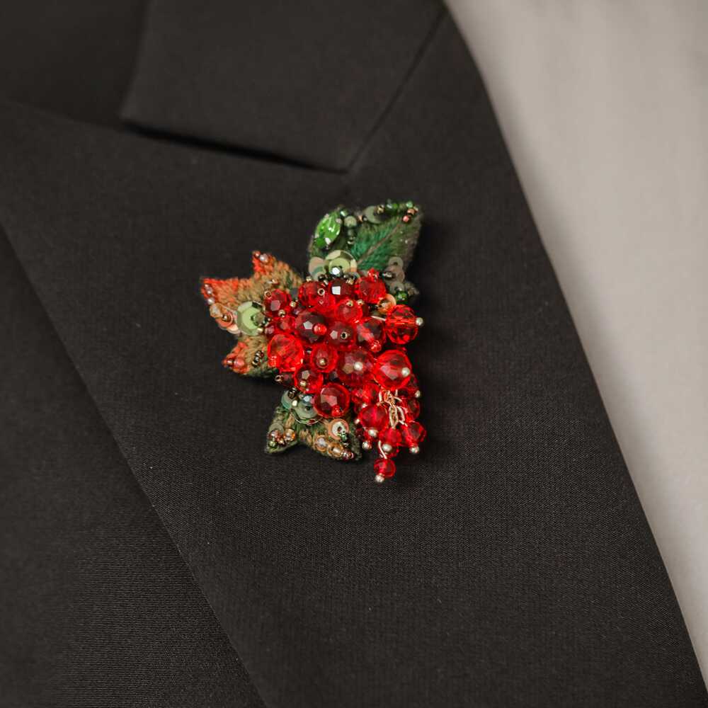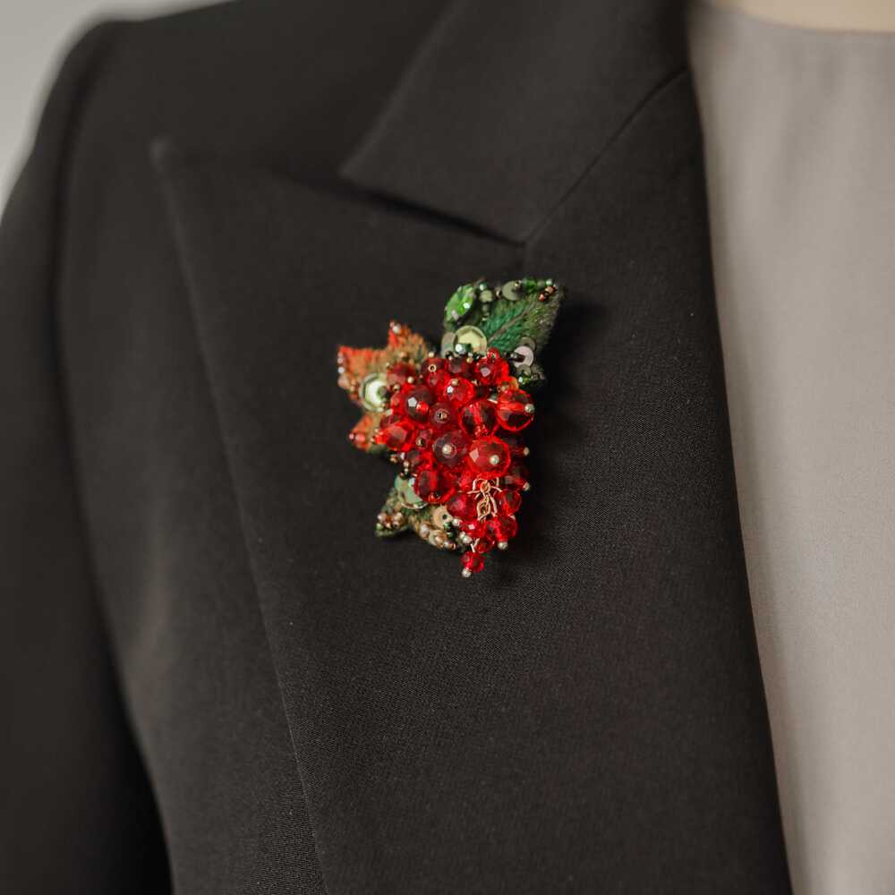 Сочная, динамичная брошь ГРОЗДЬ выручит вас ровно в тот миг, когда думать некогда. Нужно сразу быть богиней! Манящий акцент из натуральных бусин включит на максимум ваше обаяние и дополнит даже строгий монохромный/классический образ.