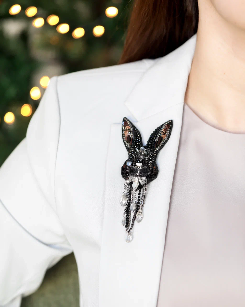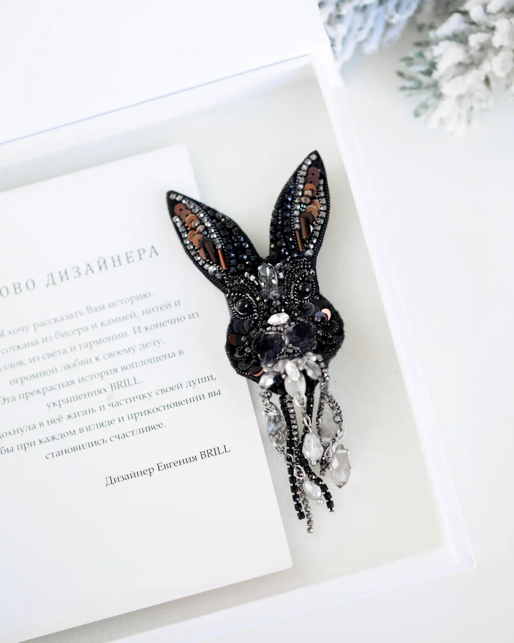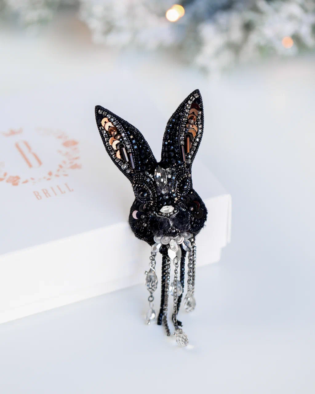 Брошь "Чёрный кролик" - универсальная, но очень красивая брошь, которая подойдет на любое мероприятие и для носки в обычной жизни. Выглядит очень элегантно и маняще.