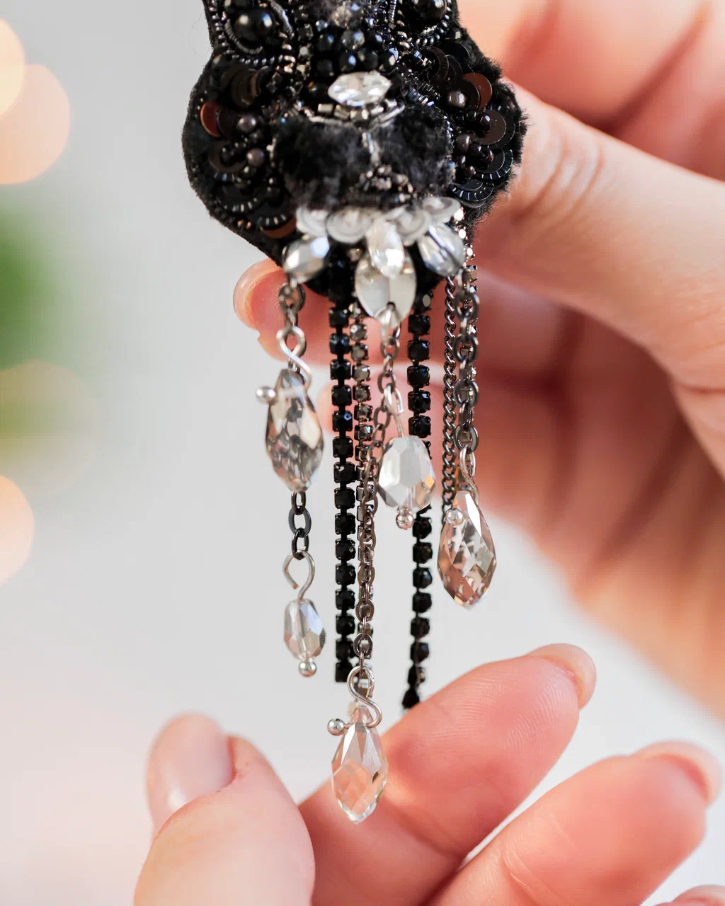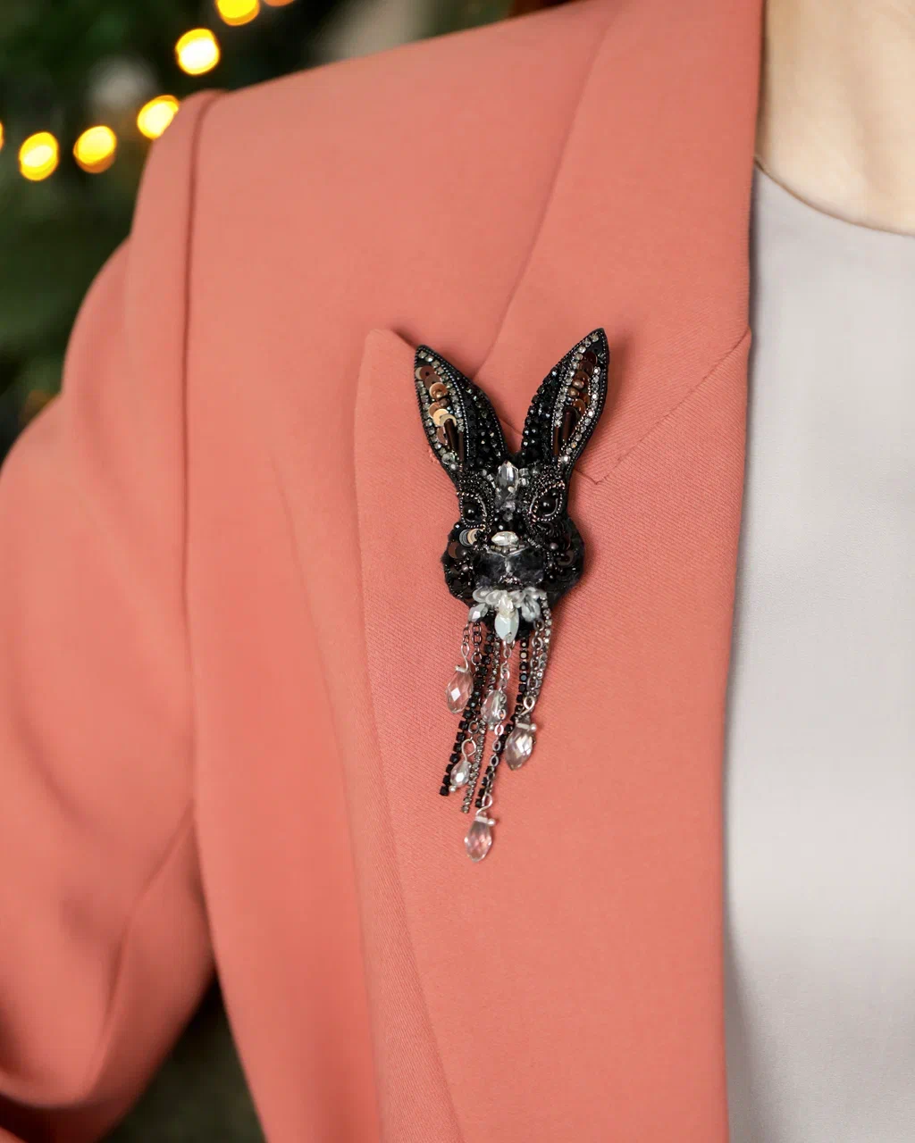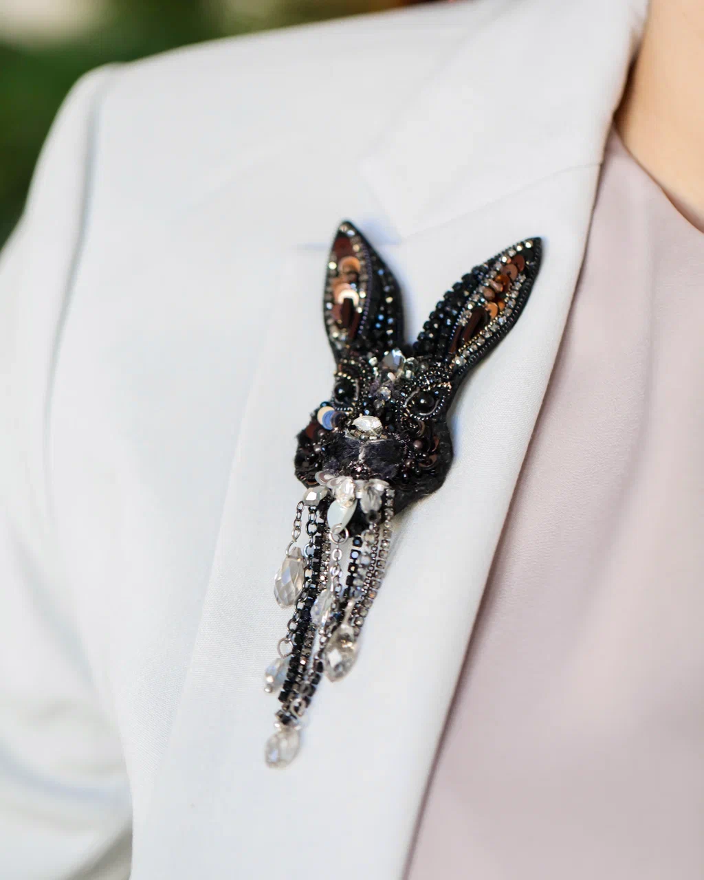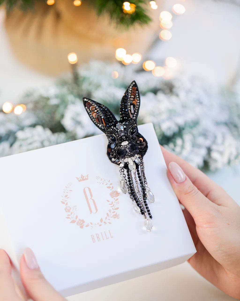 Брошь "Чёрный кролик" - универсальная, но очень красивая брошь, которая подойдет на любое мероприятие и для носки в обычной жизни. Выглядит очень элегантно и маняще.