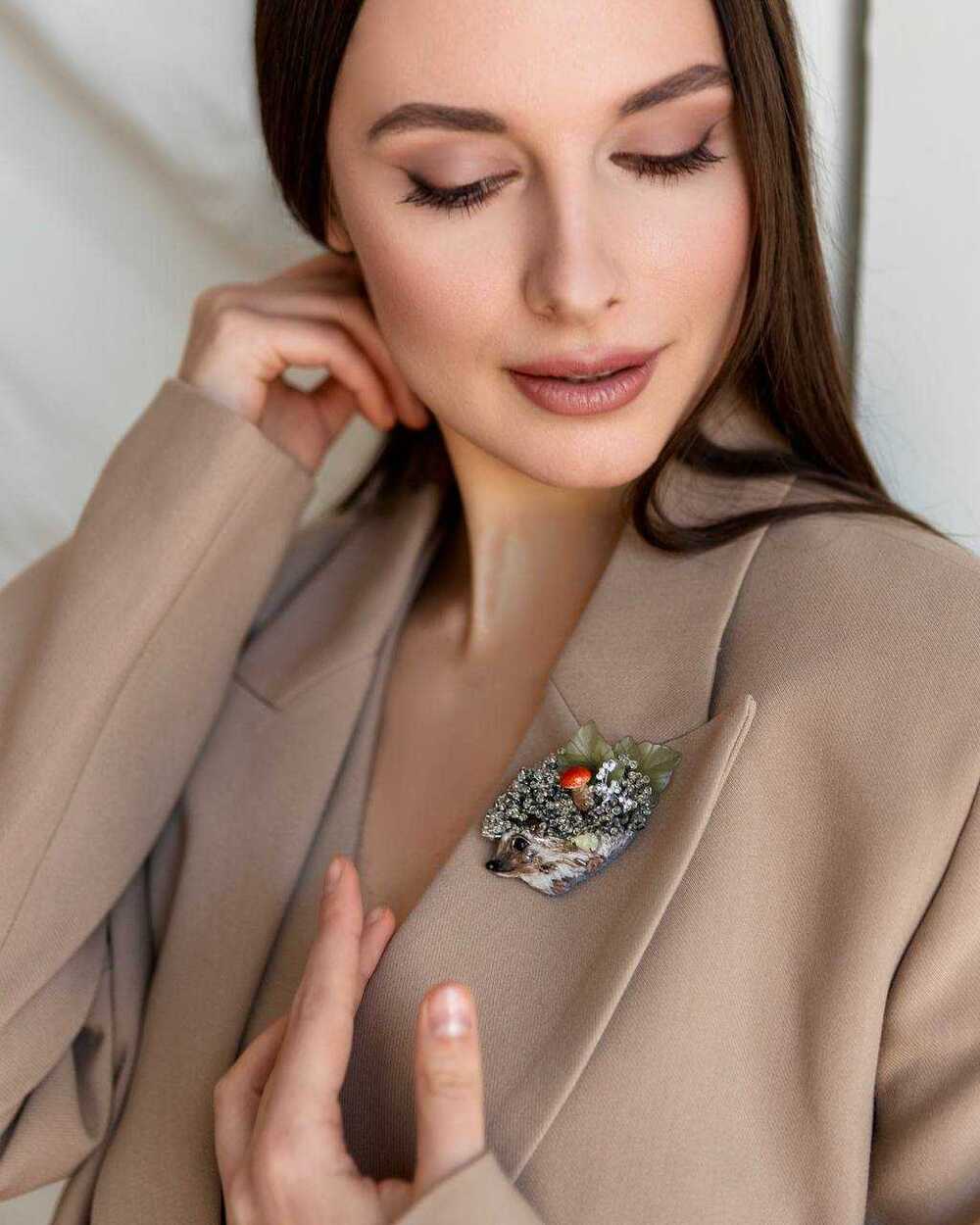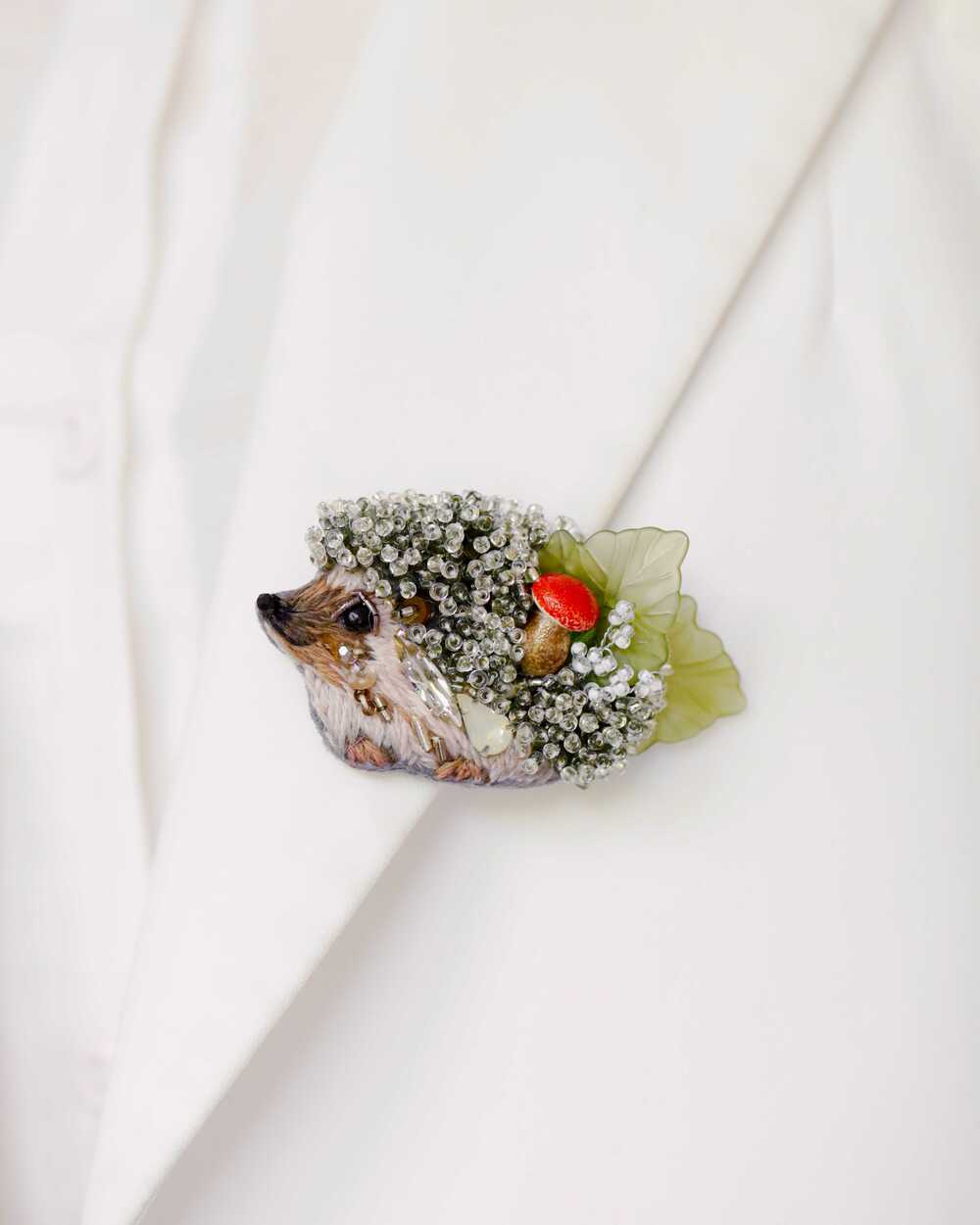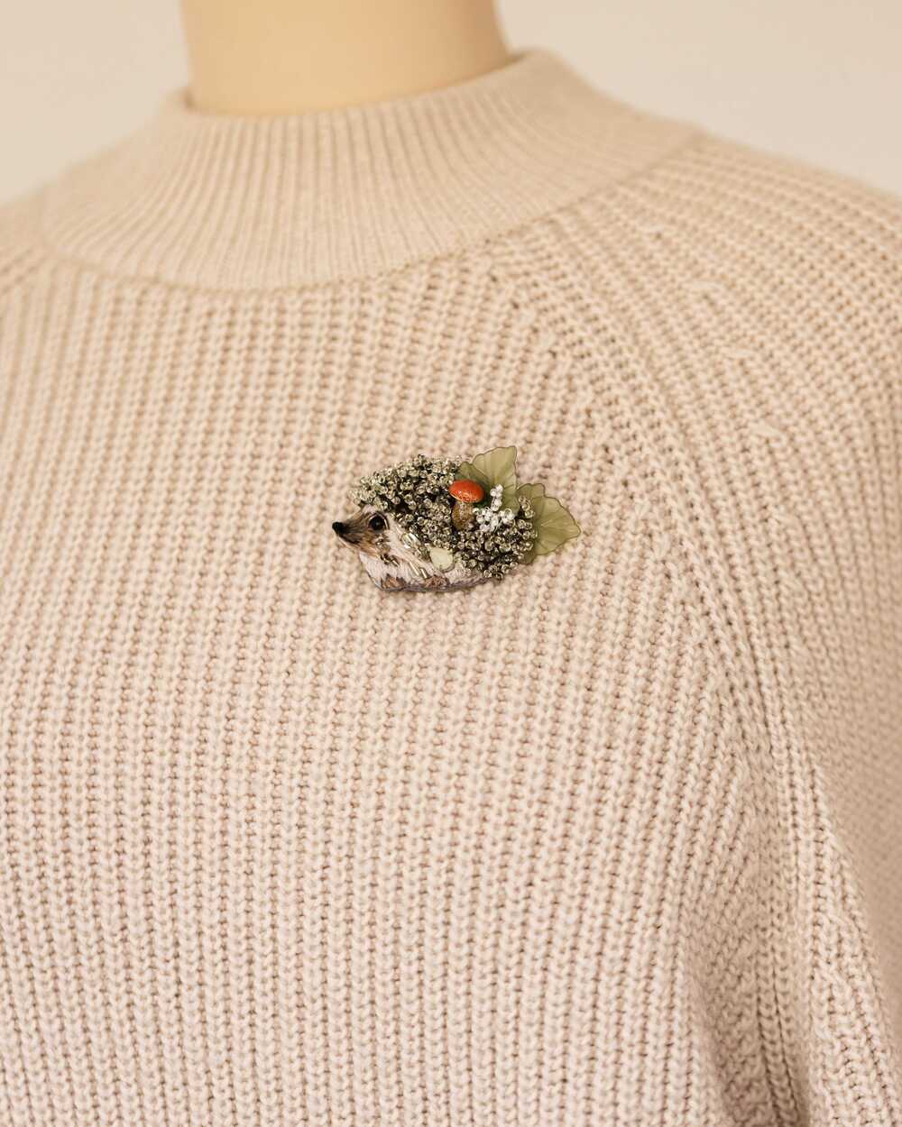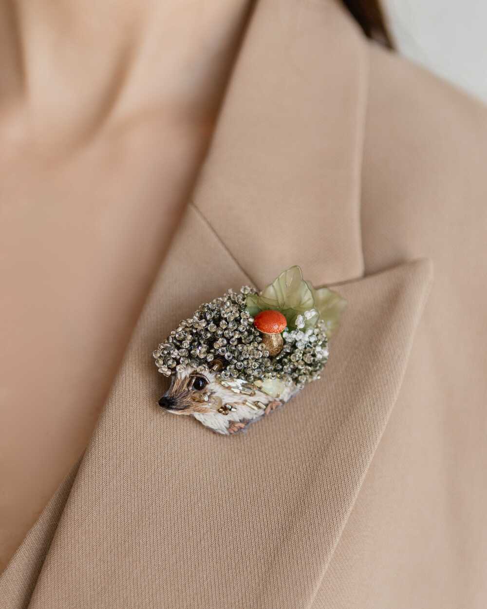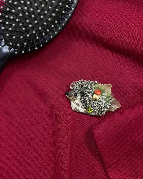 Брошь" Ежик Труди" шикарно смотрится на пальто, лацкане пиджака и даже футболке.