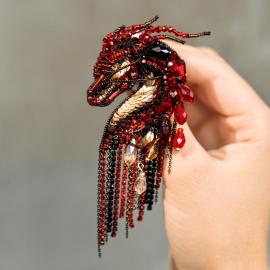 Брошь «Дракон красно-золотой»