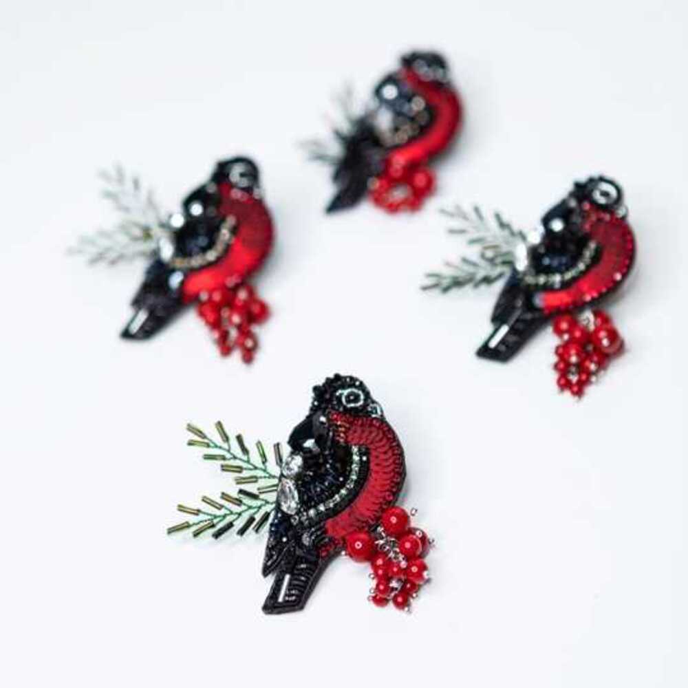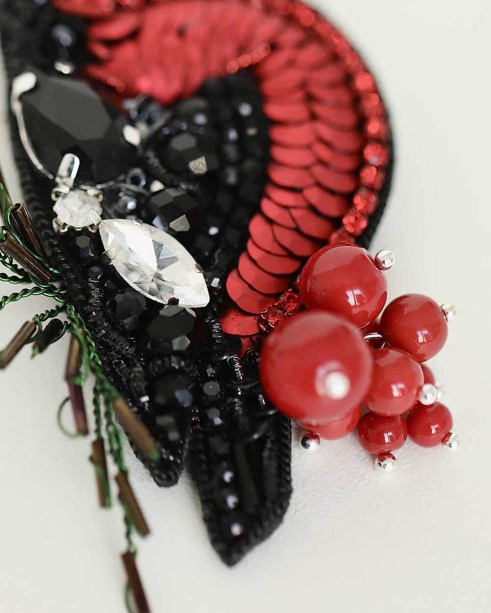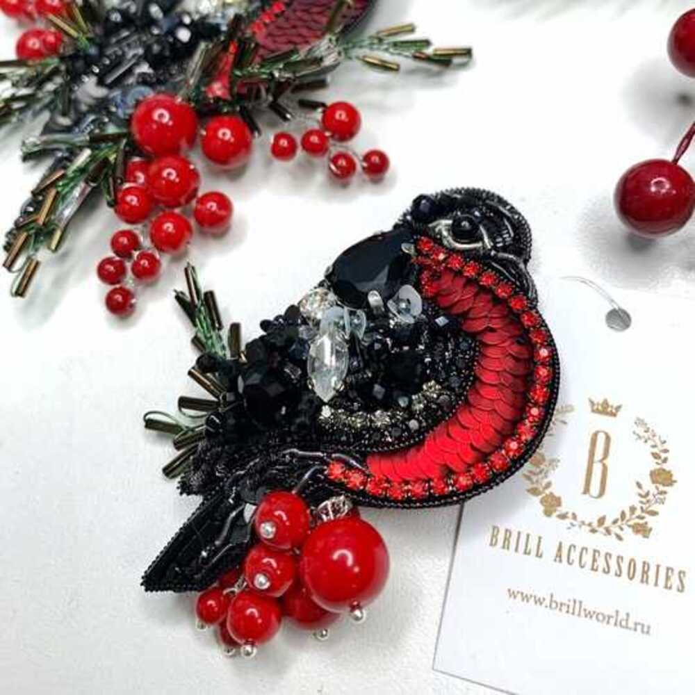 Брошь создана с использованием высококачественных материалов, включая сверкающие пайетки и кристаллы, которые придают изделию блеск и сияние. Брошь «Снегирь» можно носить с пальто, свитерами, платьями или даже использовать как украшение для сумки.