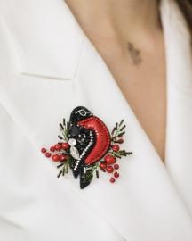 Брошь "Снегирь" создана дизайнером по вдохновению зимних сказочных мотивов и новогоднего волшебства. Самобытность и красота русского леса и его обитателей воплощена во многих украшениях нашего бренда. Посмотрите, чувствуется необыкновенная благородная сила душевного тепла в этом величавом Снегире, сидящем на еловой ветке. А ягоды рябины мы сделали из коралловых бусин разного размера. Их сочный цвет добавляет броши той самой русской красочной изюминки, которая присуща русской народной росписи.