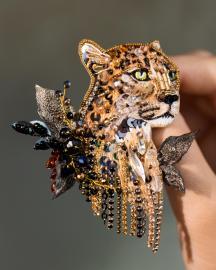 Леопарды всегда были загадочным и могущественным символом в различных культурах по всему миру. Мы воплотили всю мощь и грацию этого величественного животного в броши ручной работы. Во время создания украшения наши мастера использовали высококачественные материалы, в том числе и натуральную кожу, из которой выполнены декоративные элементы вокруг "Леопарда".
