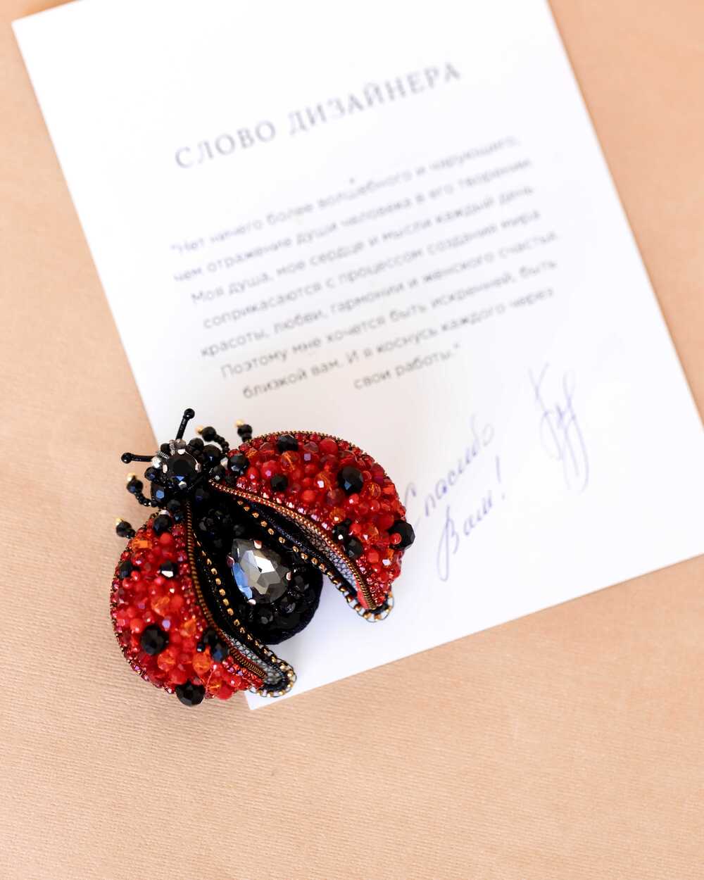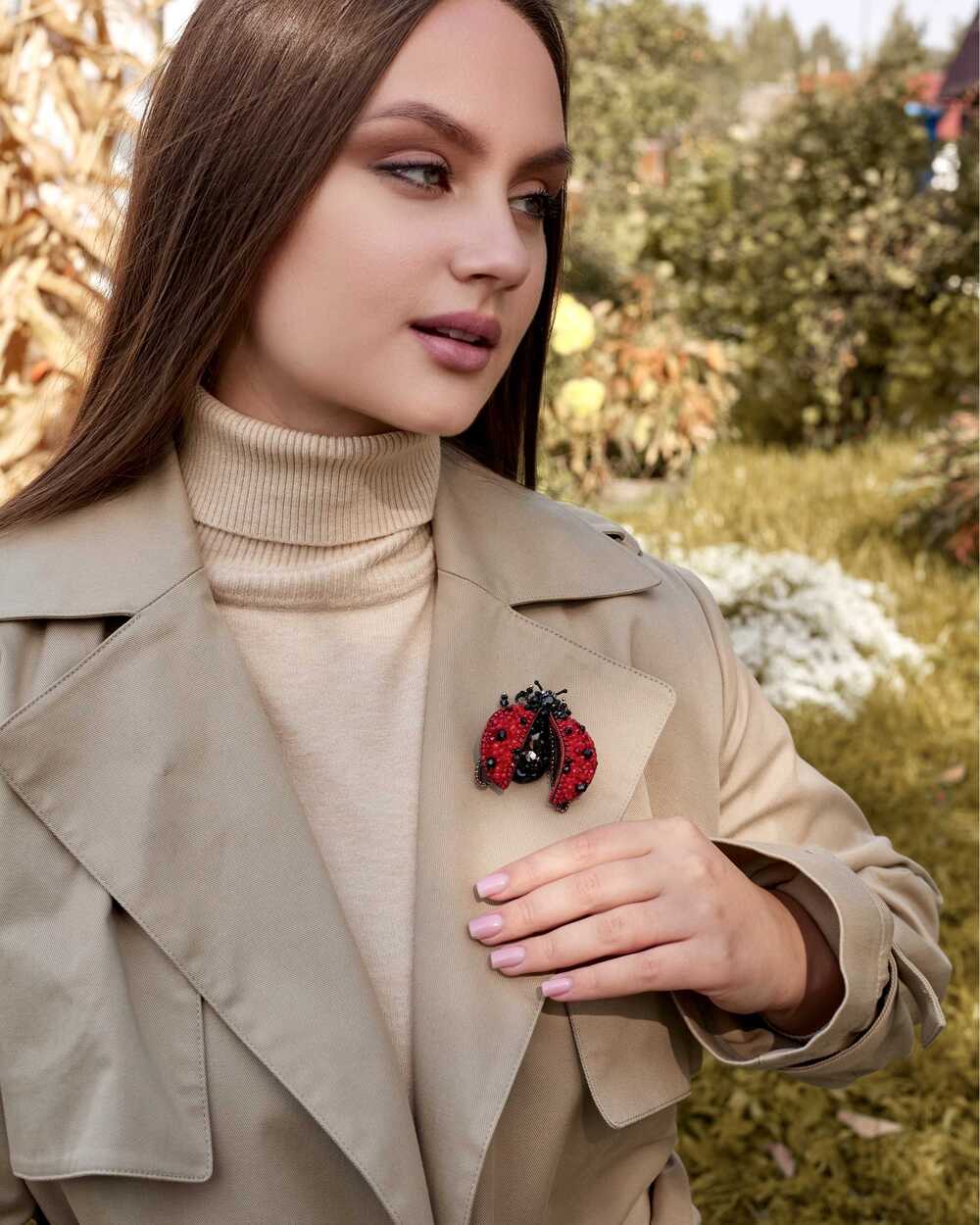 Брошь "Божья коровка", как искренний символ удачи и защиты, излучает тепло и доброту.