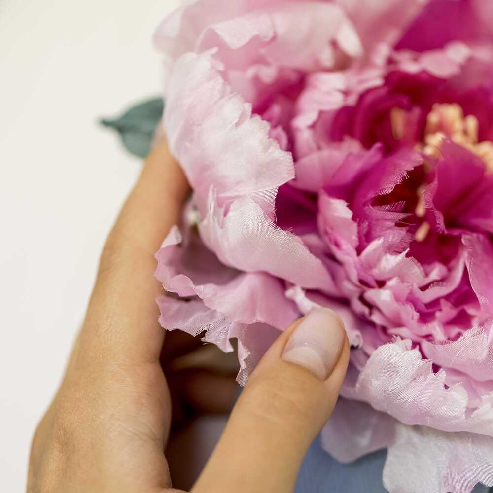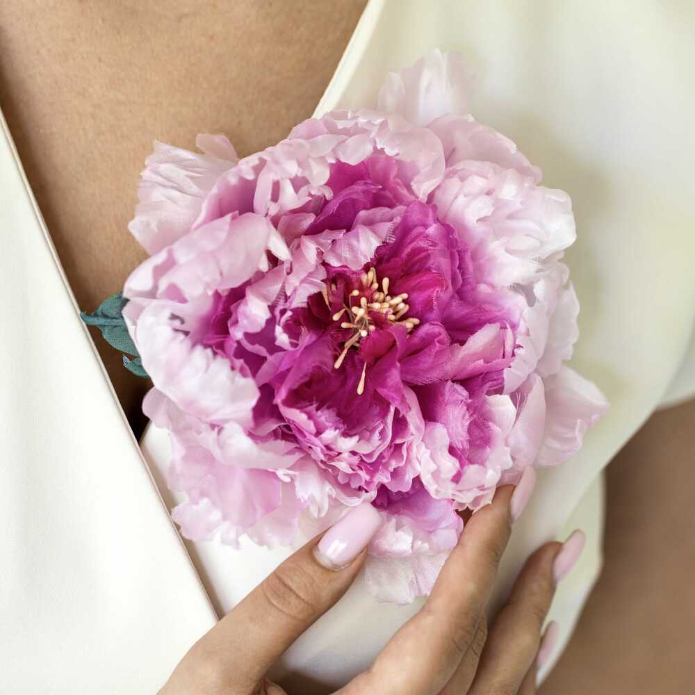Пион — крупный и пышный цветок. Богатая палитра оттенков включает в себя пастельные белые и розовые цвета. Идеально подходит для романтических образов.
