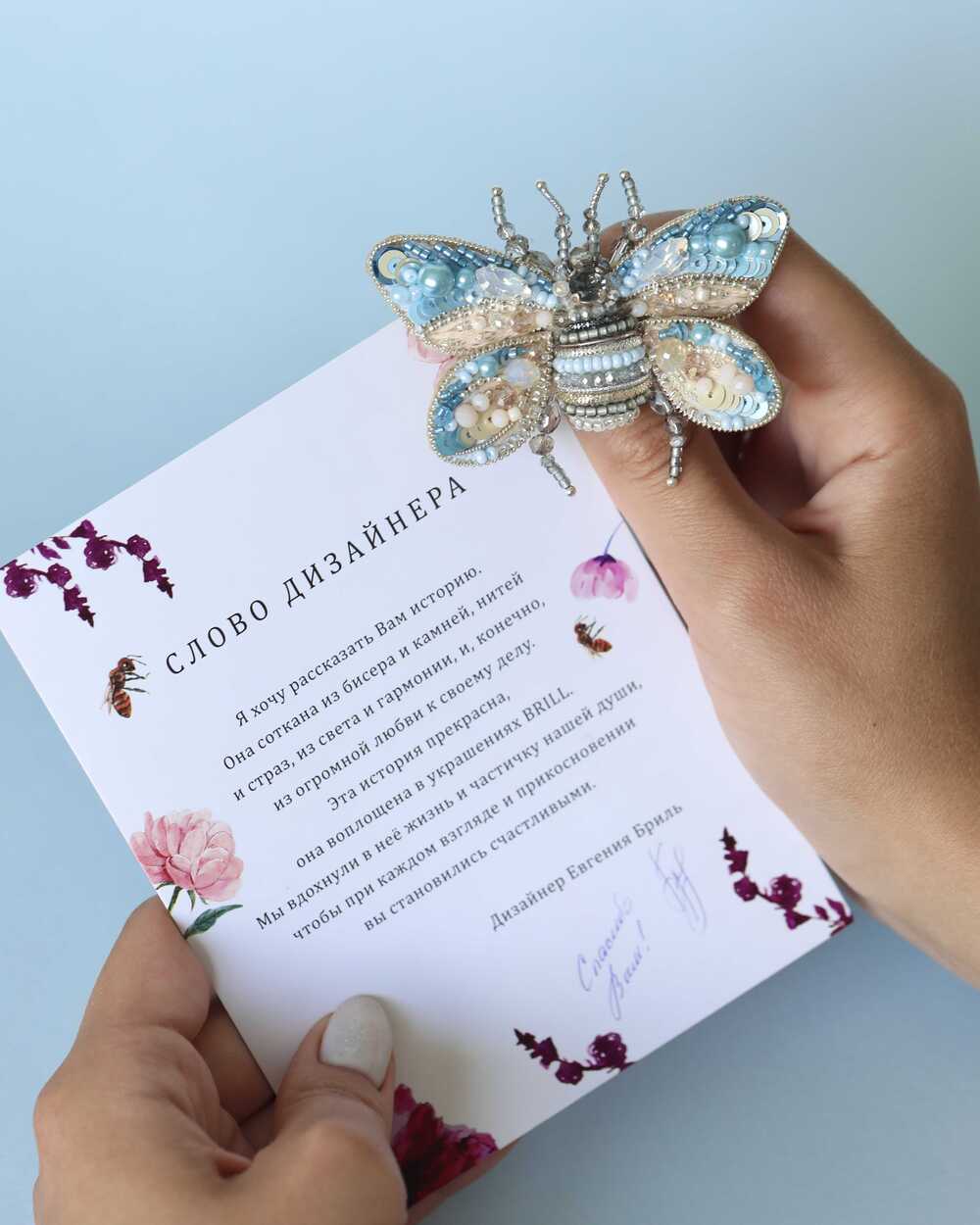 Брошь пришла в срок, в брендовой коробочке, даже с открыткой от дизайнера. Это приятно, в каждой покупке я замечаю эти мелкие детали. Брошь супер, буду носить на работу.