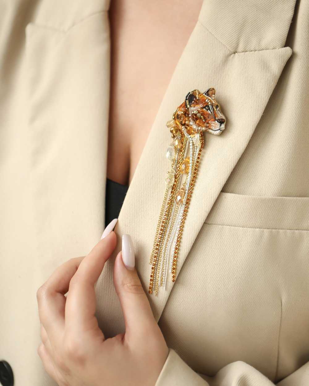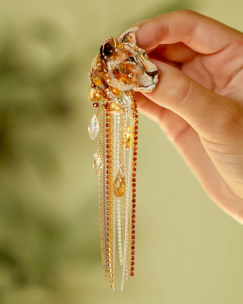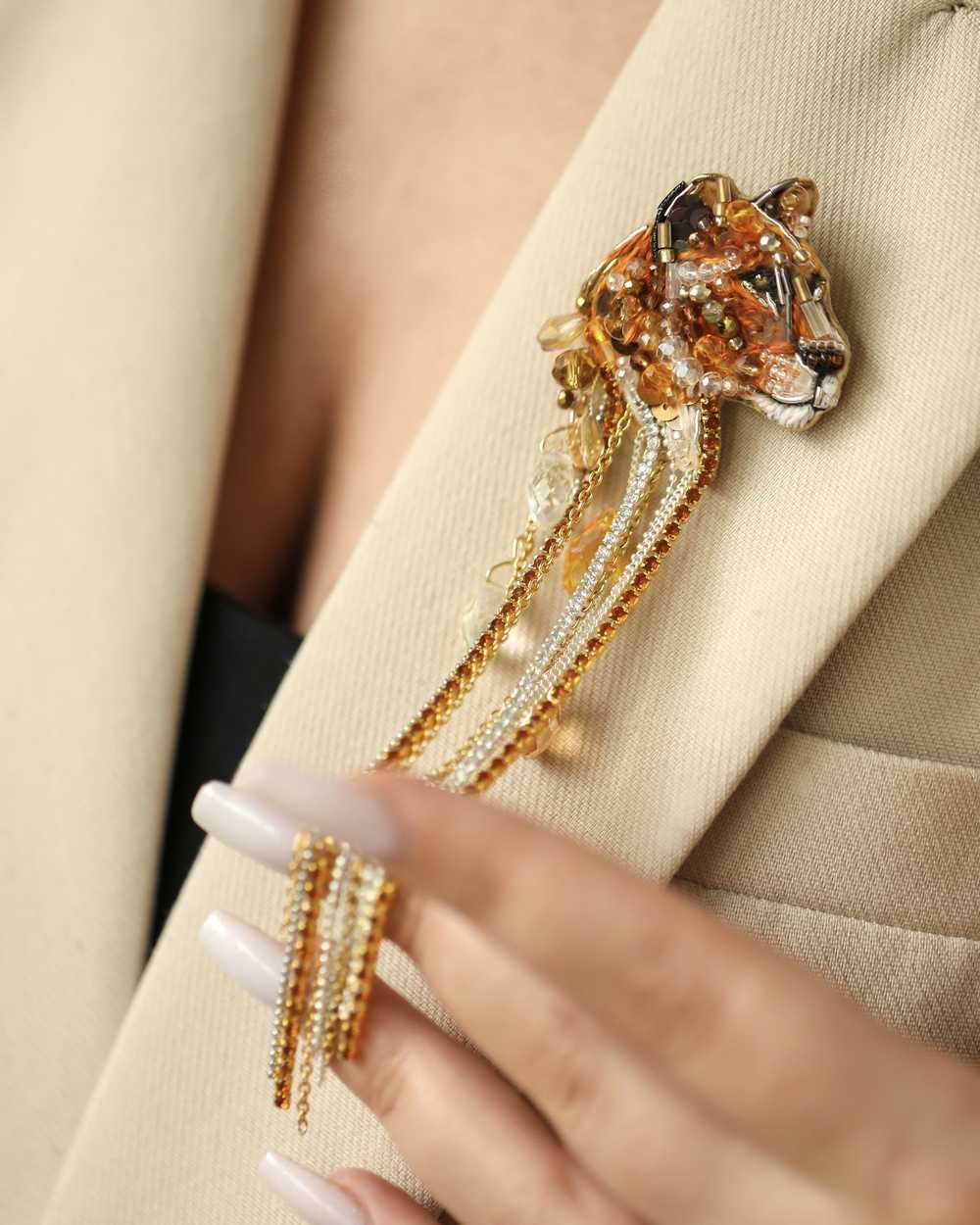 Брошь "Львица" - это воплощение грации, силы и красоты дикой природы в изящном украшении ручной работы.