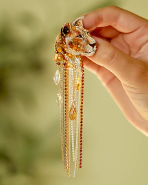 Гордый взгляд Львицы завораживает, а струящиеся вниз цепочки и кристаллы напоминают о её пышной гриве под сиянием африканского солнца. Лёгкие переливы света на каждой детали подчёркивают её благородство и богатство текстур.