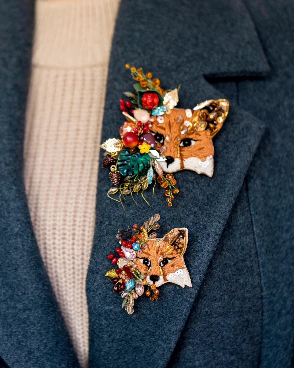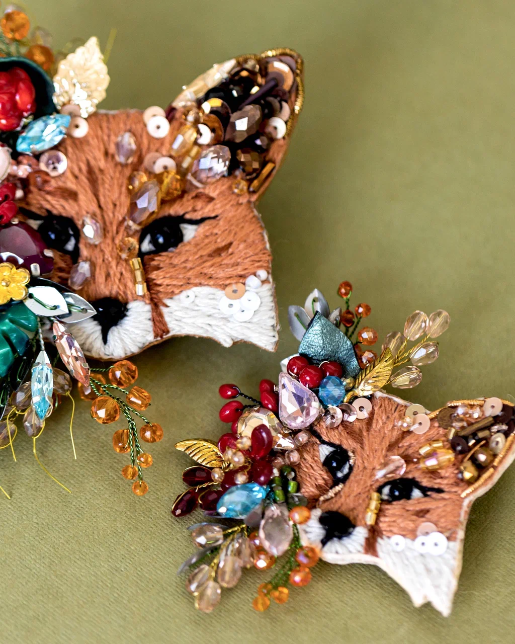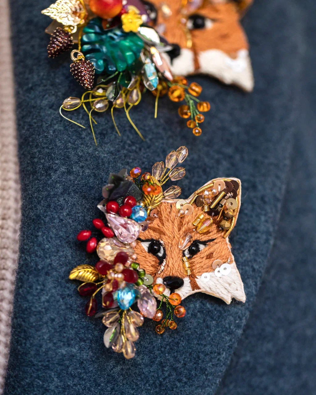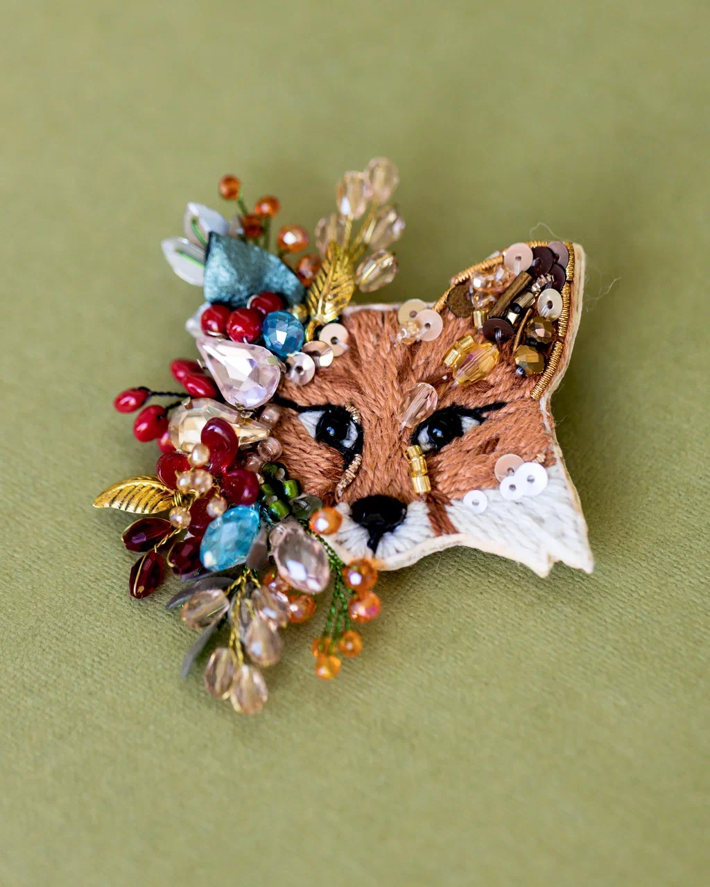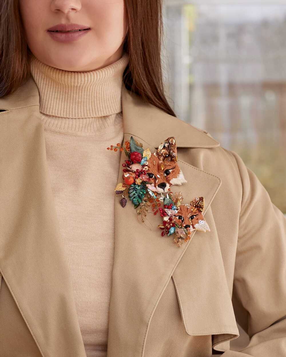 Рыжая красавица, украшенная пёстрой декоративной композицией. "Фокси" как будто только что выбежала из весеннего леса, окутанная ароматом цветов, ягод и листьев. Ушко расшито пайетками и гранеными бусинами карамельного цвета, которые красиво переливаются на солнечном свете. В нашей броши используется муранское стекло, которое ценится за уникальность, историческую значимость и технику изготовления. Это добавляет украшению уникальности и эксклюзивности. Пусть "Лиса Фокси" напоминает вам об осенней поре, лёгкости на душе и обновлении