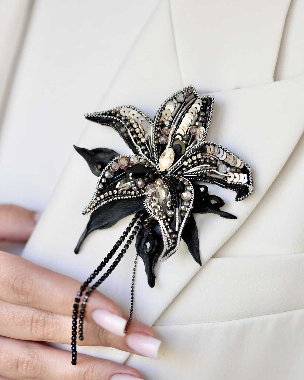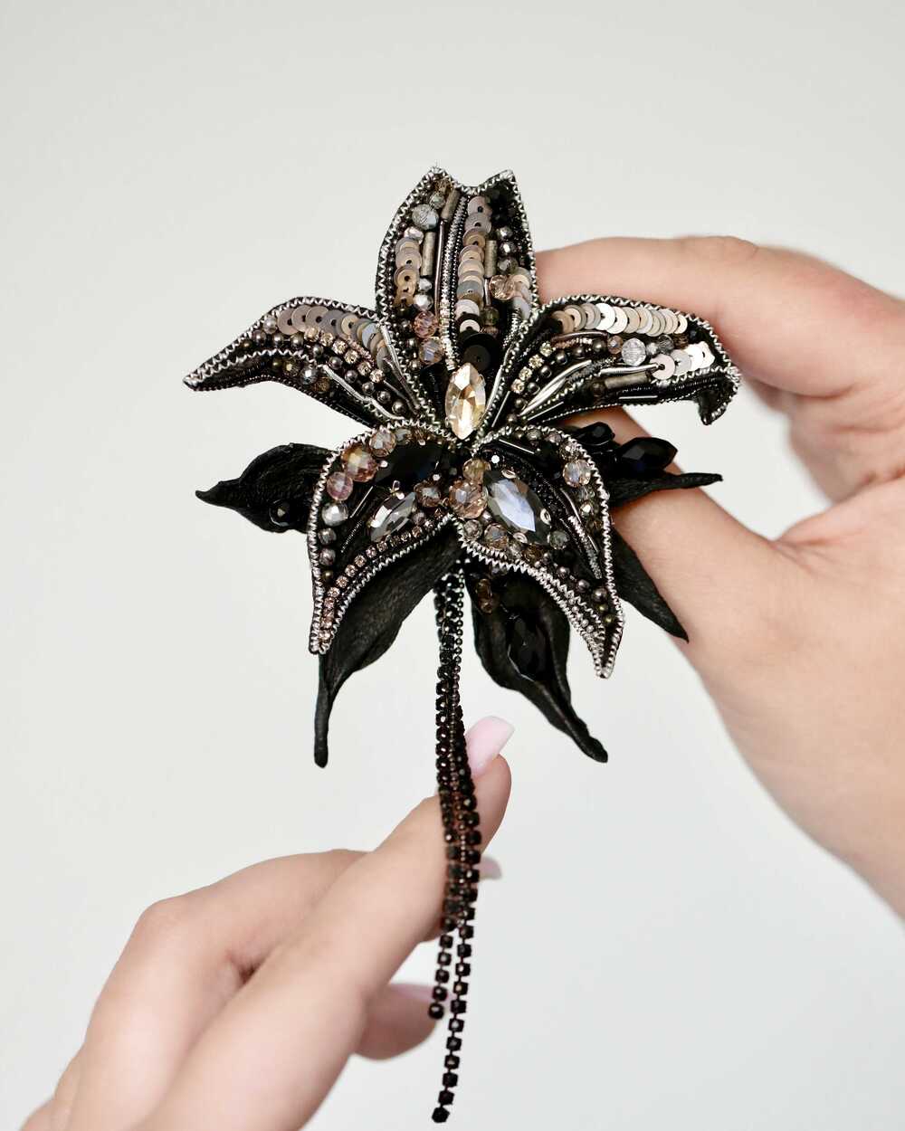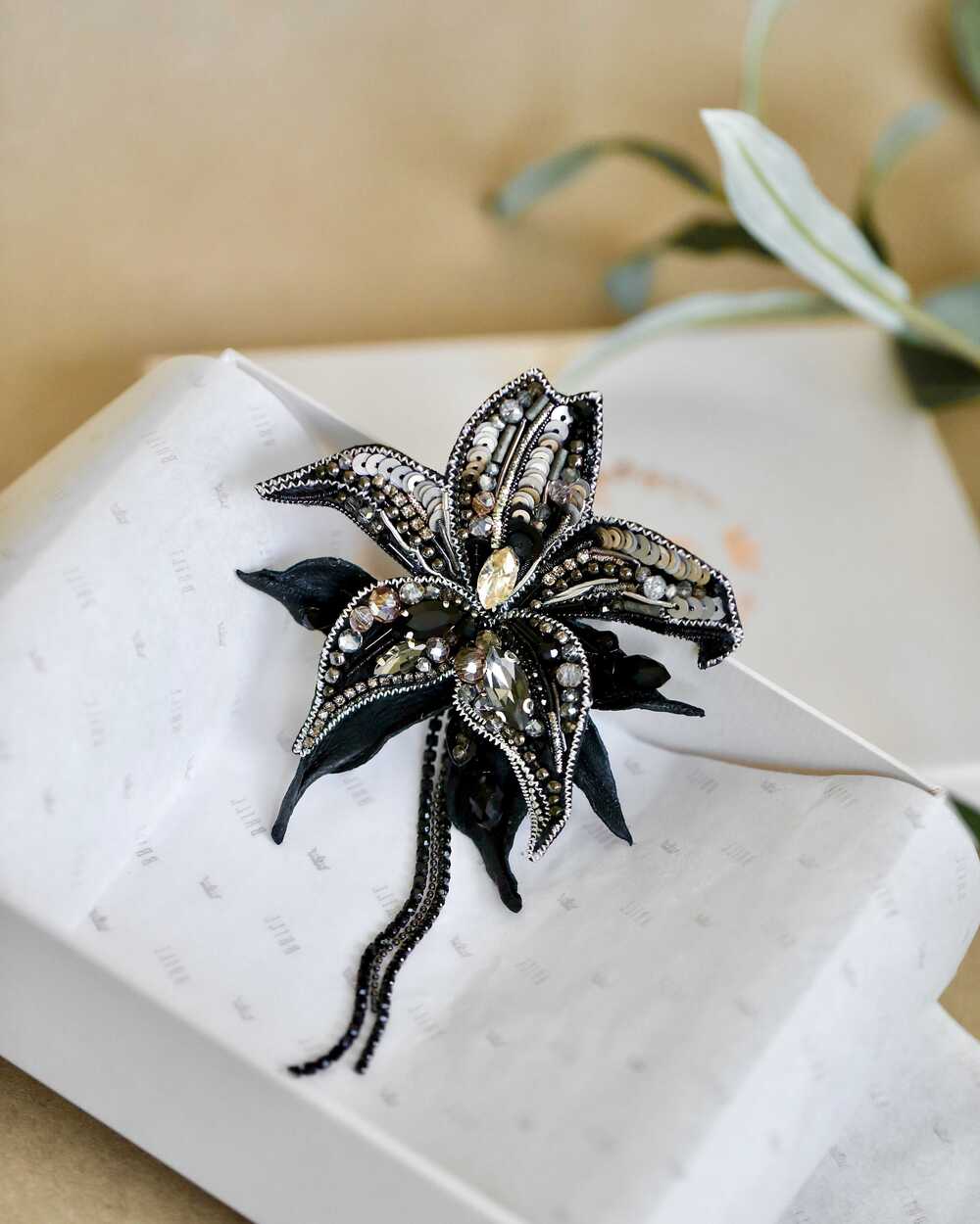 Погрузитесь в атмосферу утонченной красоты и изящества с брошью “Лилия" в черном цвете. Этот аксессуар станет ярким акцентом вашего образа, подчеркнет вашу индивидуальность и придаст нотку загадочности.