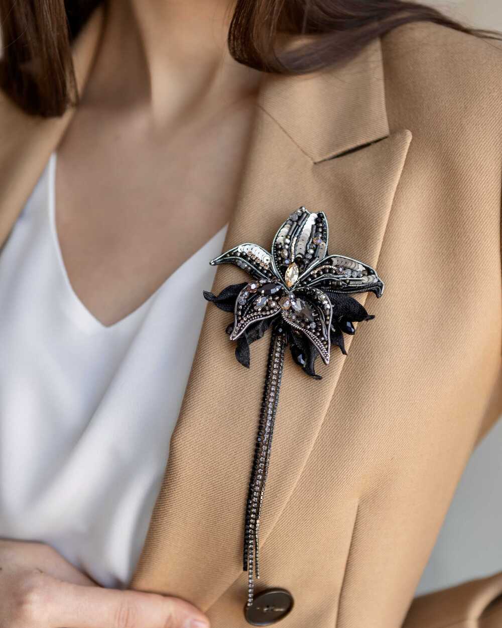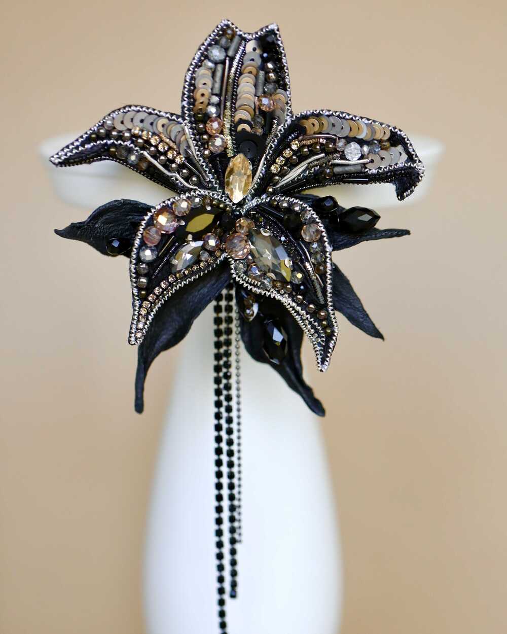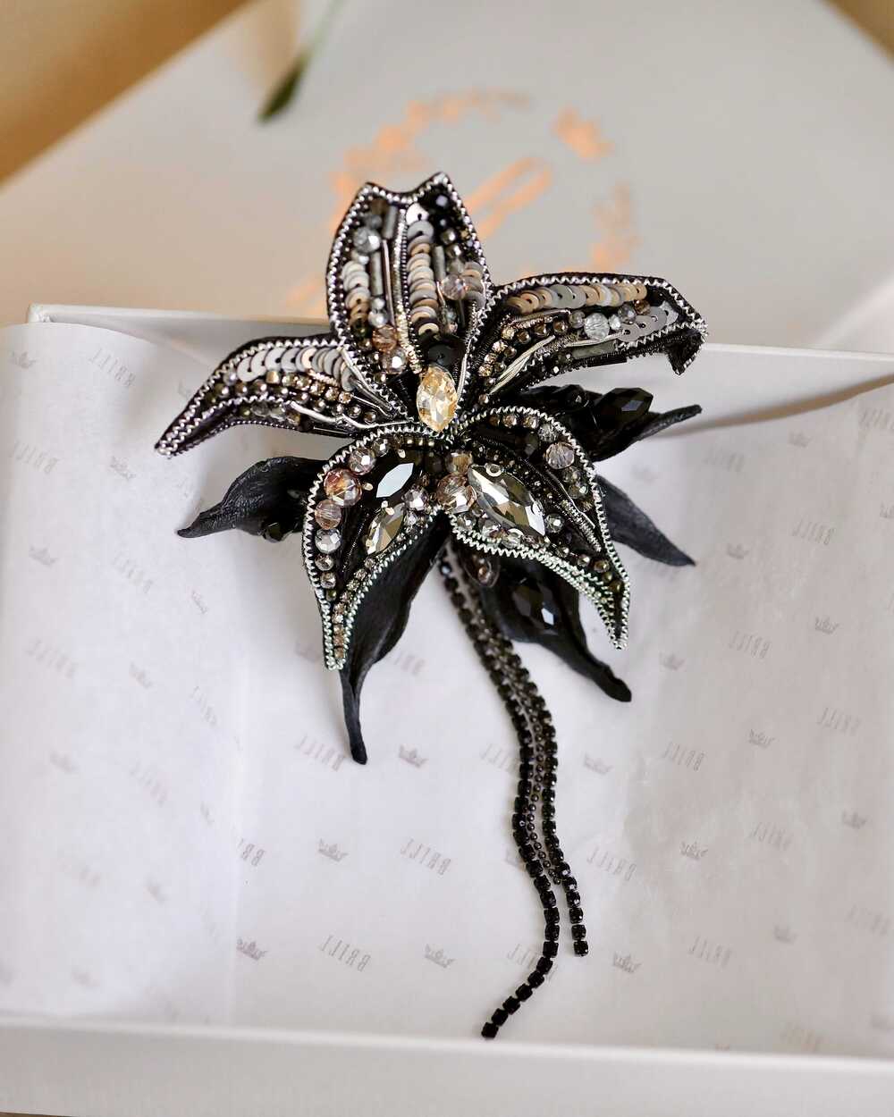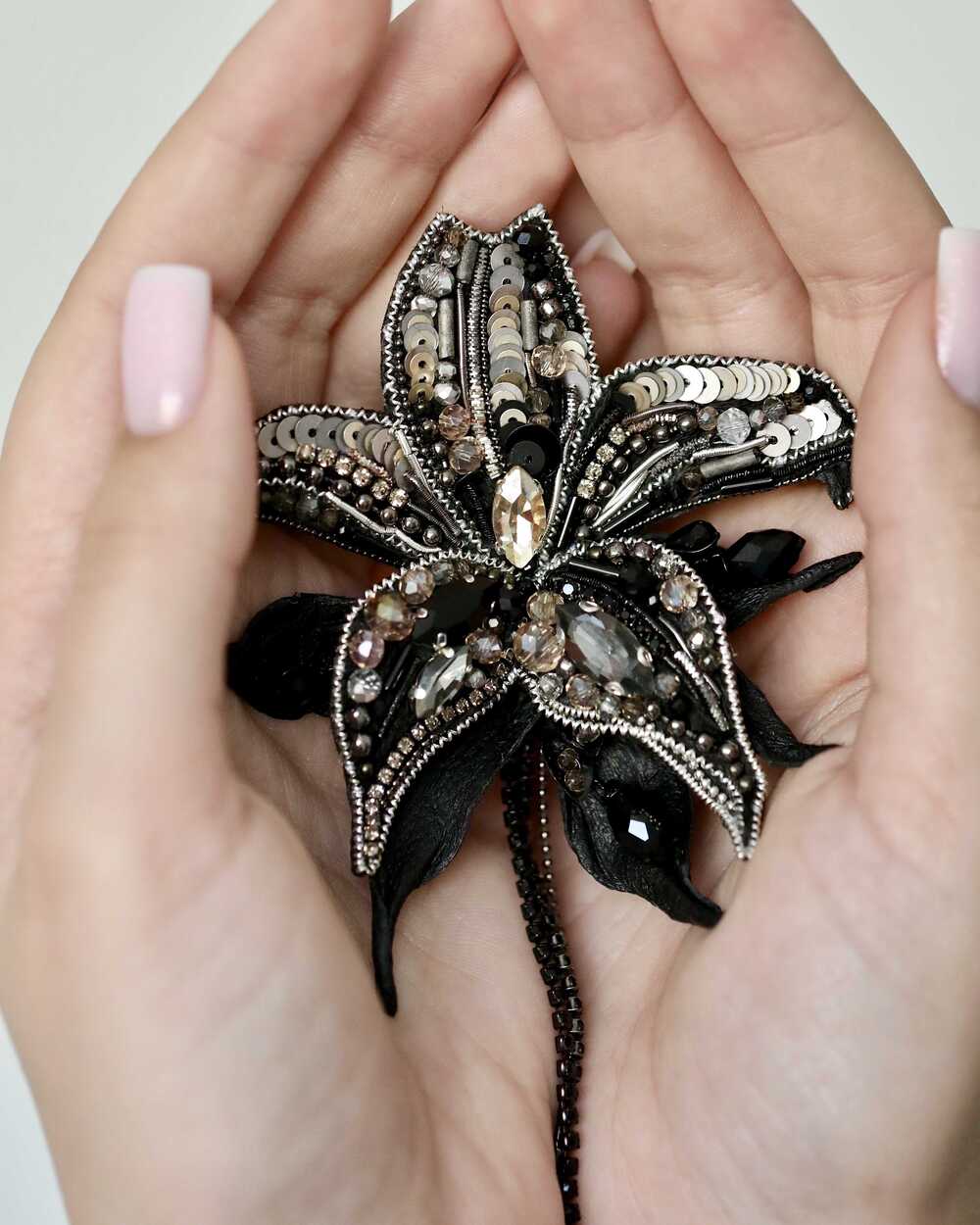 Погрузитесь в атмосферу утонченной красоты и изящества с брошью “Лилия" в черном цвете. Этот аксессуар станет ярким акцентом вашего образа, подчеркнет вашу индивидуальность и придаст нотку загадочности.