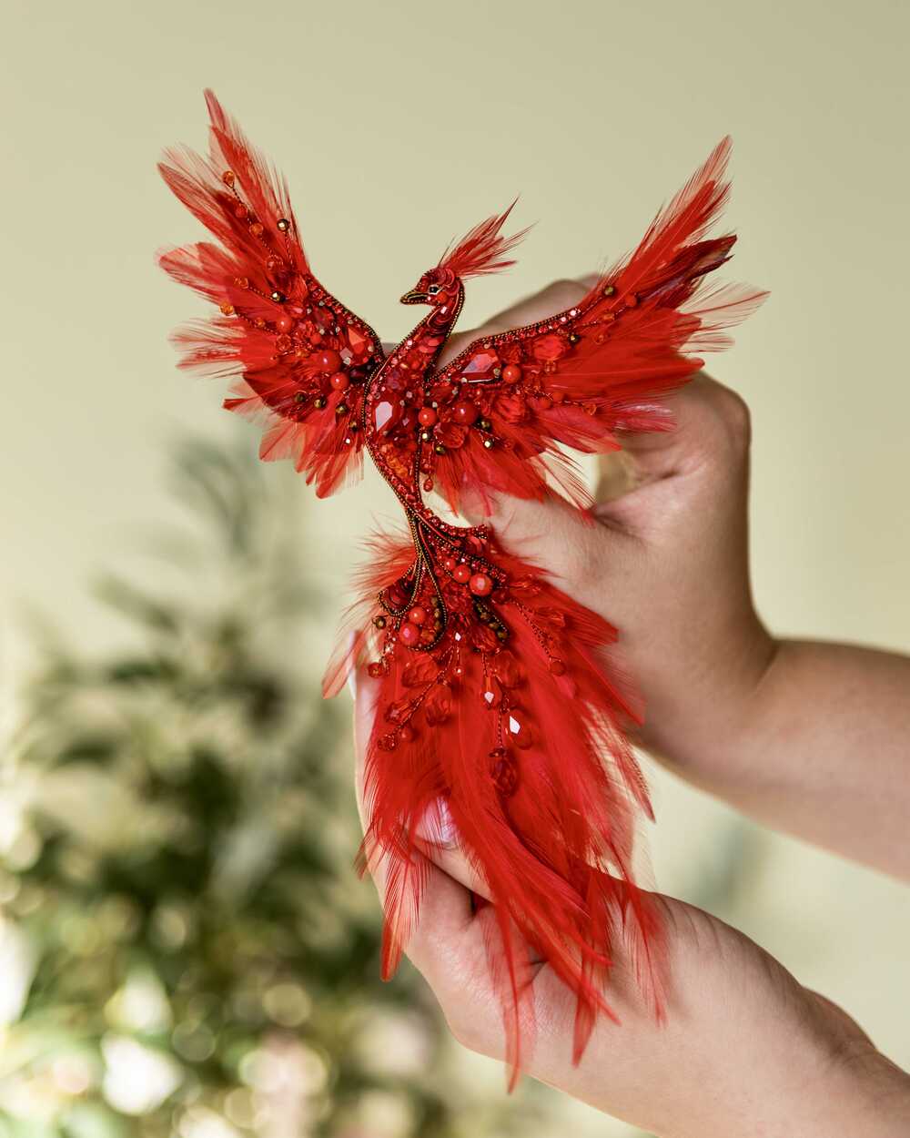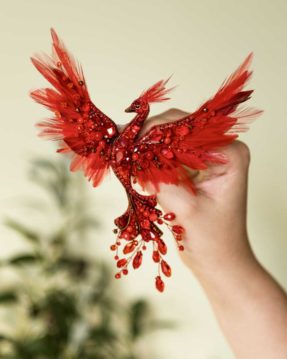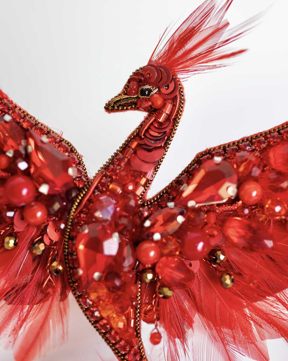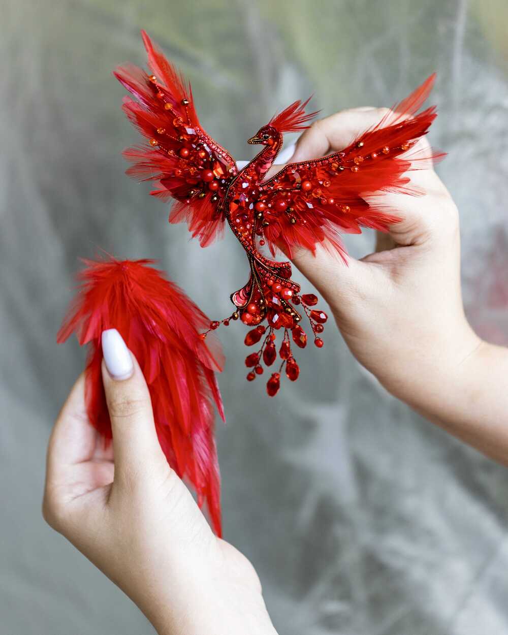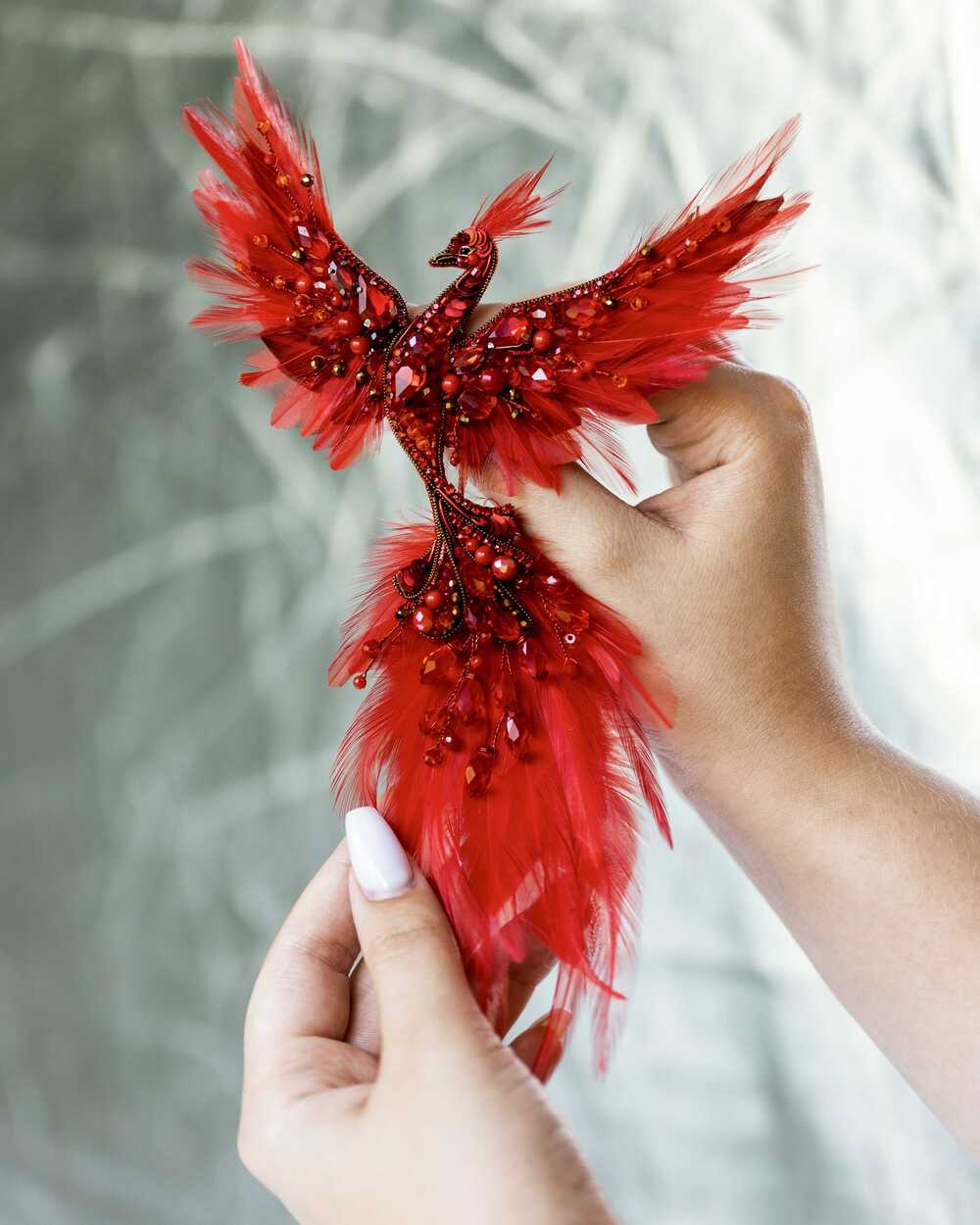 Уникальная брошь «Жар-птица», выполненная в ярких красных оттенках, которые словно горят огнем. Эта брошь – воплощение мифического существа, символа красоты, удачи и исполнения желаний.