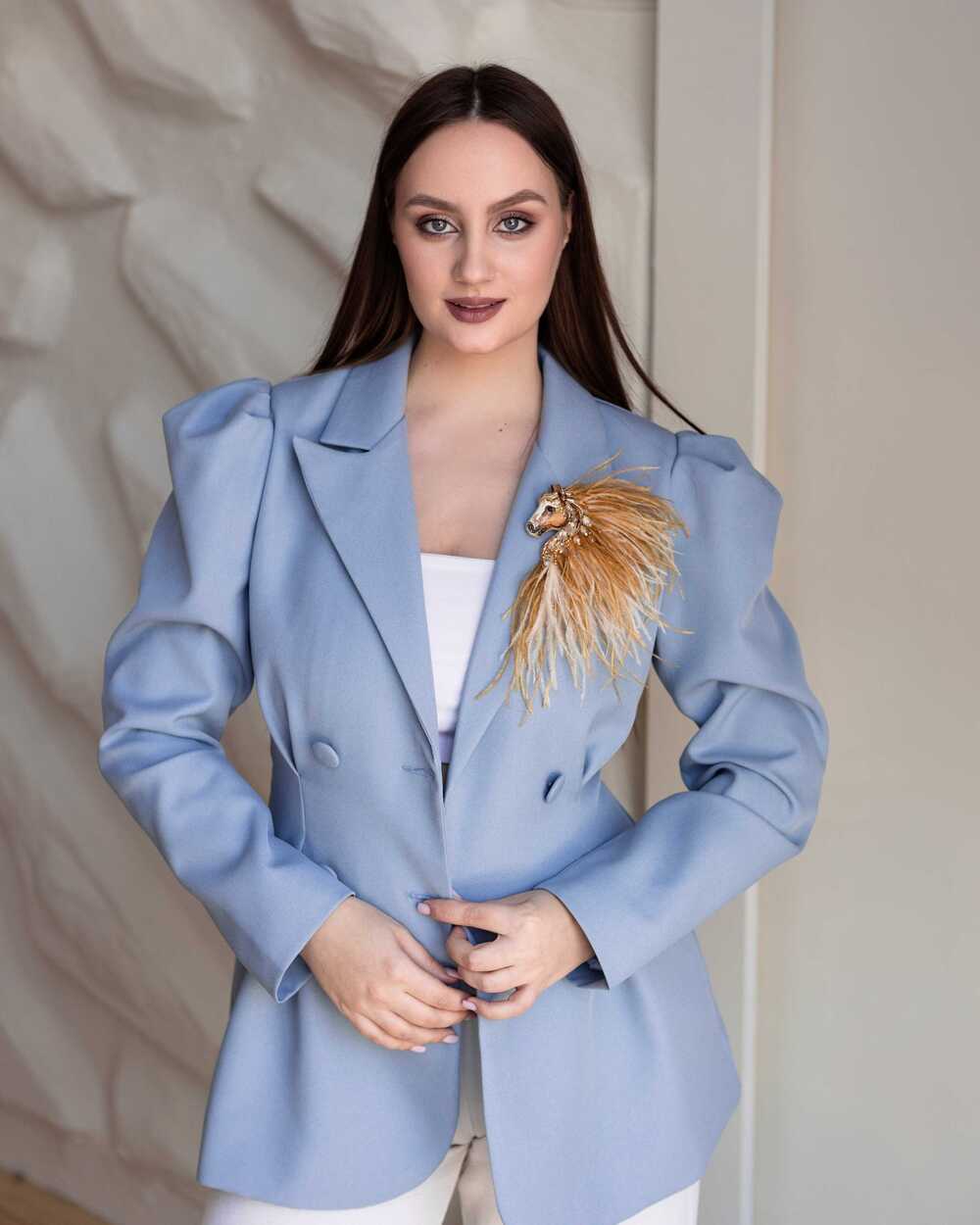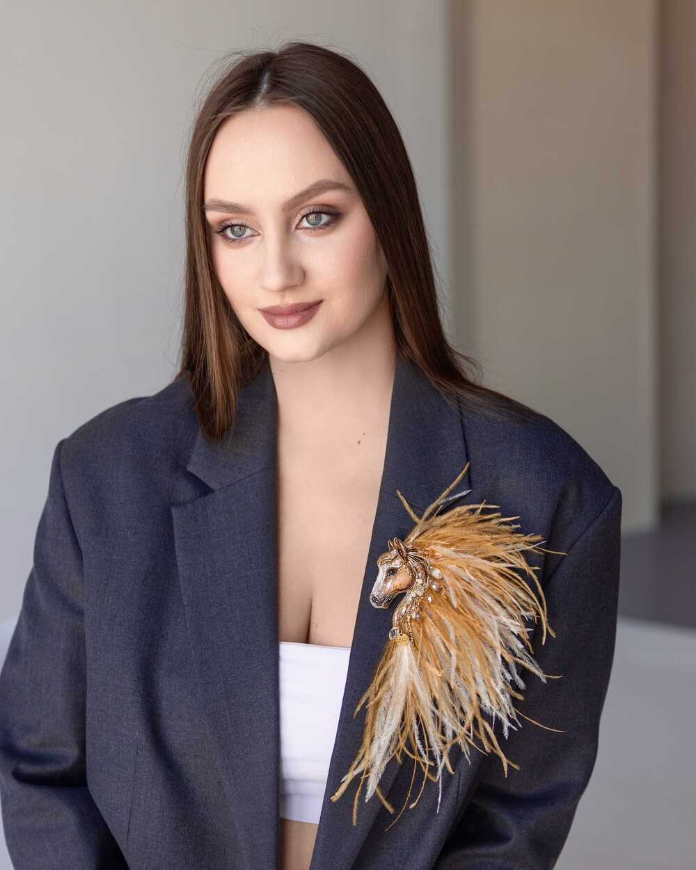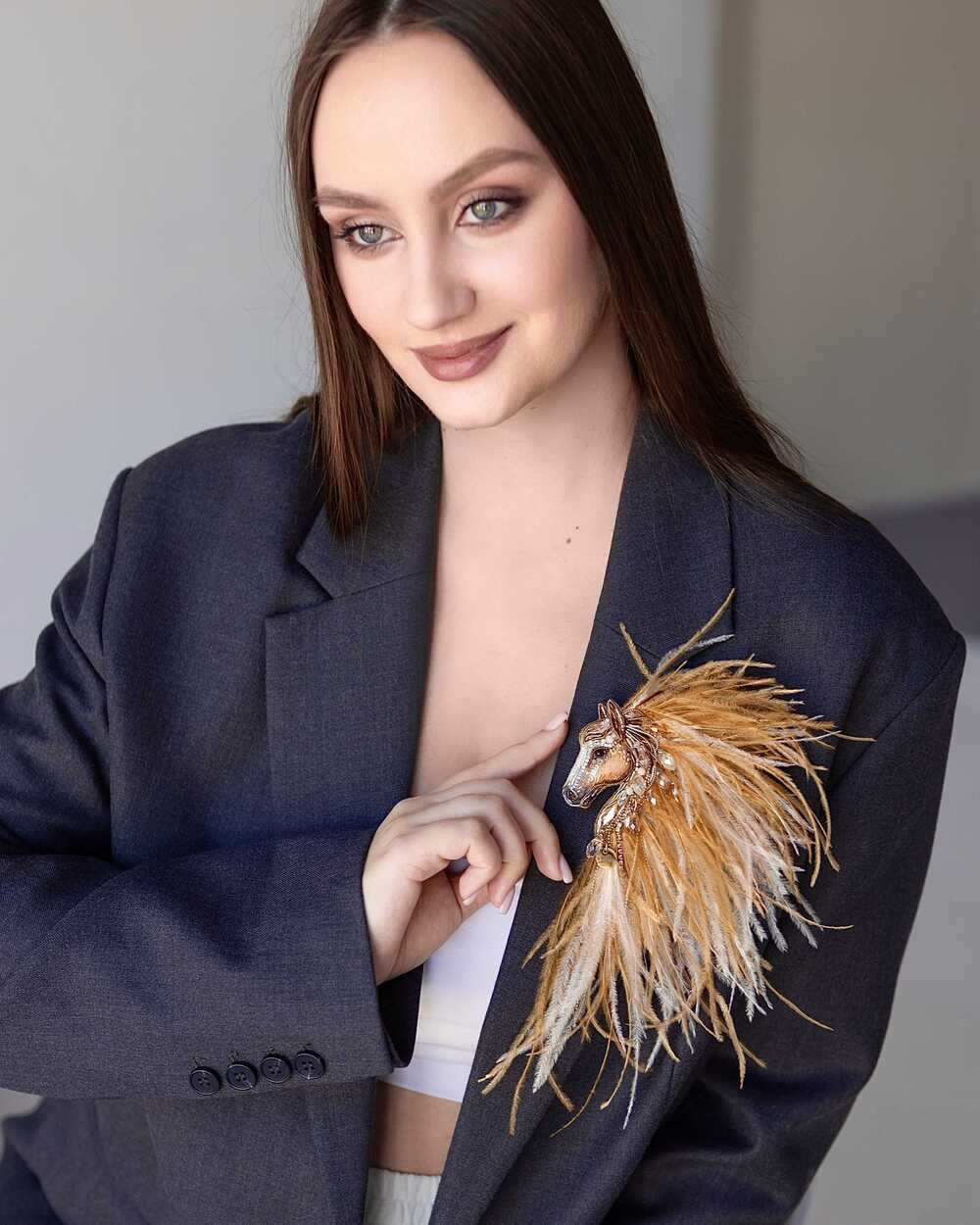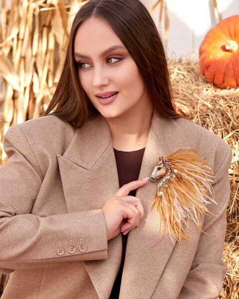 Истинная магия броши «Лошадки Искры» раскрывается в ее роскошной гриве, которую мы создали из карамельных и золотых перьев. Они добавляют броши глубину цвета и легкую динамику, создавая ощущение движения, словно сам ветер зарылся в ее гриве и вместе с ней спешит навстречу свободе.