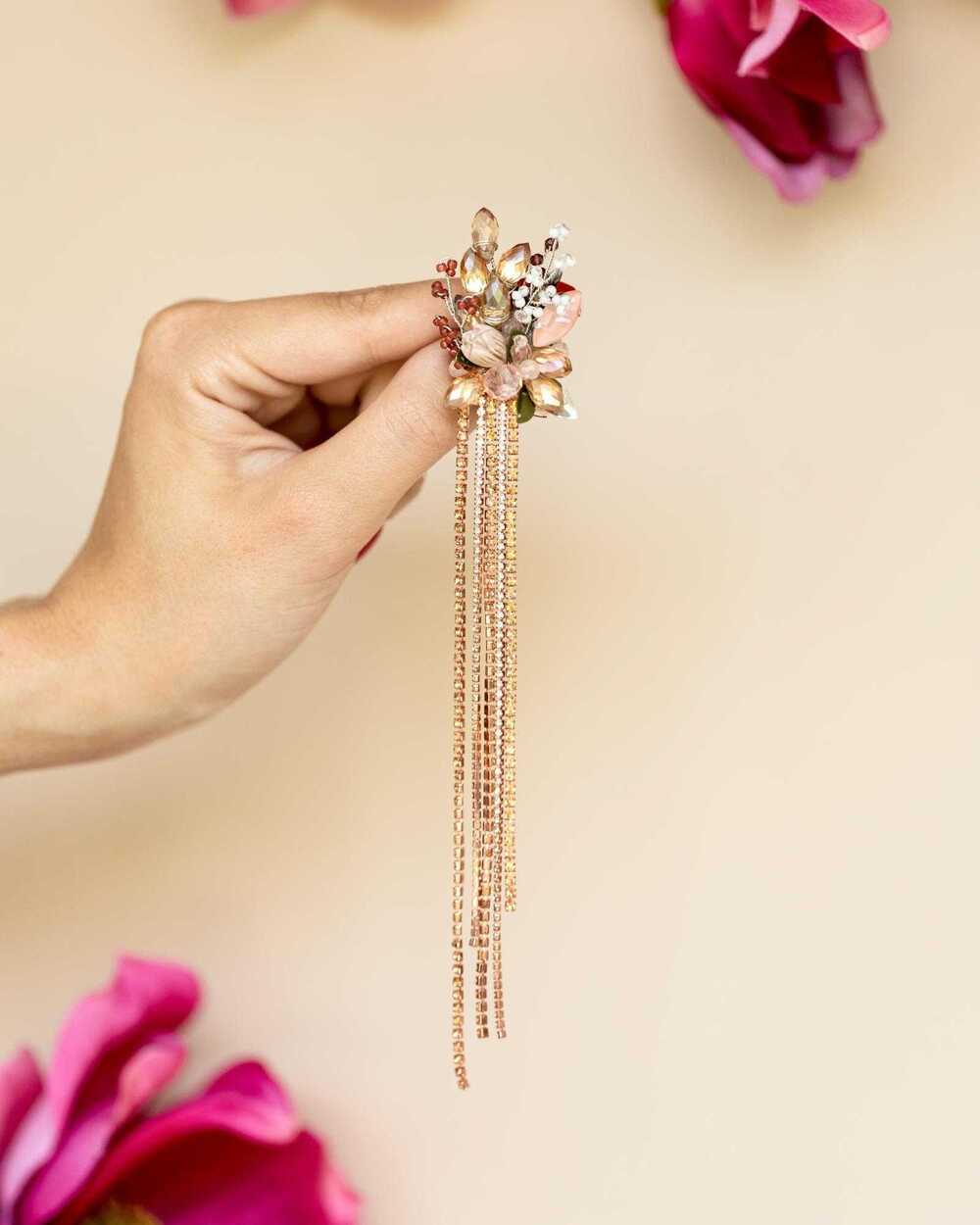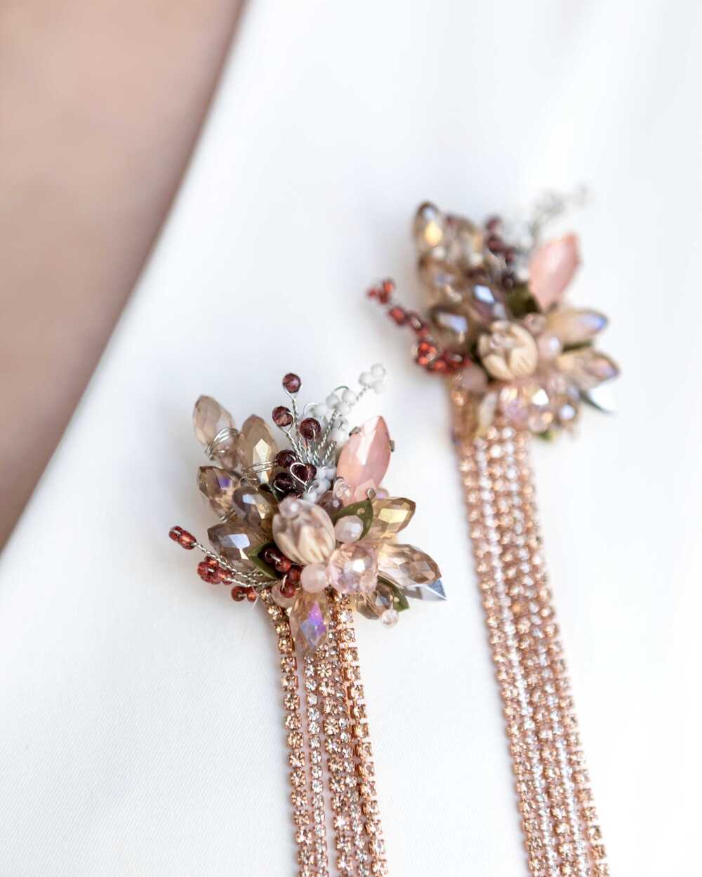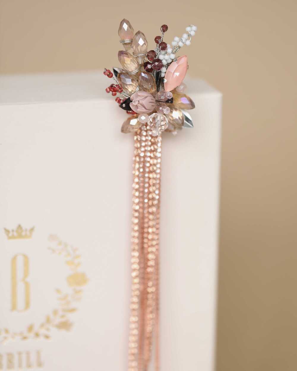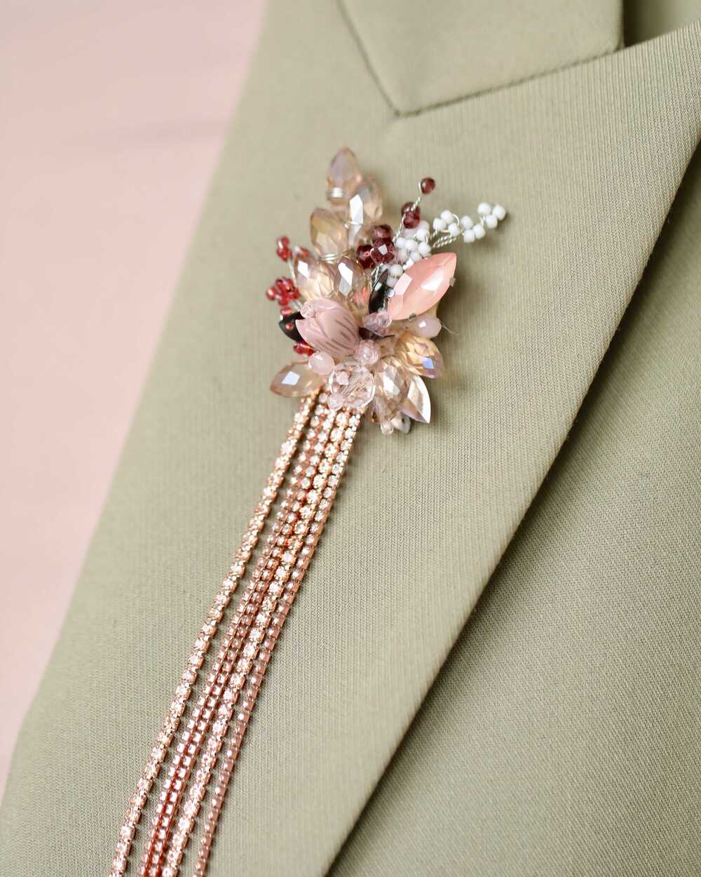 Дизайн броши вдохновлен нежными изгибами цветочных лепестков и мягкими линиями природы. Центральный элемент украшения – сияющий кристалл, который переливается при каждом движении, словно капля росы на лепестке.
