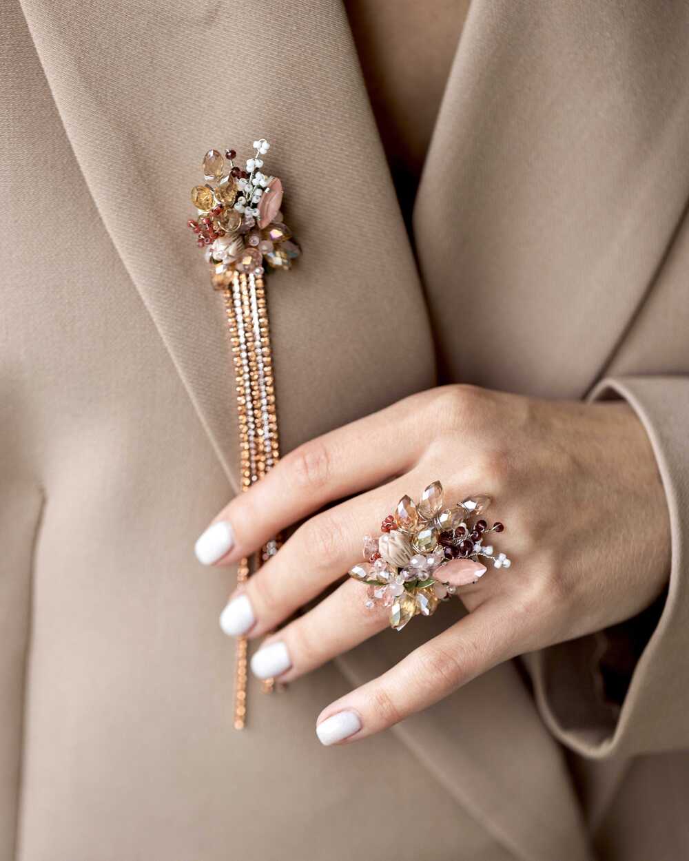 Брошь "Лавелия" – это утонченное украшение, которое словно переносит вас в мир цветущих садов и легкого утреннего бриза.