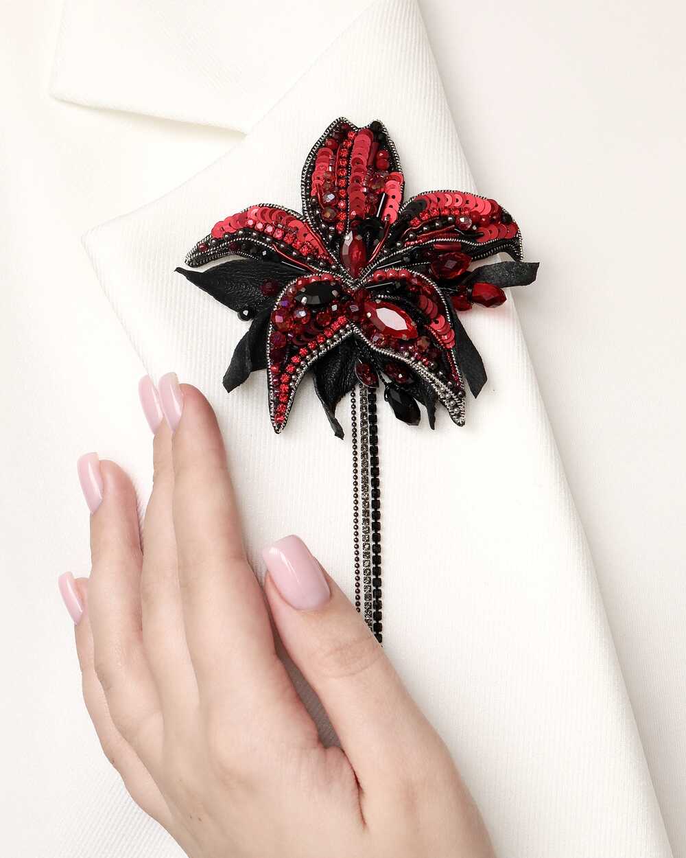 Брошь универсальна, она может украсить как повседневный образ, так и стать завершающей деталью к вечернему наряду. Носите «Лилию» с удовольствием!