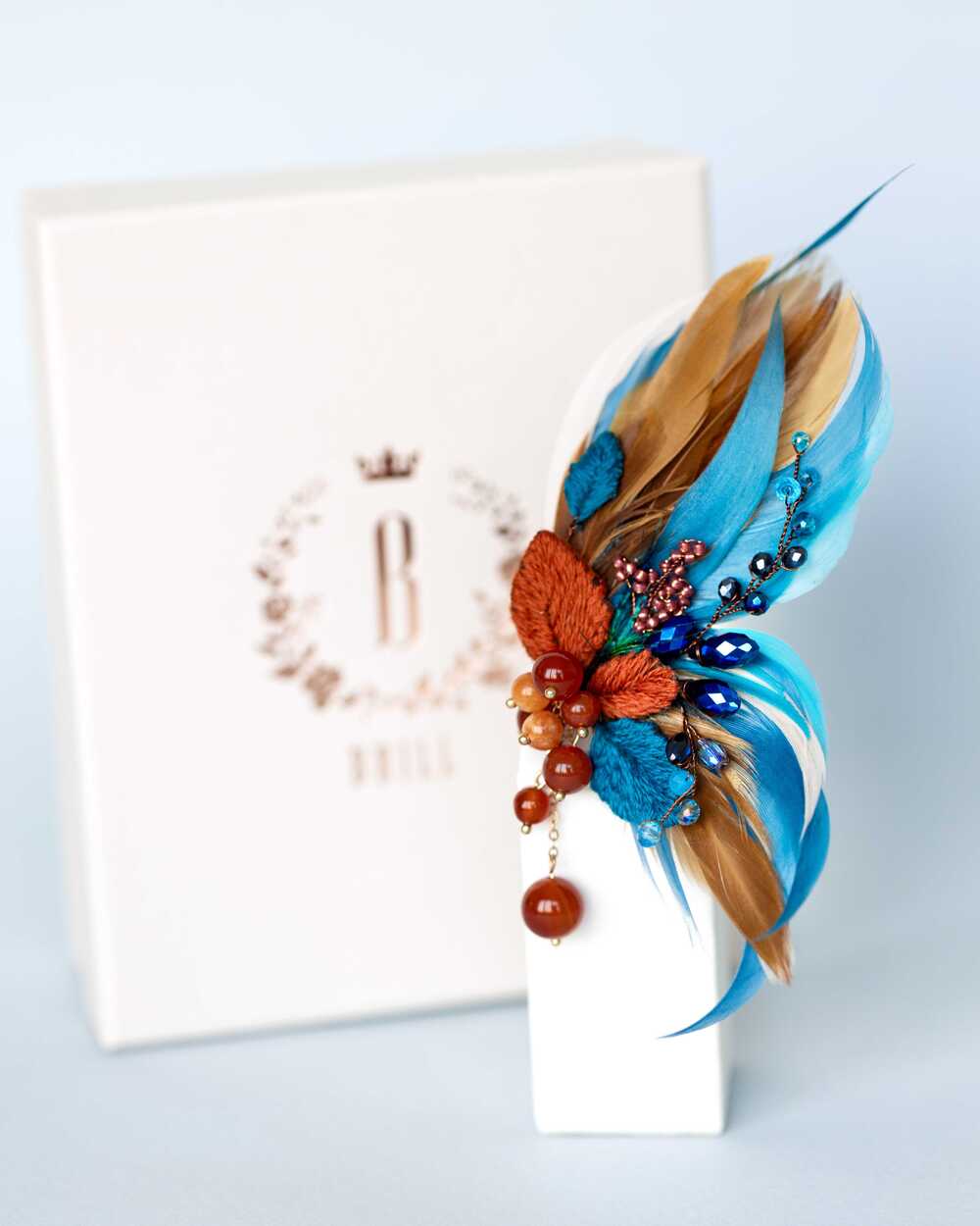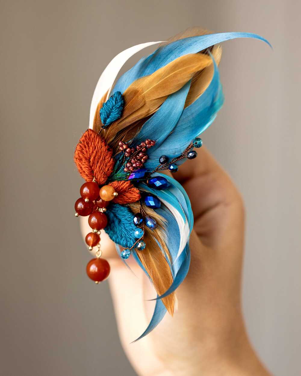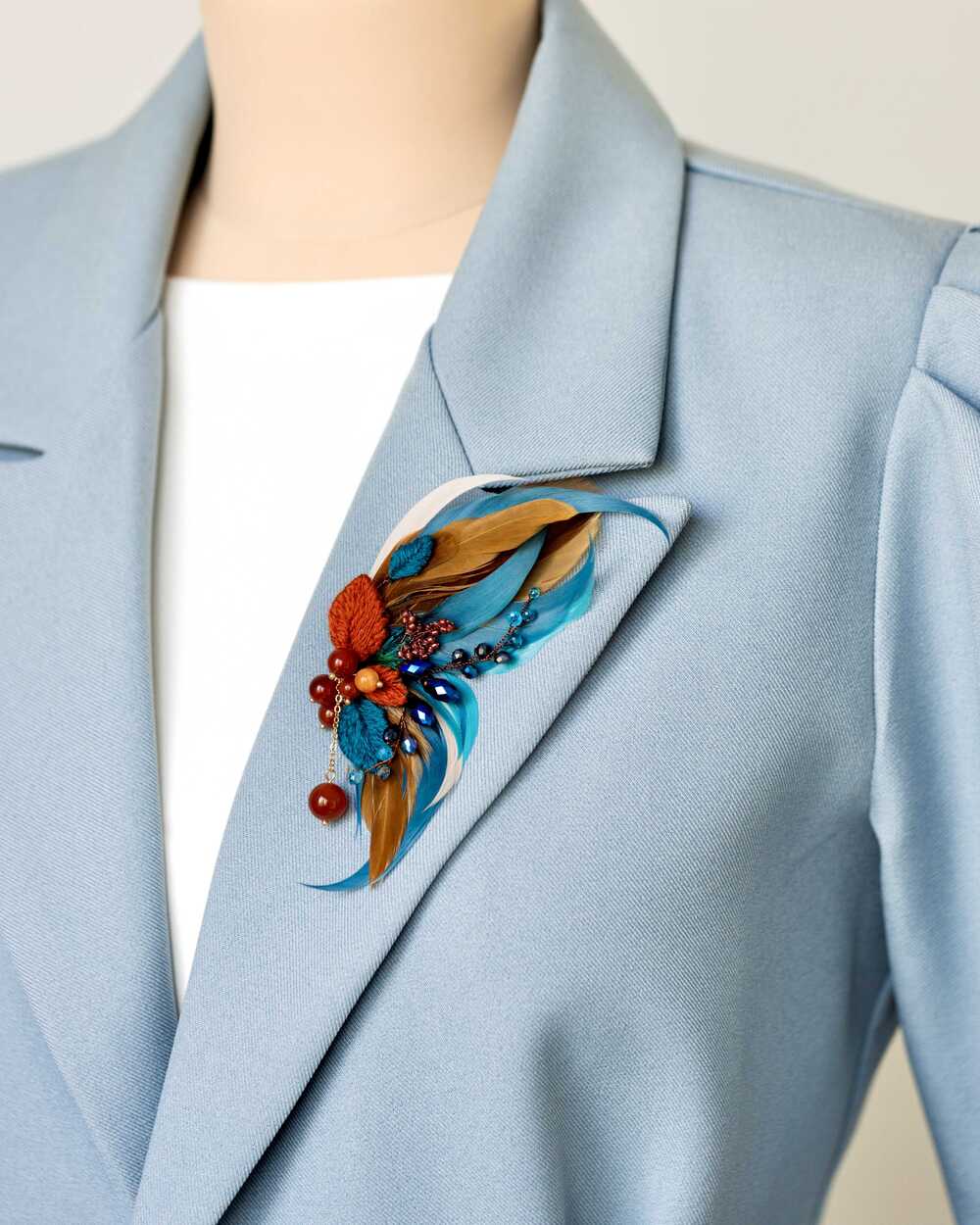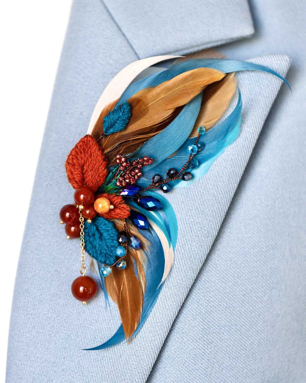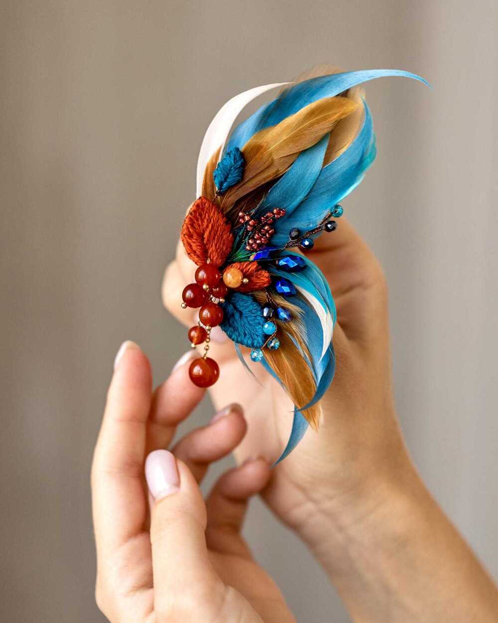Гипоаллергенные перья, словно легкий ветерок, касаются кожи, создавая ощущение невесомости и свободы. Они добавляют броши изысканную воздушность, делая её не только украшением, но и символом легкости бытия.