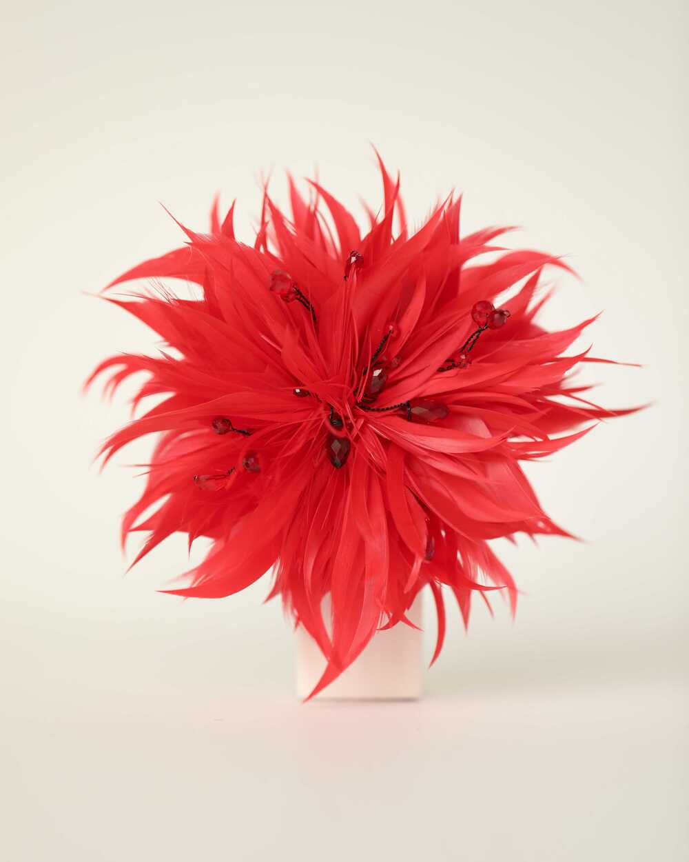 граненые хрустальные бусины, японский бисер, гусиные перья, итальянский фетр, брендовая бирка