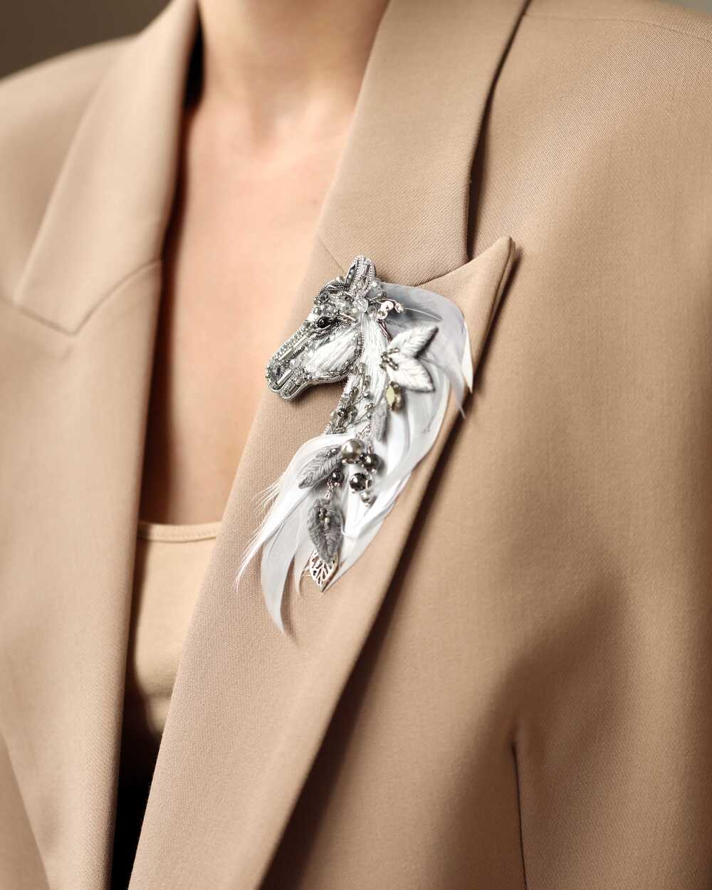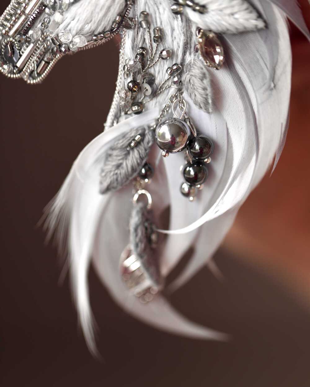 Изящные перья и подвески добавляют динамику и легкость, создавая ощущение движения и ветра в гриве.
