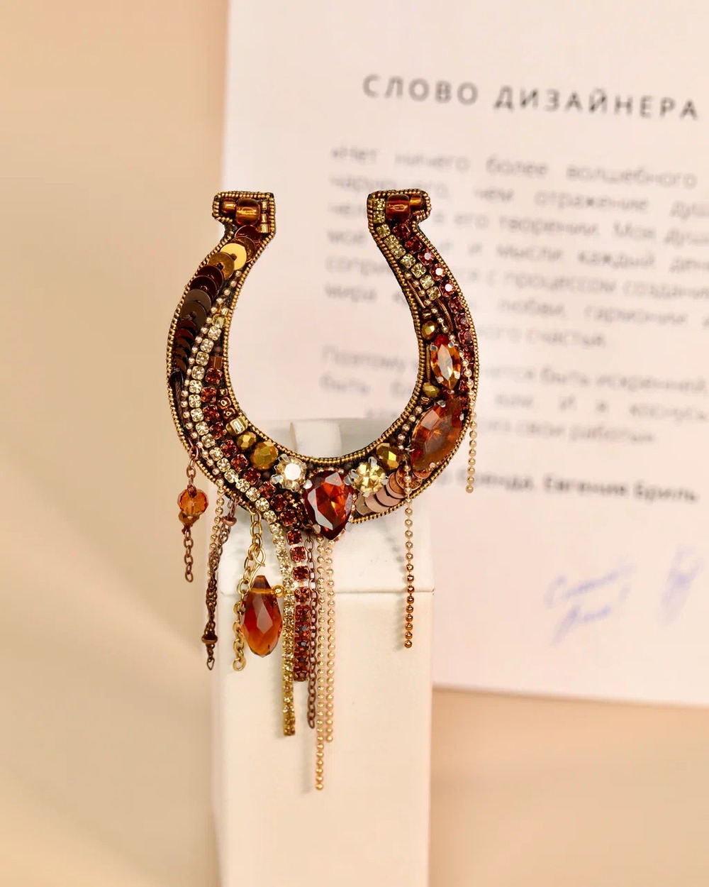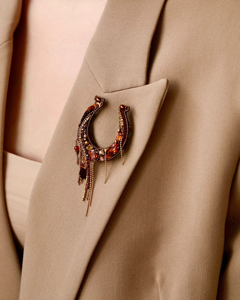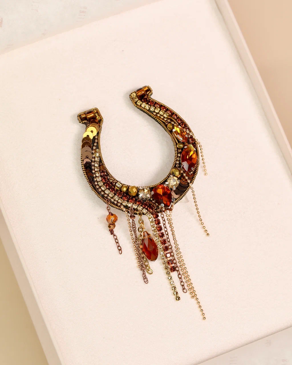 Знаете, почему подкову вешают рожками вверх? Чтобы счастье, которое она поймала, не выливалось, а копилось внутри. Именно такую «полную до краёв» удачу мы и создали в нашей новой броши ручной работы — «Подкова».