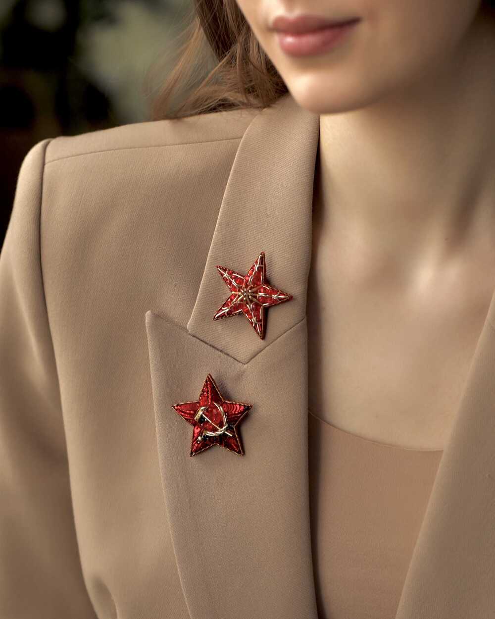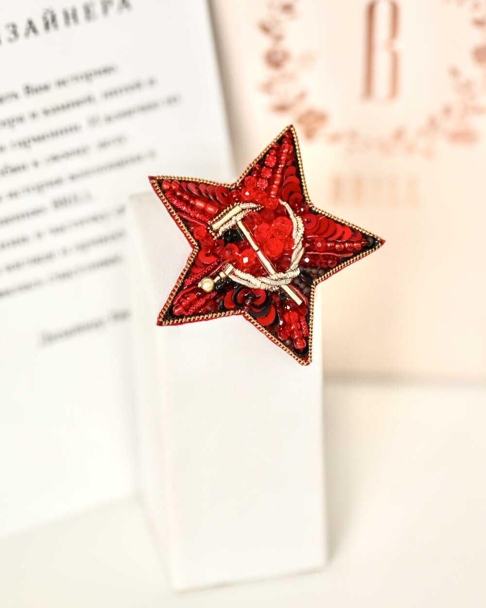 Мы применили премиальные материалы для создания атрибутики на День Победы. Брошь выполнена в самых сочных оттенках красного, который будет визуально "согревать" своим теплом.