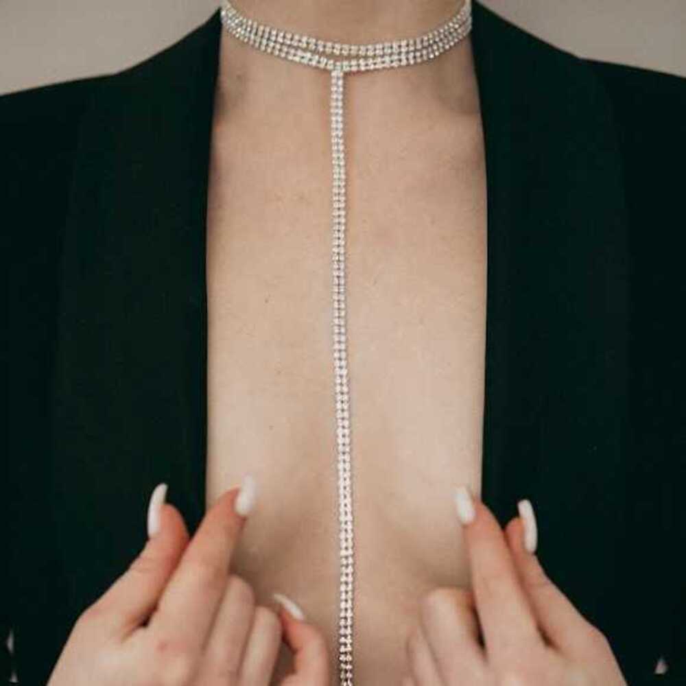 А самые смелые могут подчеркнуть красивую зону декольте в вырезе строгого жакета оверсайз.