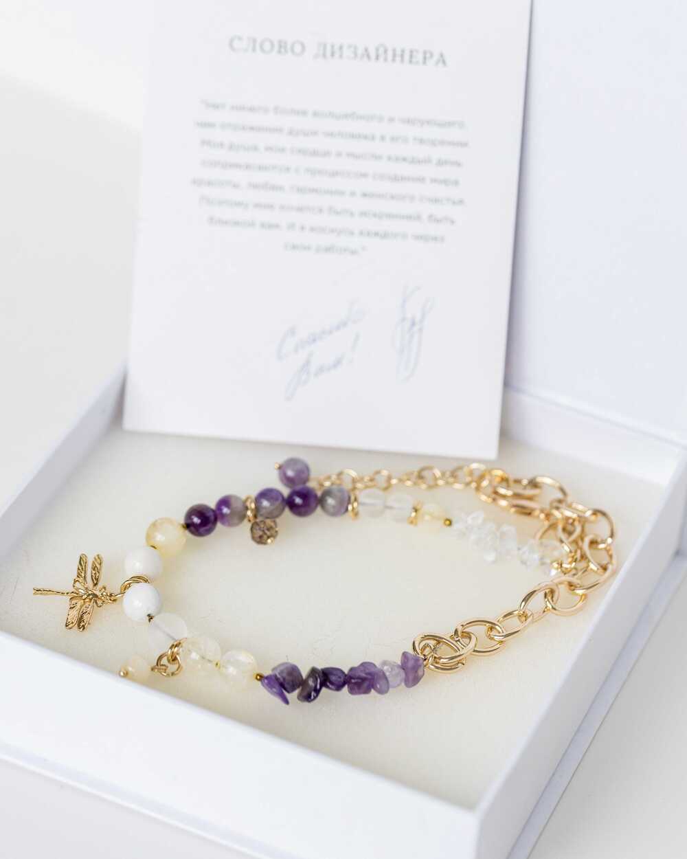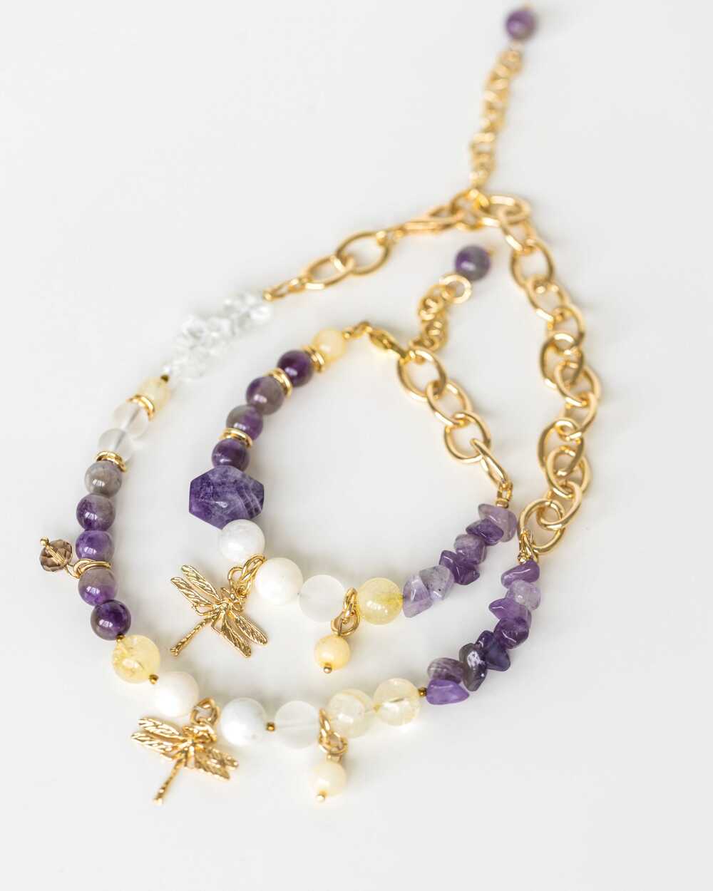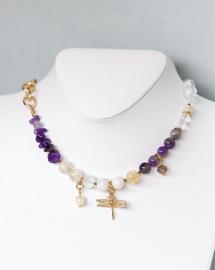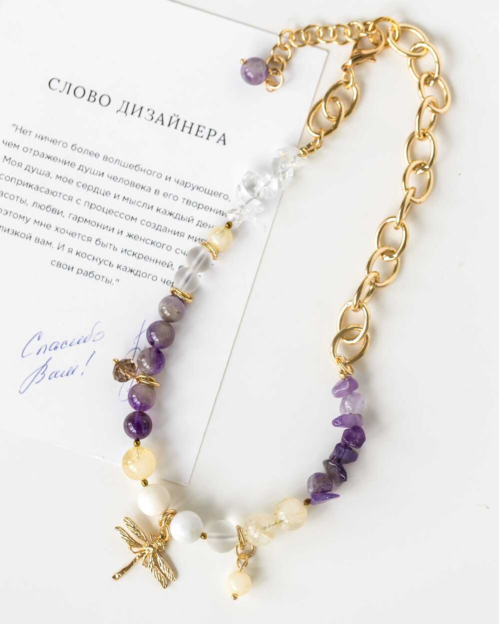 Колье выполнено вручную из натуральных природных минералов- Лунного камня, Аметиста, Цитрина, Кварца