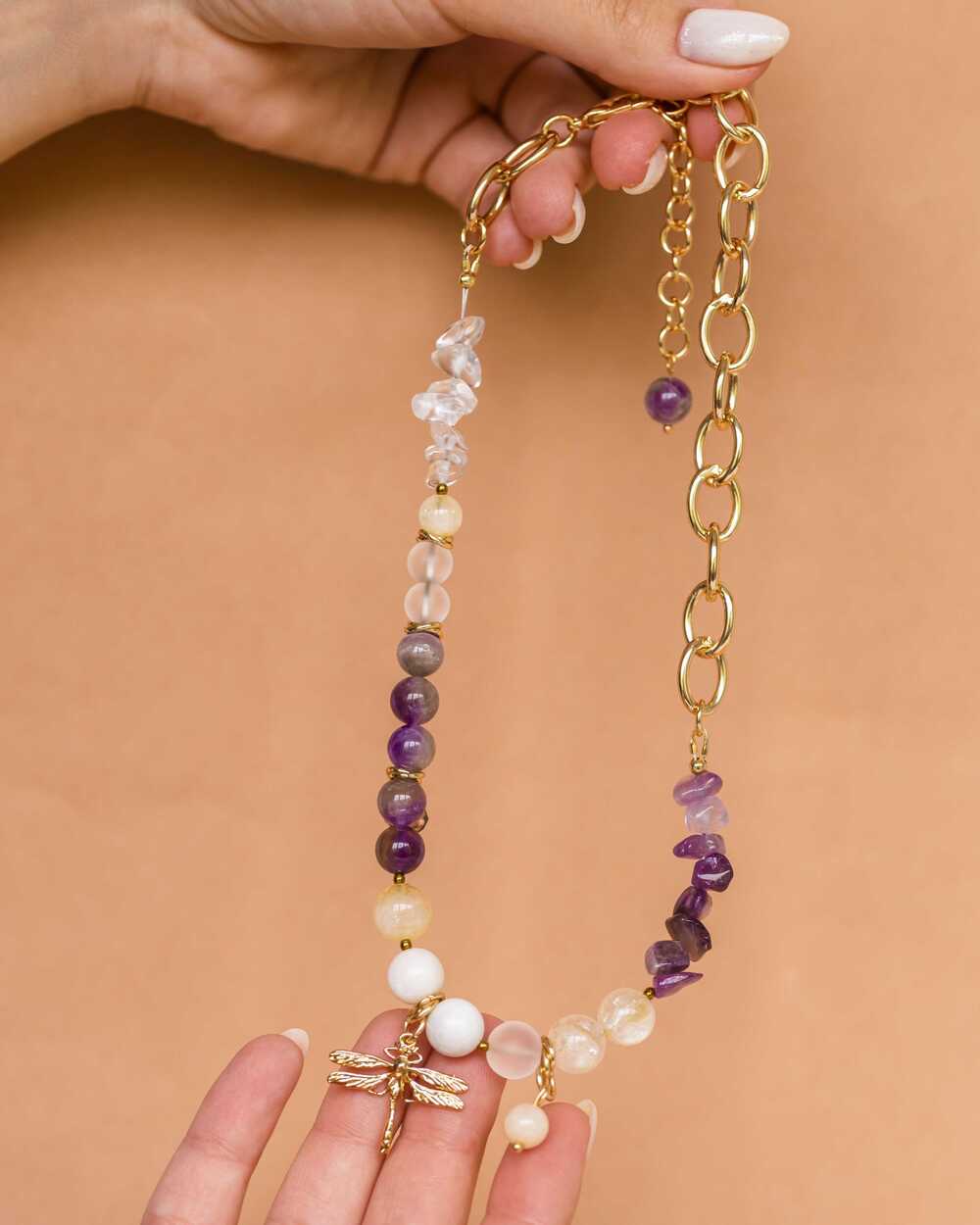 Волшебный тандем природных минералов в этом колье обрамлено стильным дизайном.