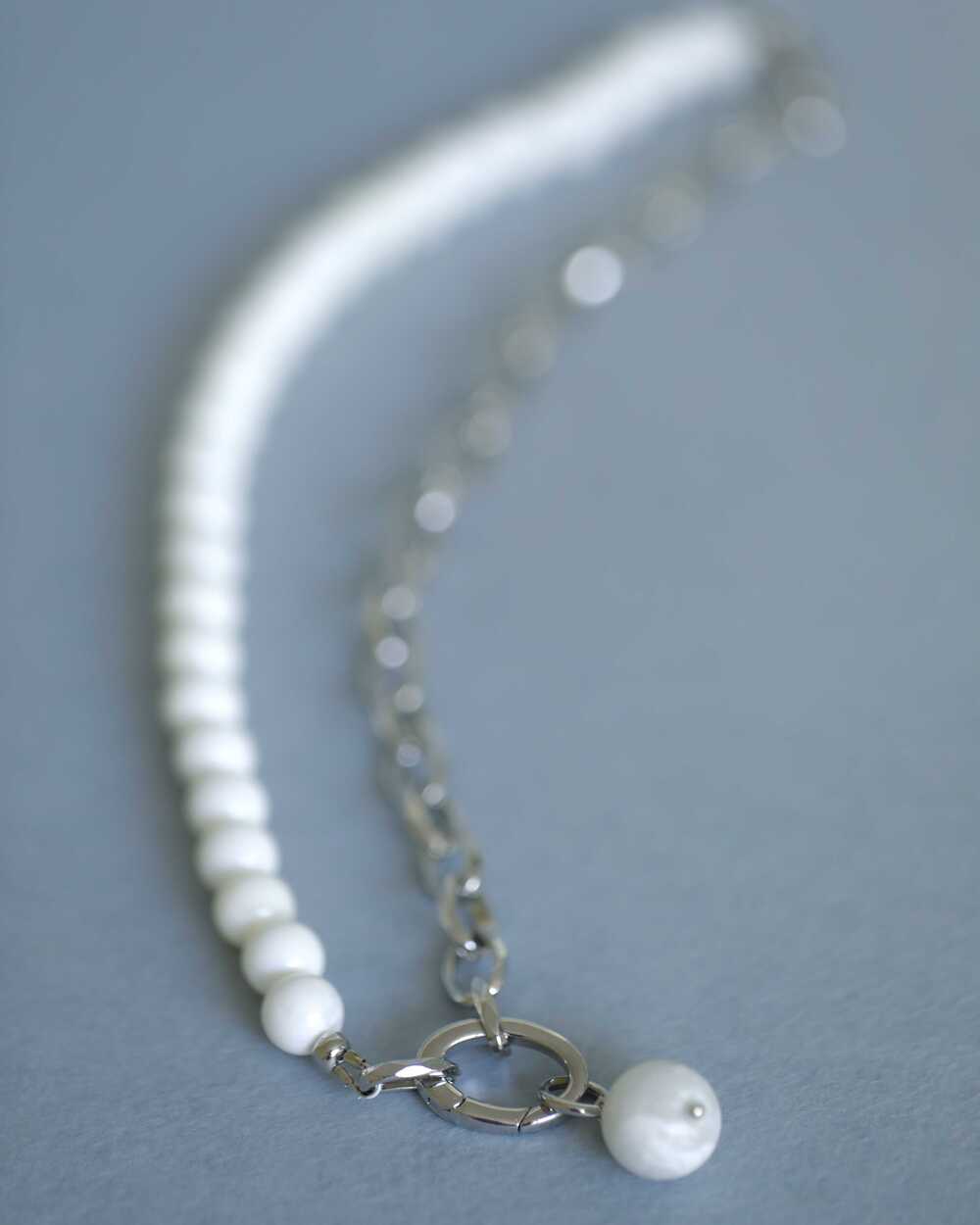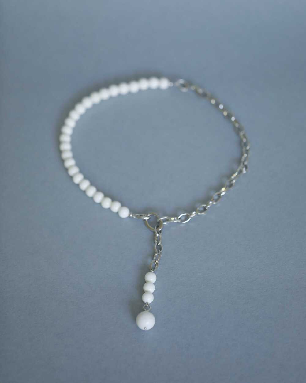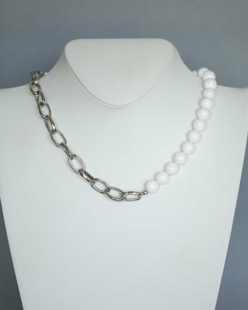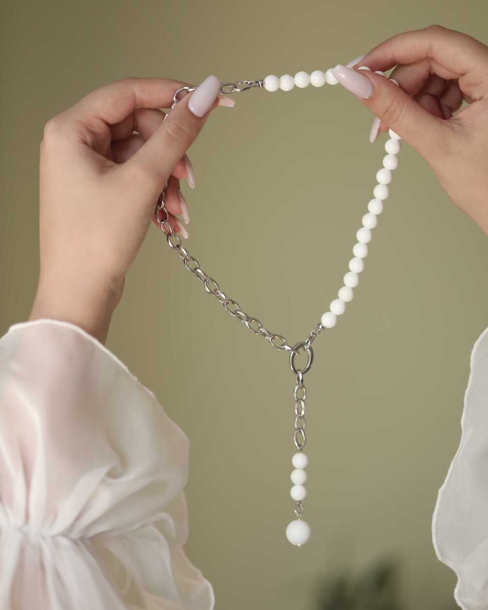 Колье-трансформер "Сан-Ремо" из белого агата. Колье можно носить в трех вариантах: без шарма, с коротким шармом и с длинным шармом. Кулоны крепятся на удобный карабин.