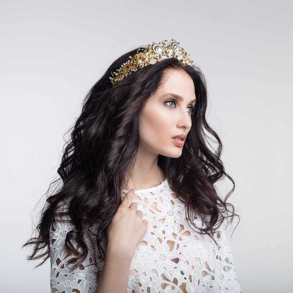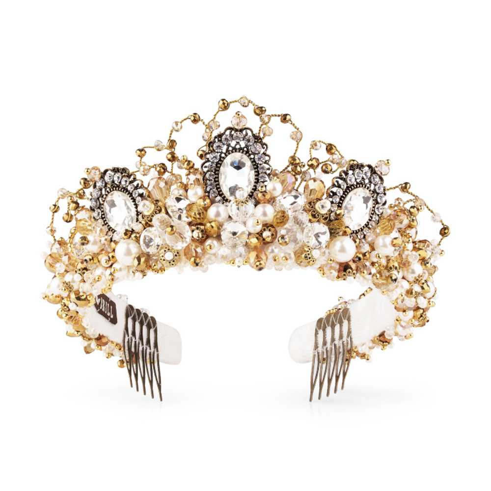 Короны BRILL фиксируются в прическе при помощи мини-гребней. Это обеспечивает прочную посадку без сдавливания. При индивидуальном создании вес и размеры могут незначительно изменяться.