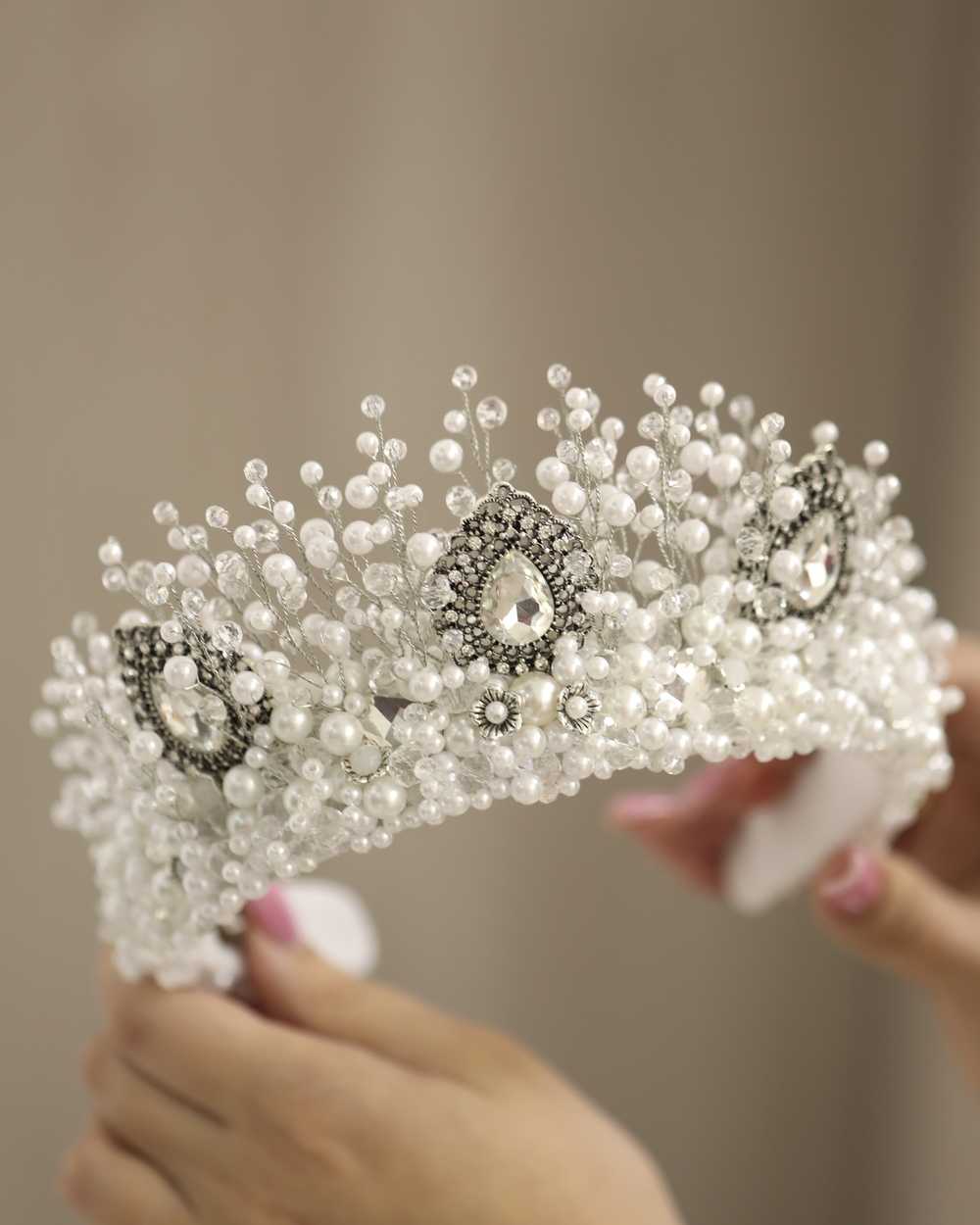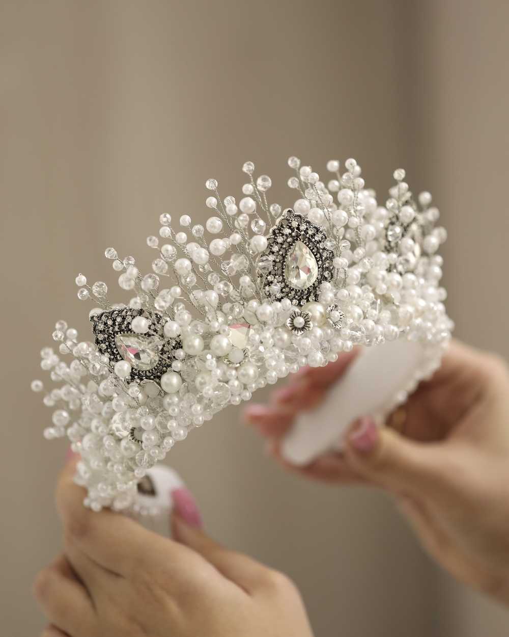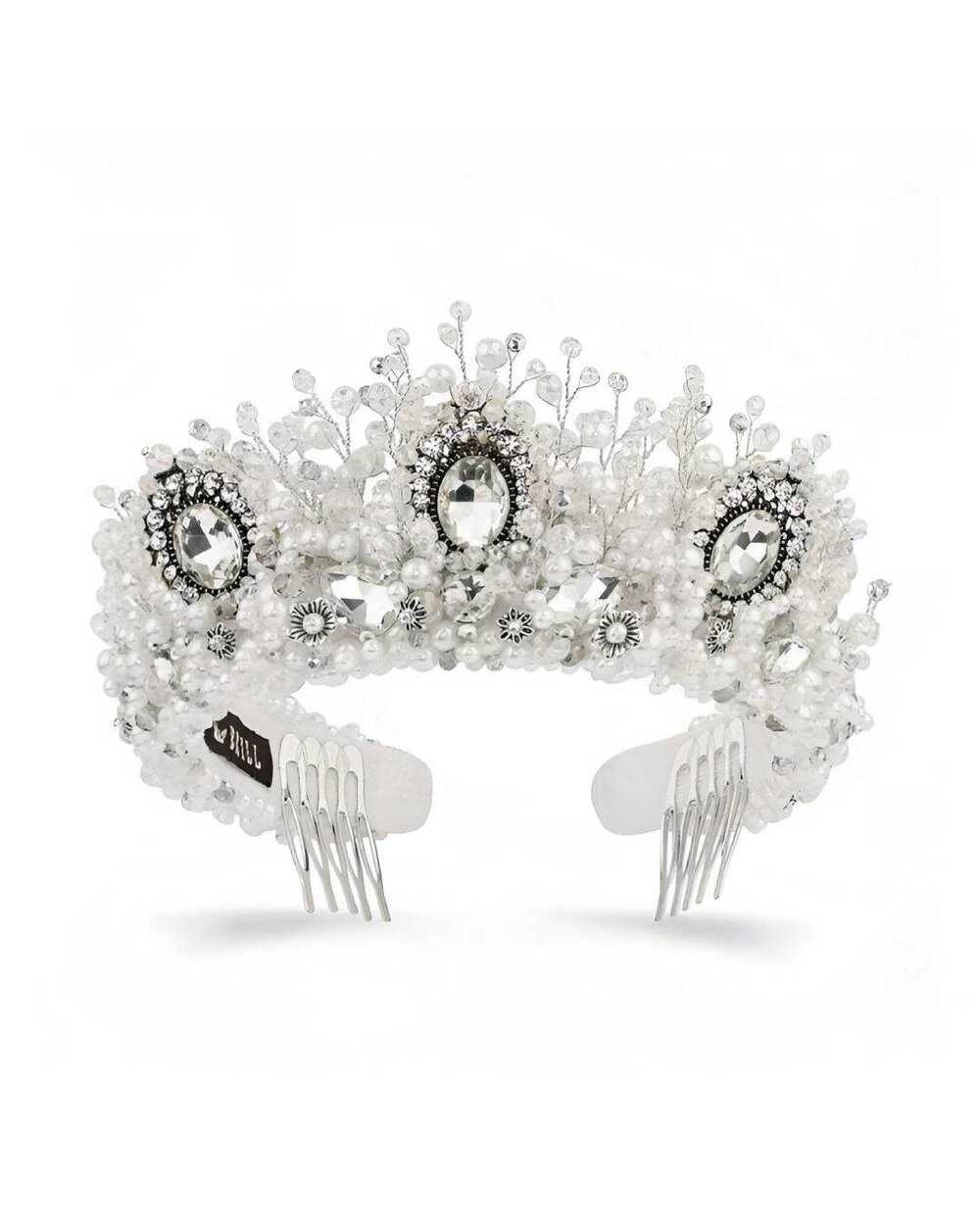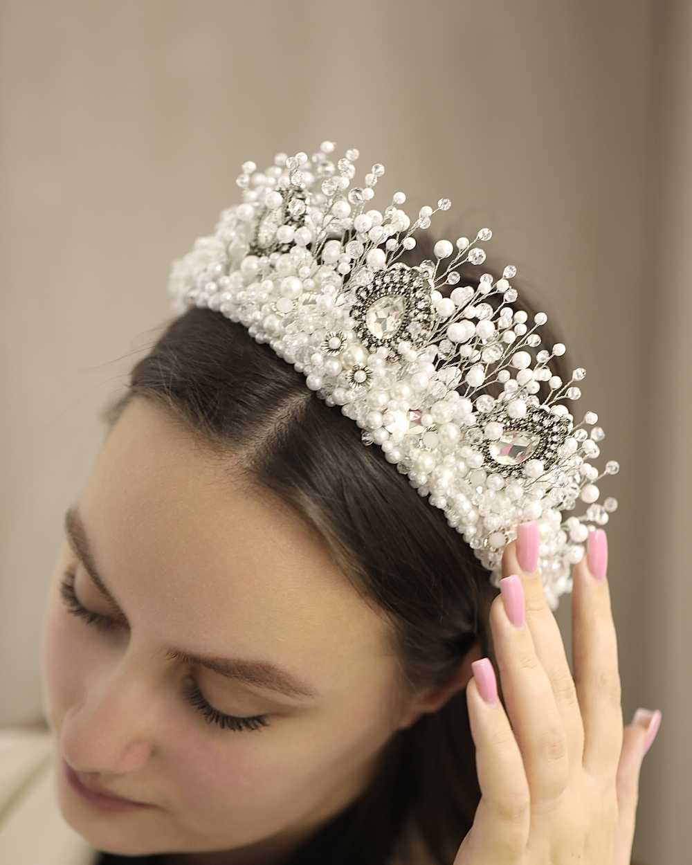 В нежных жемчужно-молочных тонах корона «ПИКОВАЯ ДАМА» смотрится так же величественно, а нежная расцветка смягчает образ.