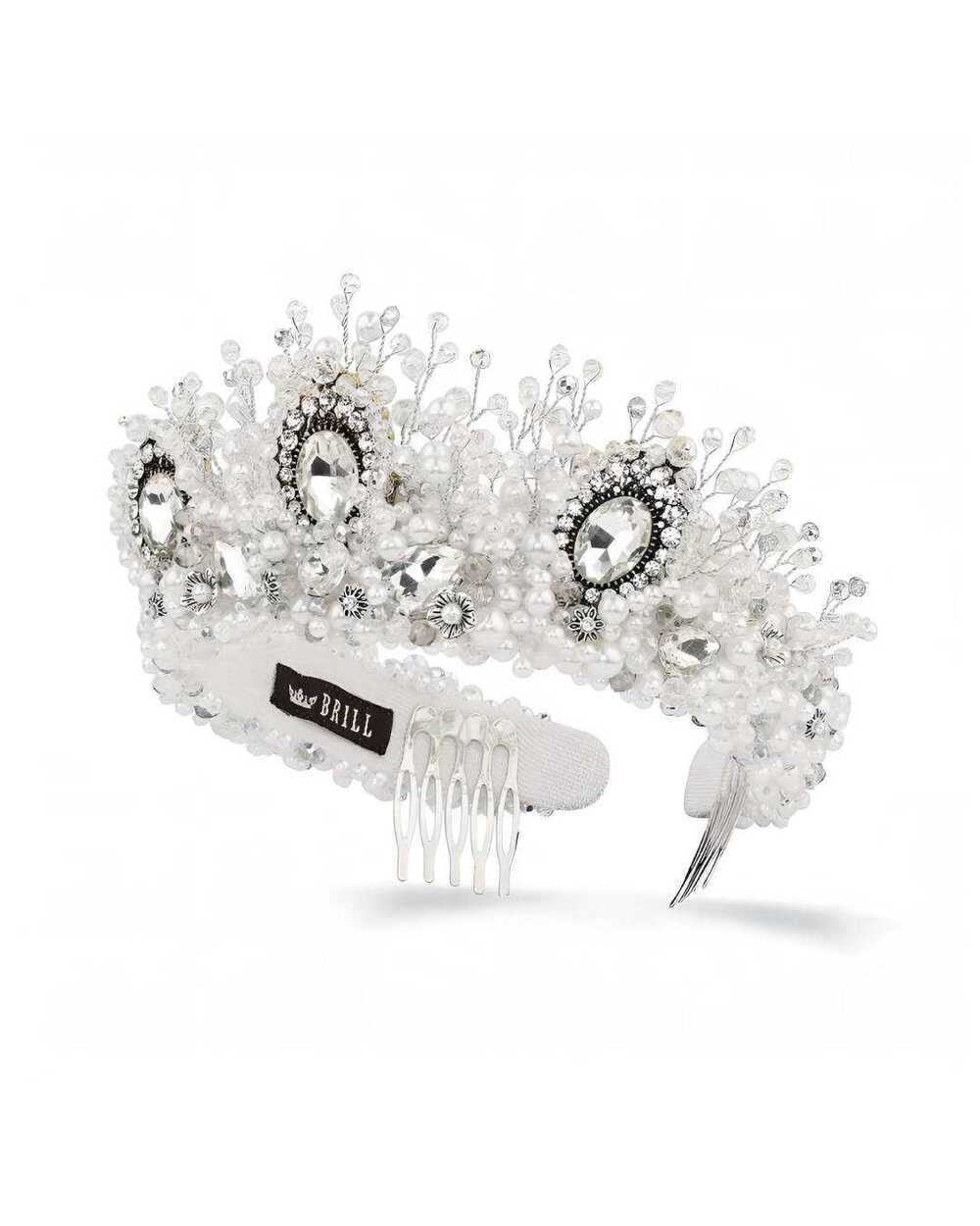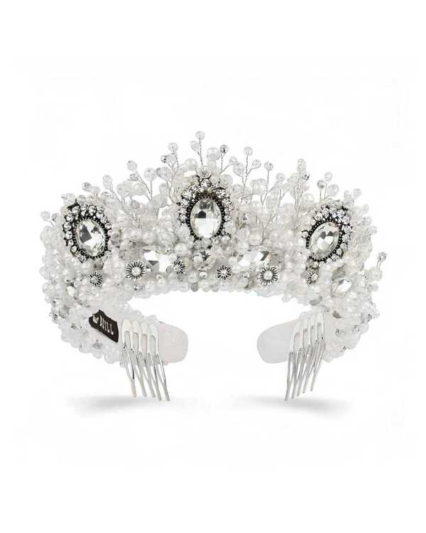 Короны BRILL фиксируются в прическе при помощи мини-гребней. Это обеспечивает прочную посадку без сдавливания. При индивидуальном создании вес и размеры могут незначительно изменяться.