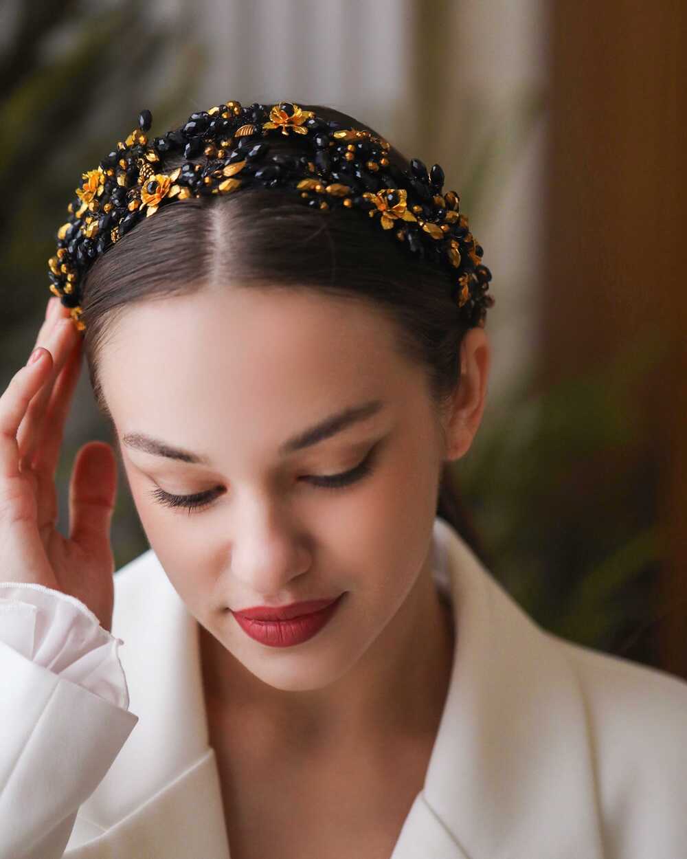Ободки BRILL изготавливаются на прочной металлической основе. Ее можно сгибать и разгибать, чтобы ободок сидел максимально комфортно как на взрослой, так и на детской головке. При индивидуальном создании вес и размеры могут незначительно изменяться.